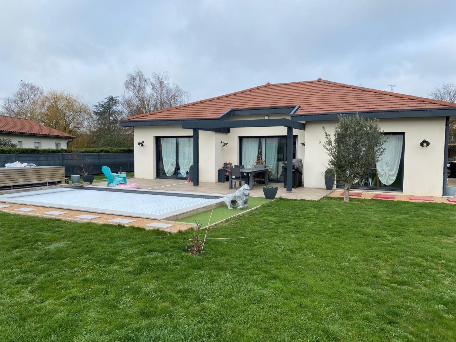 Située à quelques minutes à pied du centre du village de Cras sur Reyssouze, cette villa de plain pied est idéale ! Elle se compose d'une belle pièce de vie avec une cuisine équipée centrale ouverte sur d'un côté le salon et de l'autre le séjour. Cette pièce de vie est lumineuse grâce aux baies vitrées et cocooning avec le sol en parquet sur l'ensemble. Un premier dégagement dessert la partie nuit avec deux chambres dont une équipé d'un placard, une salle d'eau avec double vasque et un toilette indépendant. Le deuxième dégagement dessert une buanderie avec chauffe eau thermodynamique et un garage. A l'extérieur, vous profiterez des beaux jours sur la jolie terrasse qui donne sur la piscine au sel chauffée. L'ensemble édifié sur un terrain de 937 m² clos par un portail automatique. Tout à l'égout, double vitrage aluminium, chauffage au gaz de ville. Les +++ : porte de garage automatique, situation idéale, plain pied.