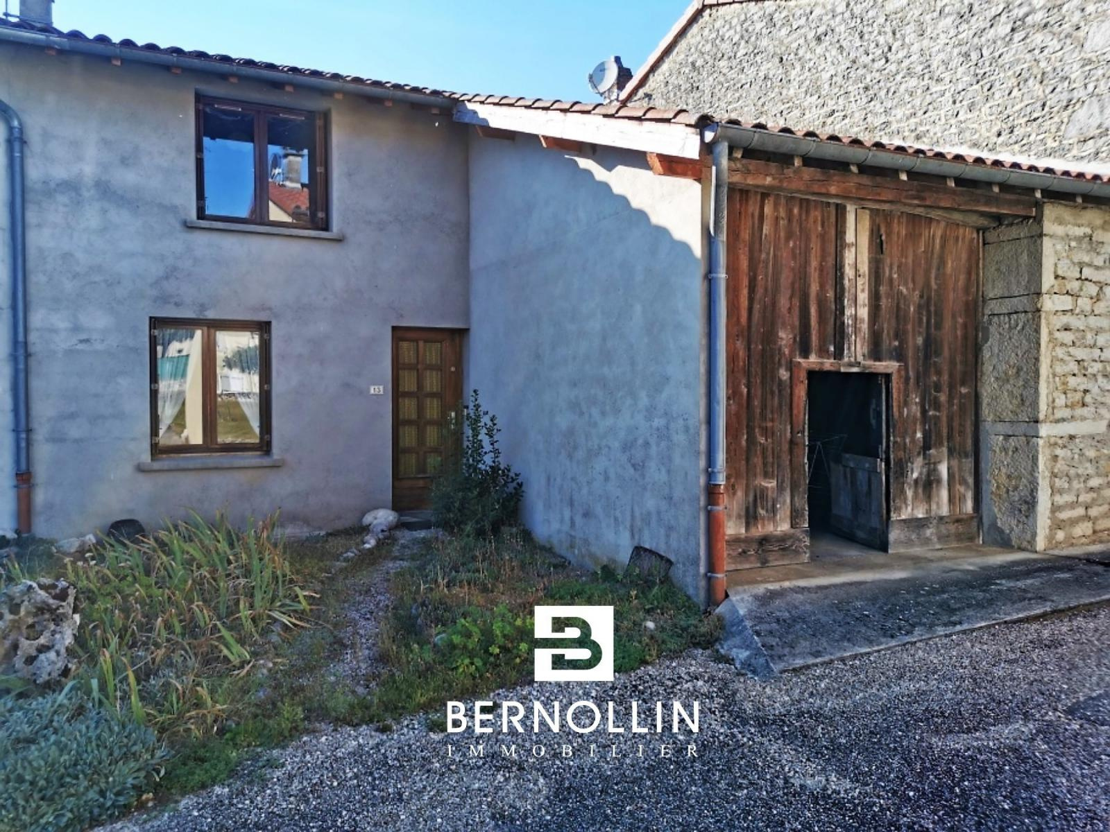A NIVIGNE ET SURAN 01250, dans le hameau de Dhuys, maison de village en pierre, comprenant au rez de chaussée une cuisine équipée, une salle d'eau, un salon. A l'étage, trois chambres, une pièce d'eau. Grand garage, un petit terrain attenant à la maison et un terrain de 330 m² non attenant. Double vitrage bois, chauffage électrique.