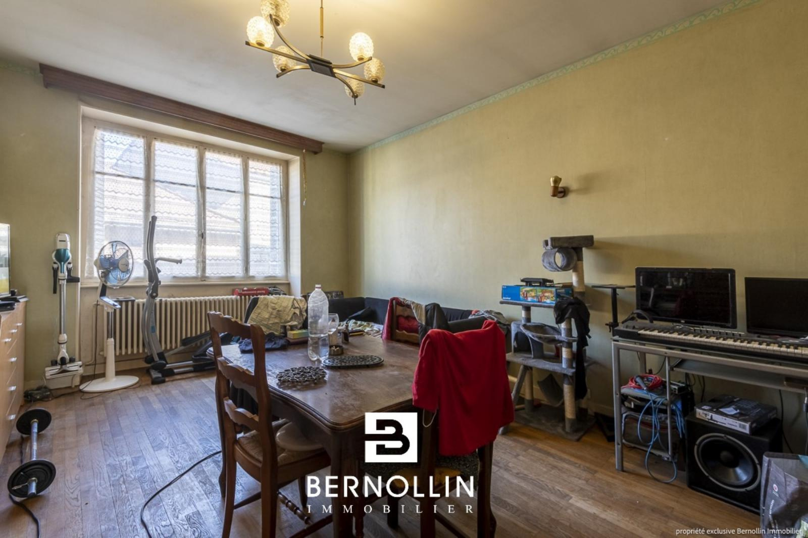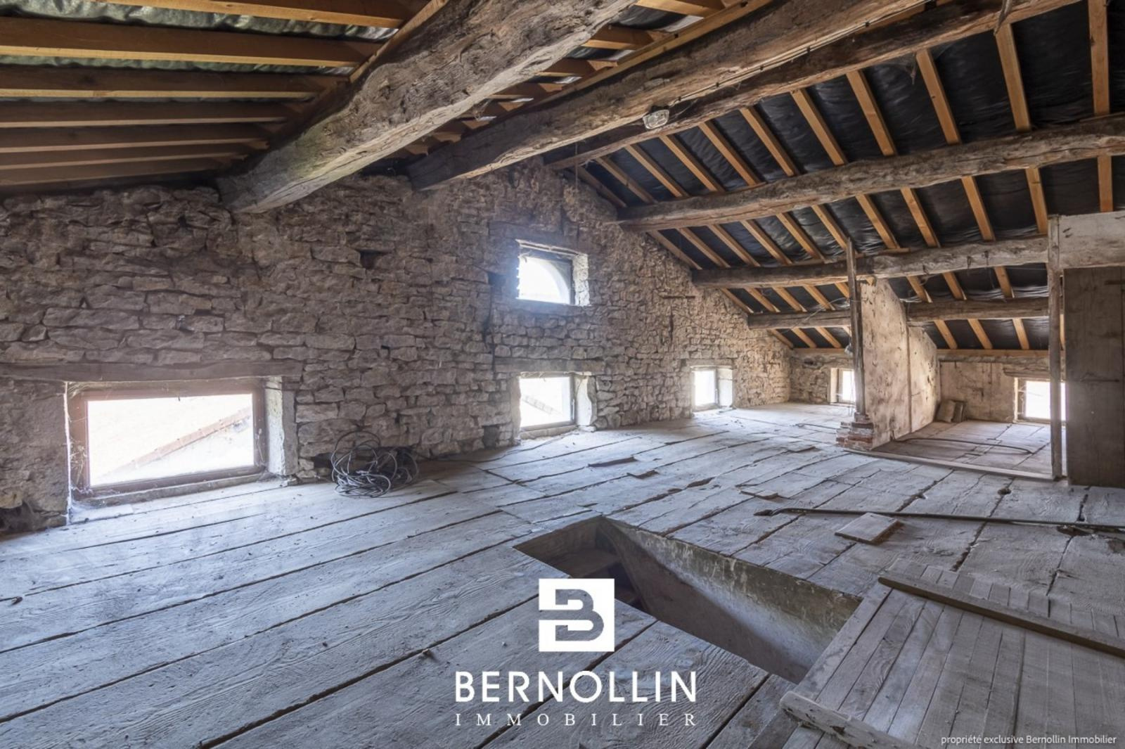 Au centre de ST JULIEN SUR SURAN (39320) VAL SURAN - Une maison d'habitation en pierre comprenant un jardinet avec une petite dépendance et un joli terrain. - Au rez de chaussée de cette maison, un garage, un séjour, une pièce avec cuisine, un toilette, une salle de bains et une chaufferie. - Au premier niveau, un appartement type T3, actuellement loué 400?/mois, comprenant une cuisine équipée, une salle à manger, 3 chambres, salle d'eau, toilette, une terrasse côté EST donnant sur un joli petit terrain de 280 m². - Les combles sont aménageables, la toiture est neuve. Tout à l'égout, chauffage électrique et bois. Les +++ : située en plein centre du village.