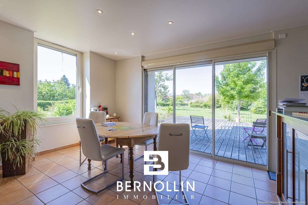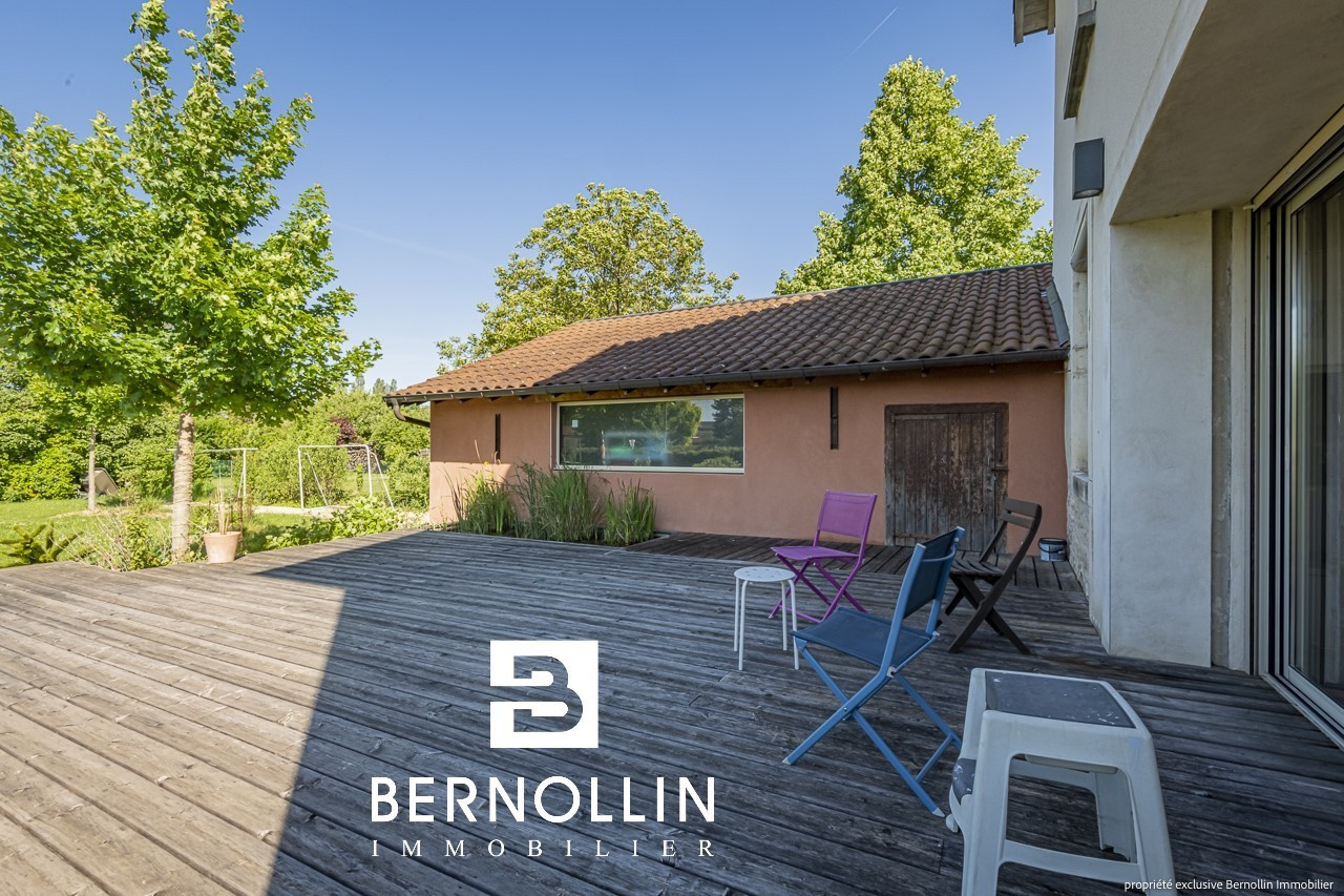 Que de charme et d'atouts pour cette belle maison bourgeoise à 2 étages, qui bénéficie d'une situation idéale au centre du sympathique village de BRESSE VALLONS (Cras), à 5 mn d'Attignat et Montrevel-en-Bresse et de leurs nombreuses commodités. Son rez-de-chaussée se compose d'une entrée desservant d'un côté la cuisine ouverte semi-équipée et son cellier-buanderie et de l'autre le salon-séjour de 31 m² et un toilette indépendant. Au 1er étage, un lumineux couloir avec lumière traversante donne accès à 3 chambres avec placards muraux et à une salle de bains avec baignoire d'angle, douche et toilette. Le dernier étage est mansardé avec velux, il présente un bel espace aménagé en salle de fitness, 2 chambres et une salle d'eau à finir d'équiper. A l'extérieur, une grande terrasse bois de 63 m² avec bassin intégré, orientée Sud et Ouest, idéale pour le farniente et les repas en plein air, est adjacente à une belle annexe de 34 m². Côté cour, un abri voitures pour 2 véhicules donne sur une 2ème porte d'entrée, et permet ainsi d'accéder à l'habitation tout en restant au sec. Le jardin (terrain constructible) a été paysagé par un professionnel, les massifs sont dotés d'un arrosage automatique par eau de puits et une boucle adaptée pour robot-tondeuse est en place. Chauffage gaz de ville ( au sol au rez-de-chaussée) et assainissement collectif. Les +++ : double-vitrage alu, volets roulants et moustiquaires, VMC, isolation acoustique des planchers des étages, toiture récente, luminosité et beaucoup de cachet.