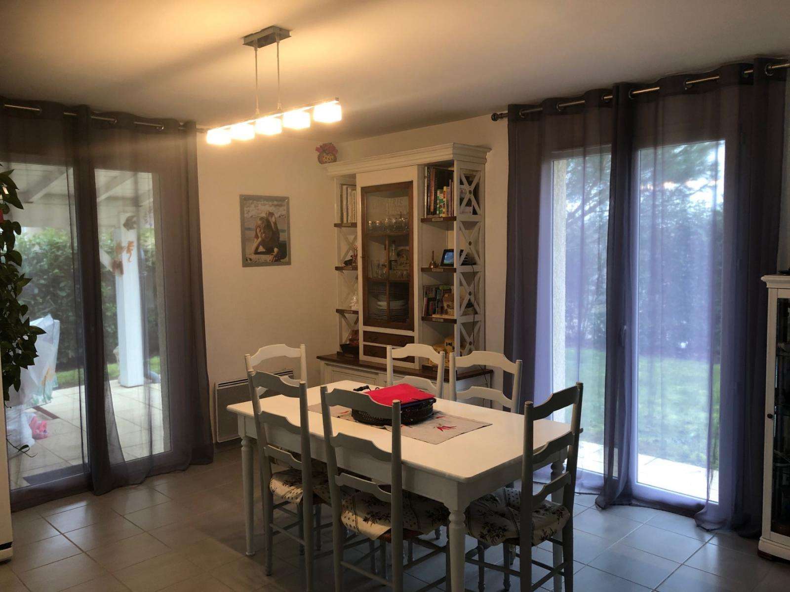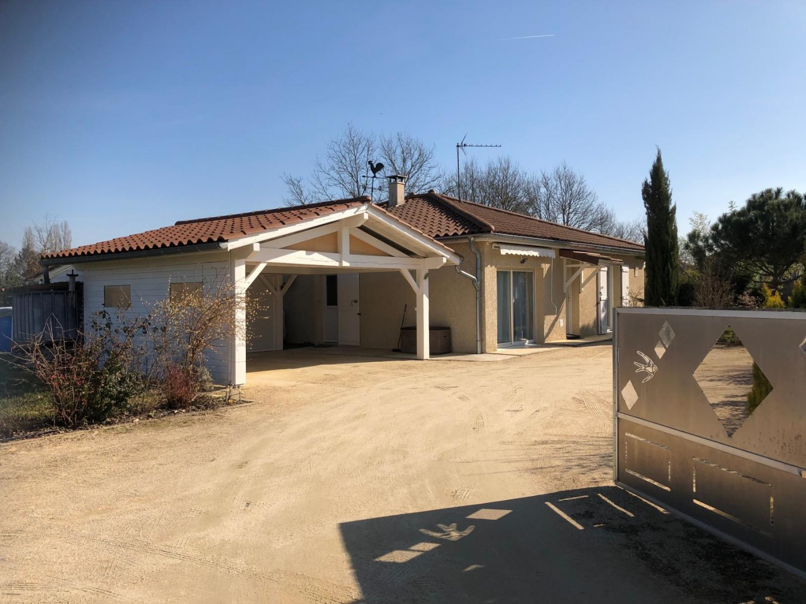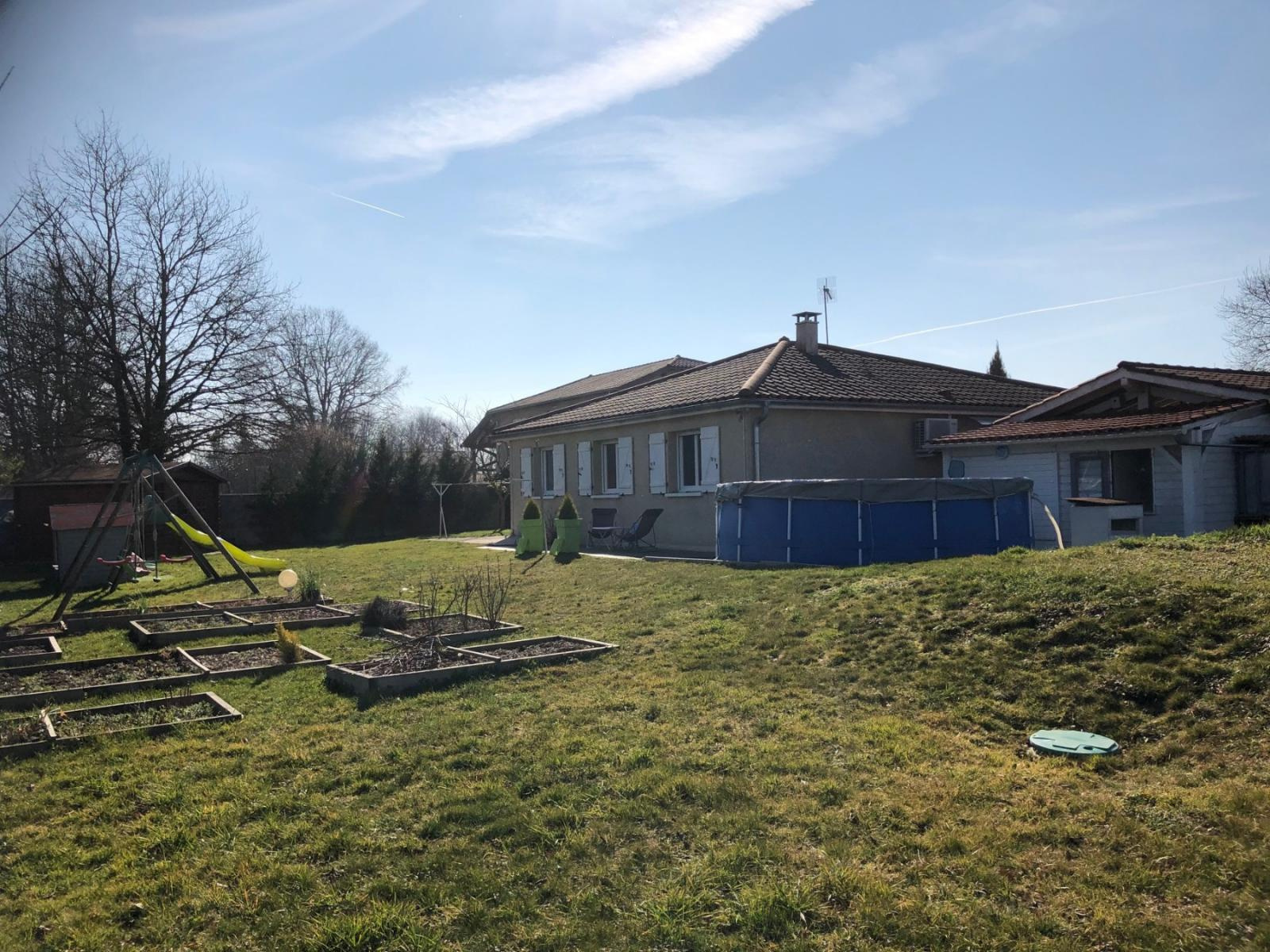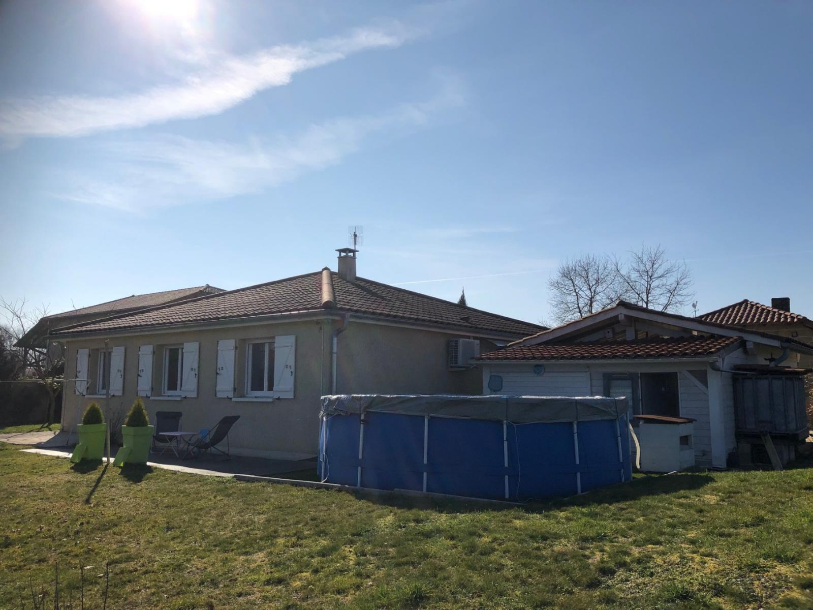Jolie villa récente (2010) composée d'une entrée donnant sur un grand séjour avec cuisine équipée ouverte de 40 m², un salon de 12 m², 3 chambres, une salle de bains avec douche, un toilette séparé et une buanderie. A l'extérieur, un bel abri pouvant accueillir deux véhicules, une terrasse couverte, une cabane de jardin, le tout sur un terrain de 1367 m² clos et arboré, hors lotissement, et Viriat à seulement 4 km ! Les +++ de la maison : climatisation réversible, portail électrique, poêle à granulés, piscine hors sol. Villa libre début Septembre 2019.