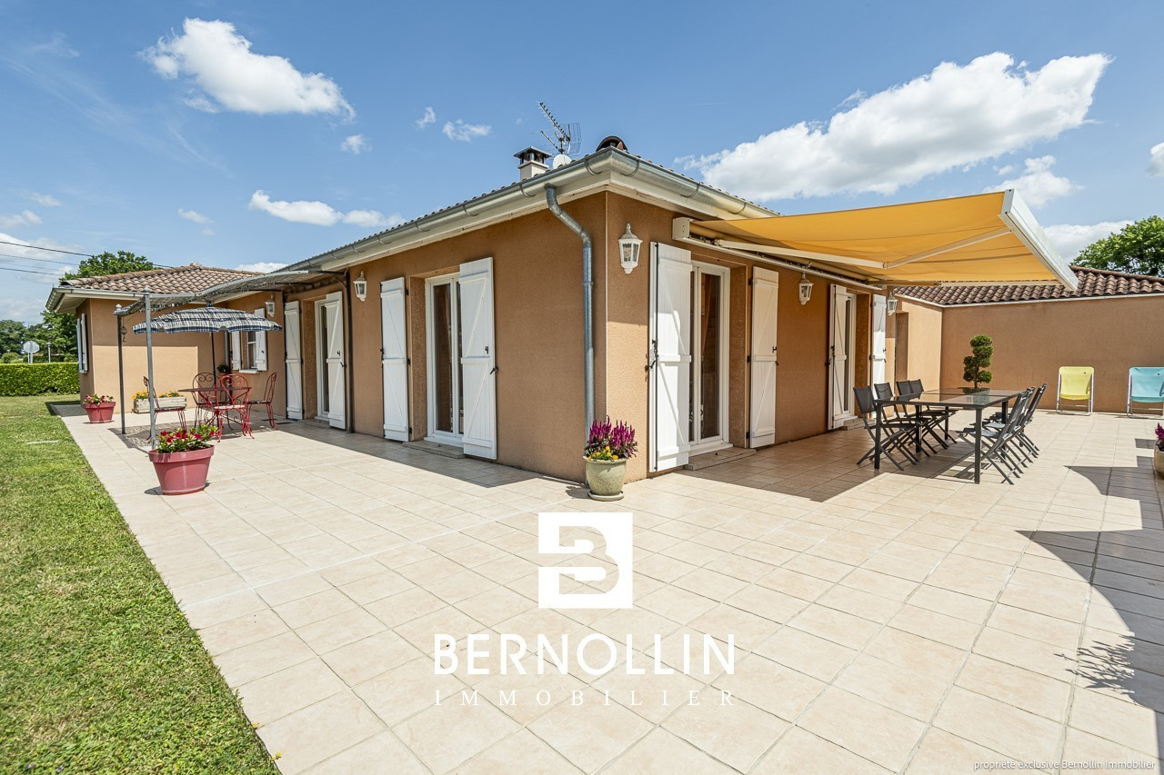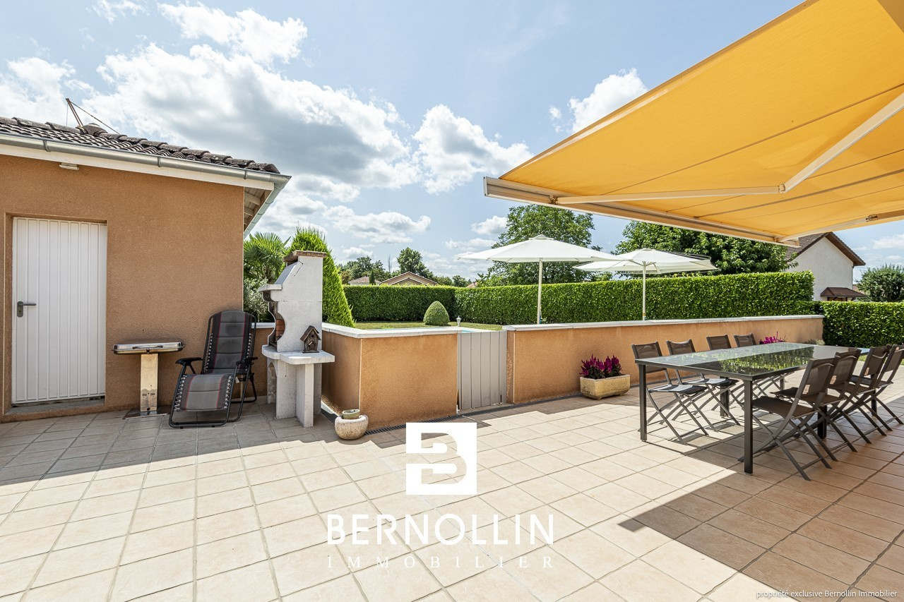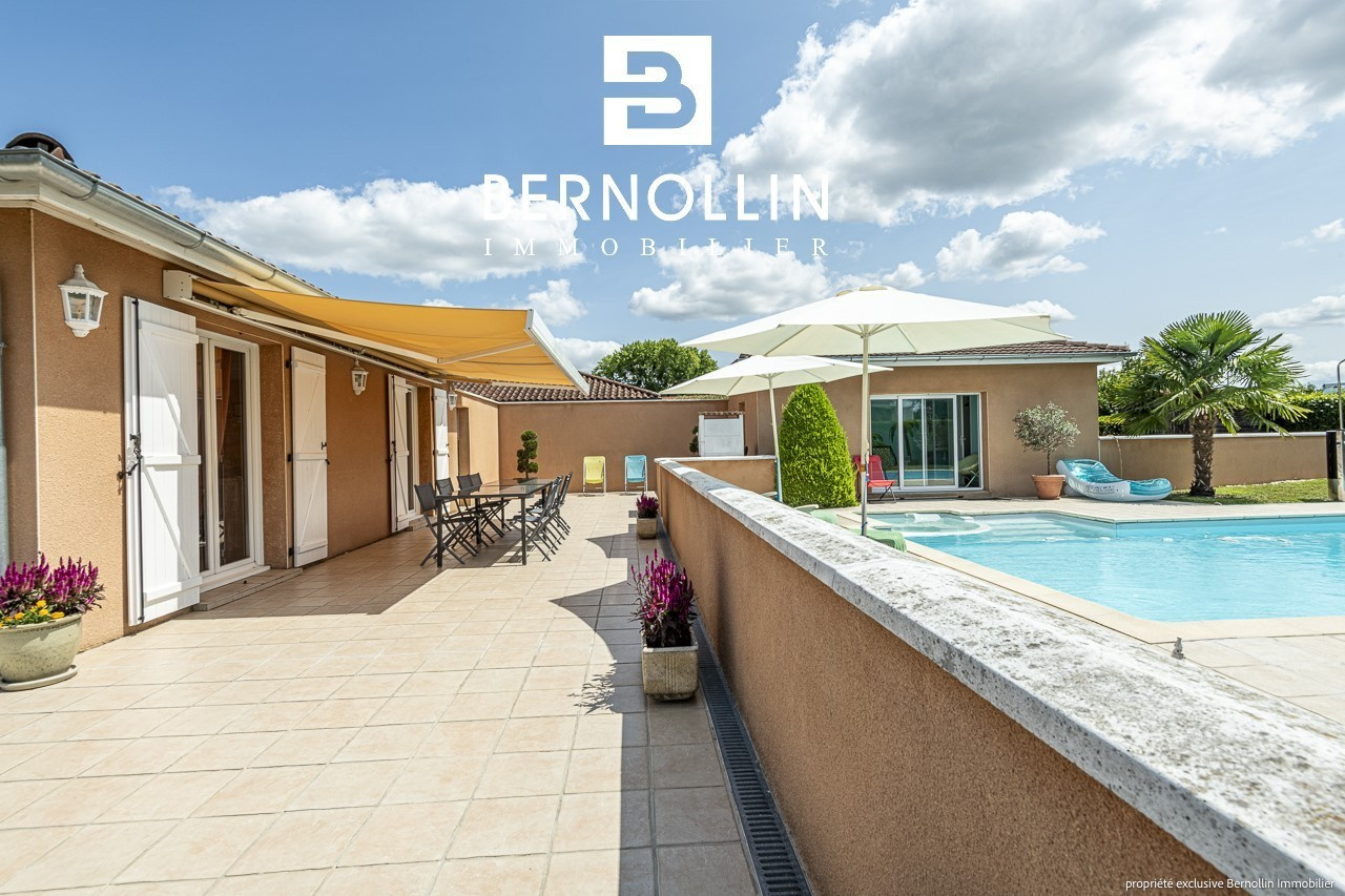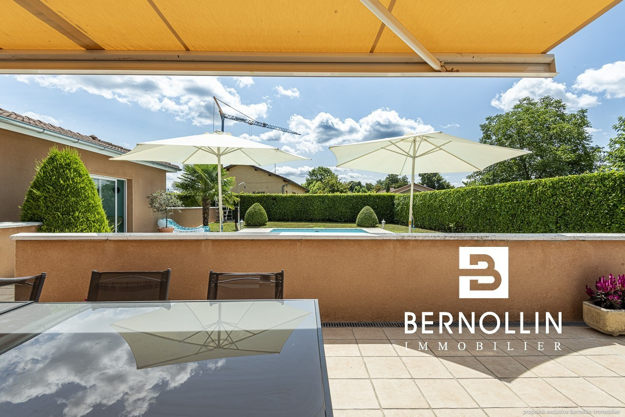 Venez poser vos valises dans cette ravissante villa de plain pied très bien entretenue avec piscine proche du centre du village ! Elle se compose d'une entrée ouvrant sur le salon-séjour de 34.47 m², cuisine équipée semi ouverte avec 3 baies vitrées donnant sur la grande terrasse + store électrique. Un dégagement dessert un toilette, une salle de bains avec douche, 3 chambres dont 2 équipées d'un placard. Le garage attenant est isolé et carrelé et abrite la buanderie. La villa est équipée d'une très belle piscine sécurisée avec son pool house et un toilette supplémentaire. Chauffage au sol dans le séjour + électrique, poêle à bois, tout à l'égout, double vitrage PVC. L'ensemble édifié sur un terrain clos de 1100 m². Les +++ : porte de garage automatique, portail automatique, proche du centre. DPE : D/223, GES: B/07, Diag établi le 12/07/2023. Montant estimé des dépenses annuelles d'énergie pour un usage standard : entre 1360 et 1900 ?. Pour plus d'informations, téléphoner à Laurie SCHILLINGER au 06 26 91 47 08. Agence Bernollin Immobilier Attignat. Prix : 349 000 ? / Référence annonce : BER01342. Honoraires à la charge du vendeur.