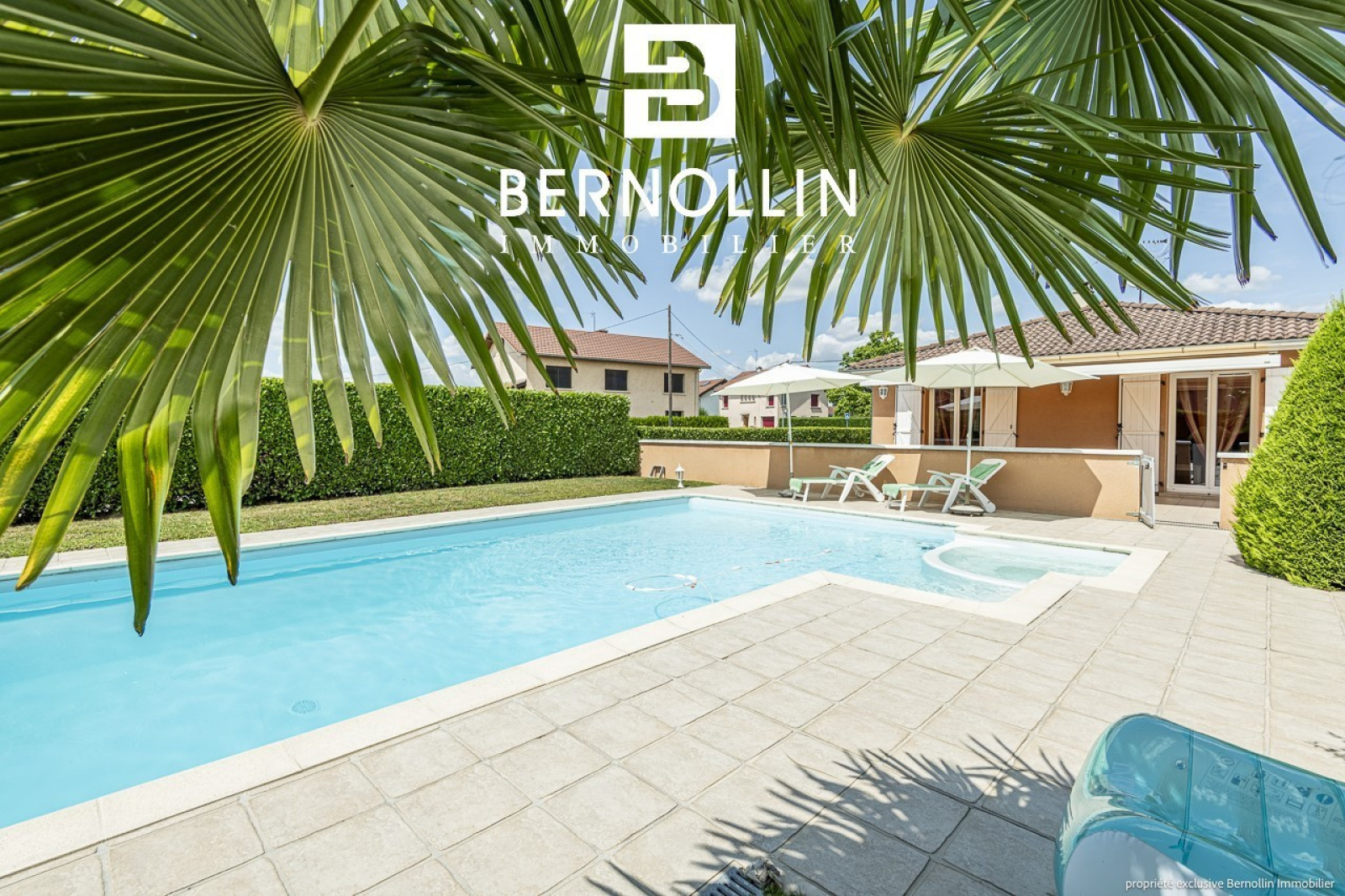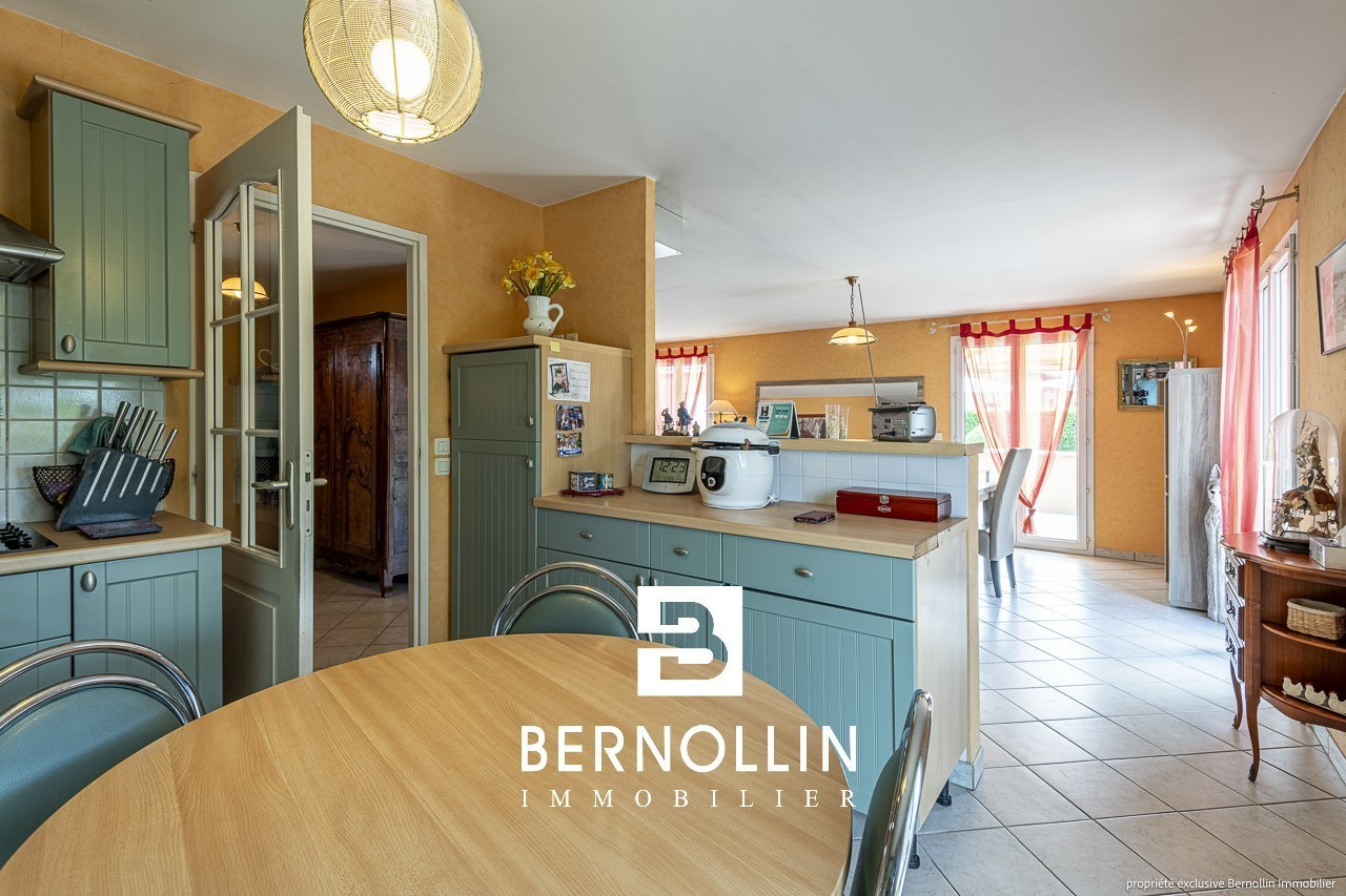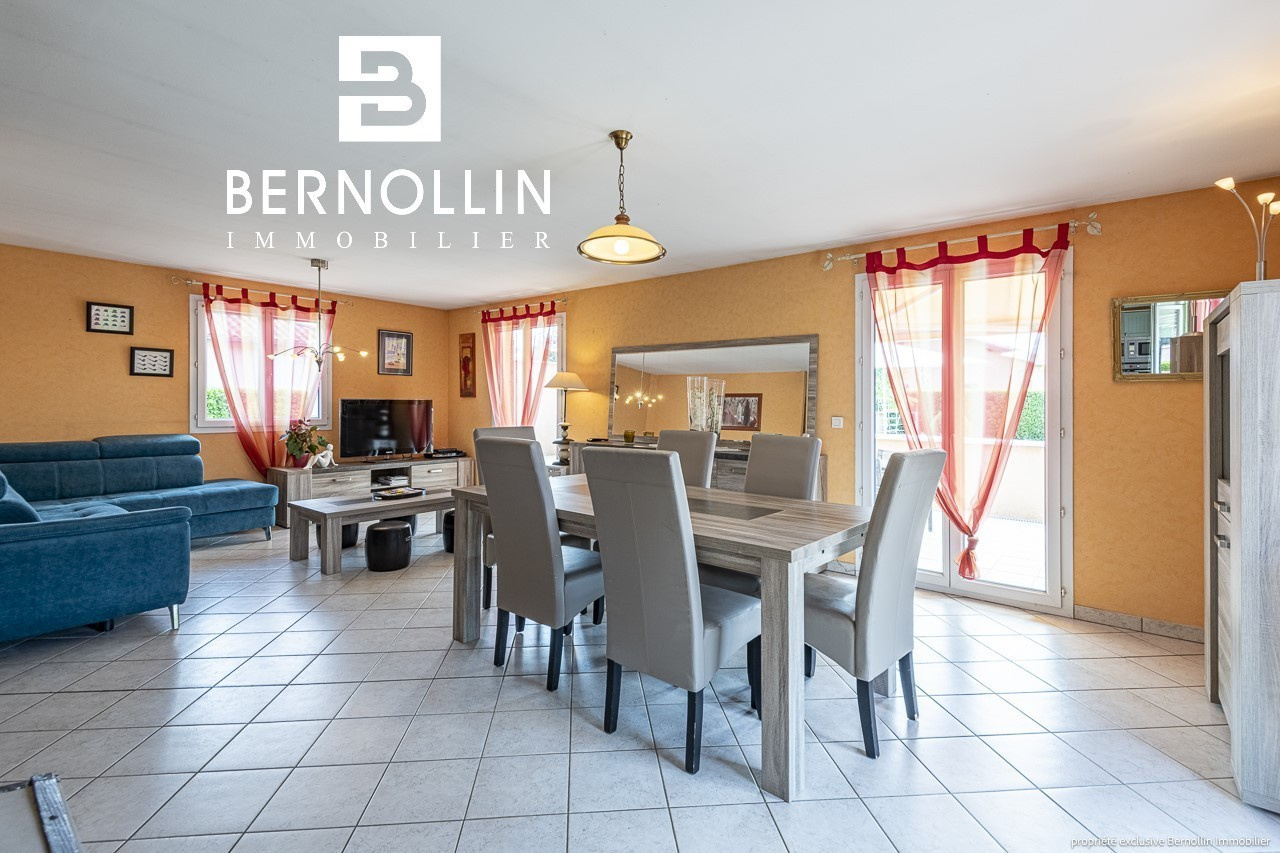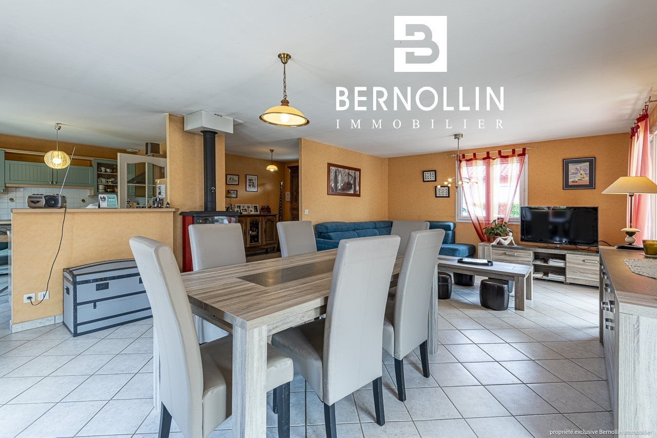 Venez poser vos valises dans cette ravissante villa de plain pied très bien entretenue avec piscine proche du centre du village ! Elle se compose d'une entrée ouvrant sur le salon-séjour de 34.47 m², cuisine équipée semi ouverte avec 3 baies vitrées donnant sur la grande terrasse + store électrique. Un dégagement dessert un toilette, une salle de bains avec douche, 3 chambres dont 2 équipées d'un placard. Le garage attenant est isolé et carrelé et abrite la buanderie. La villa est équipée d'une très belle piscine sécurisée avec son pool house et un toilette supplémentaire. Chauffage au sol dans le séjour + électrique, poêle à bois, tout à l'égout, double vitrage PVC. L'ensemble édifié sur un terrain clos de 1100 m². Les +++ : porte de garage automatique, portail automatique, proche du centre. DPE : D/223, GES: B/07, Diag établi le 12/07/2023. Montant estimé des dépenses annuelles d'énergie pour un usage standard : entre 1360 et 1900 ?. Pour plus d'informations, téléphoner à Laurie SCHILLINGER au 06 26 91 47 08. Agence Bernollin Immobilier Attignat. Prix : 349 000 ? / Référence annonce : BER01342. Honoraires à la charge du vendeur.