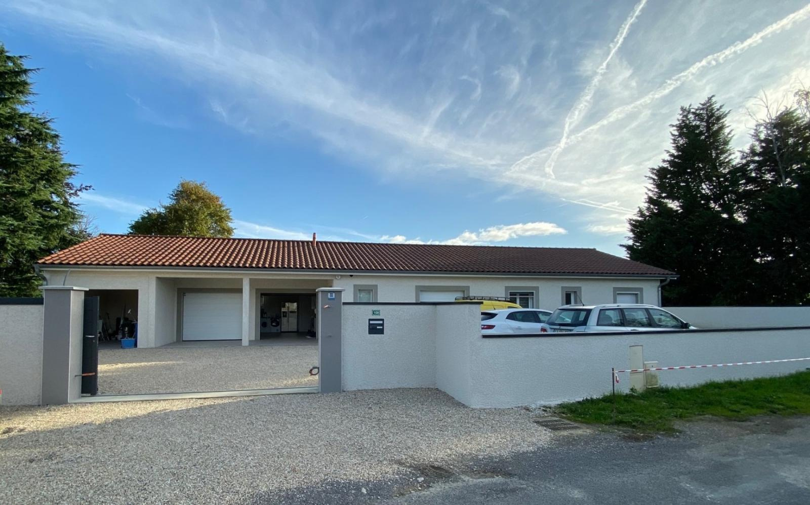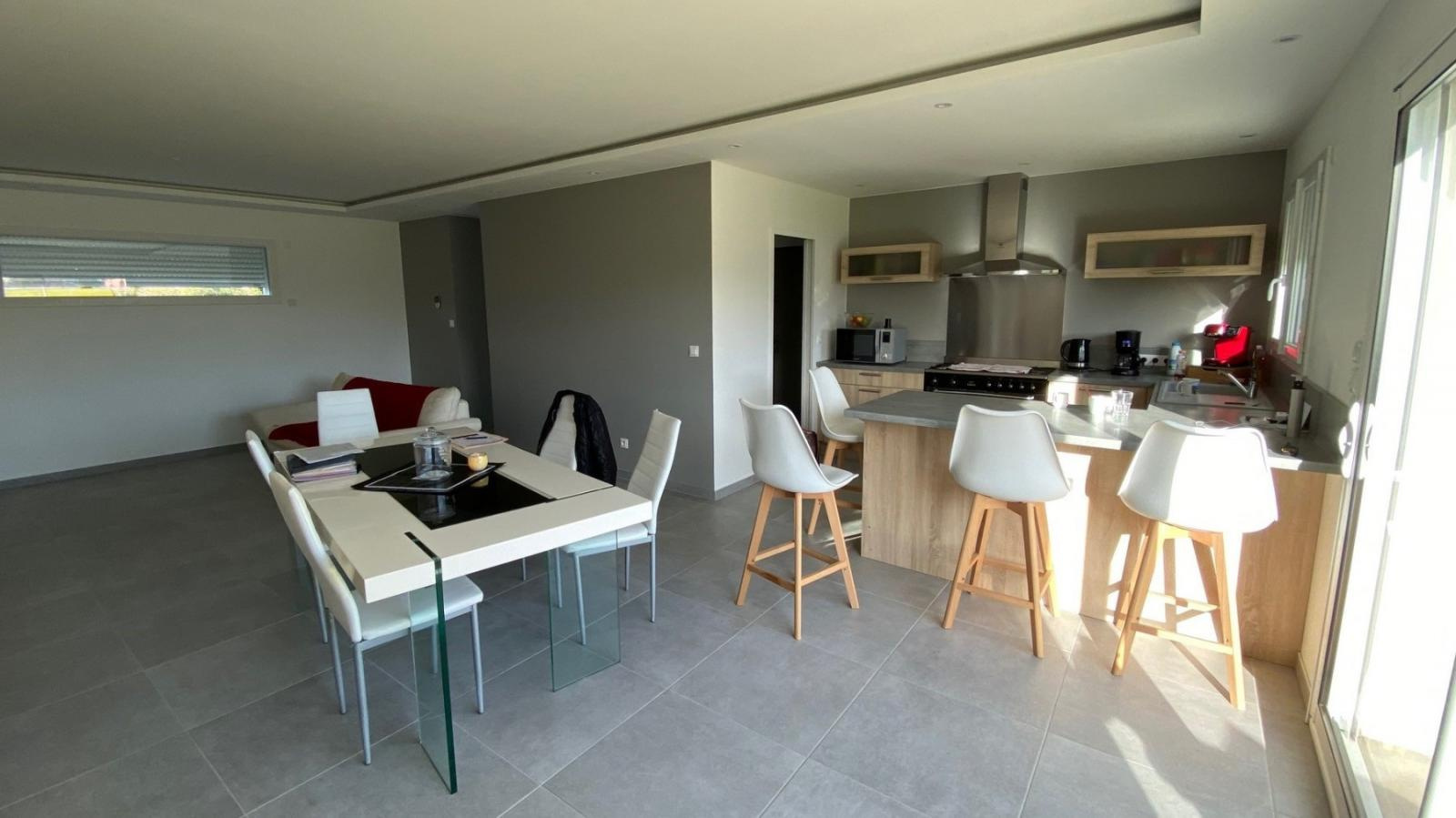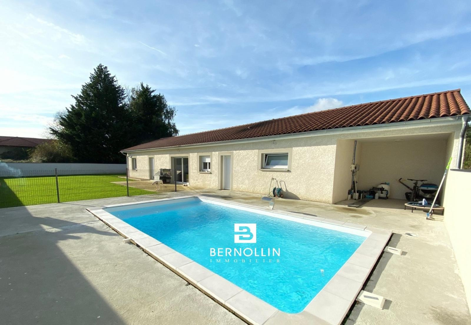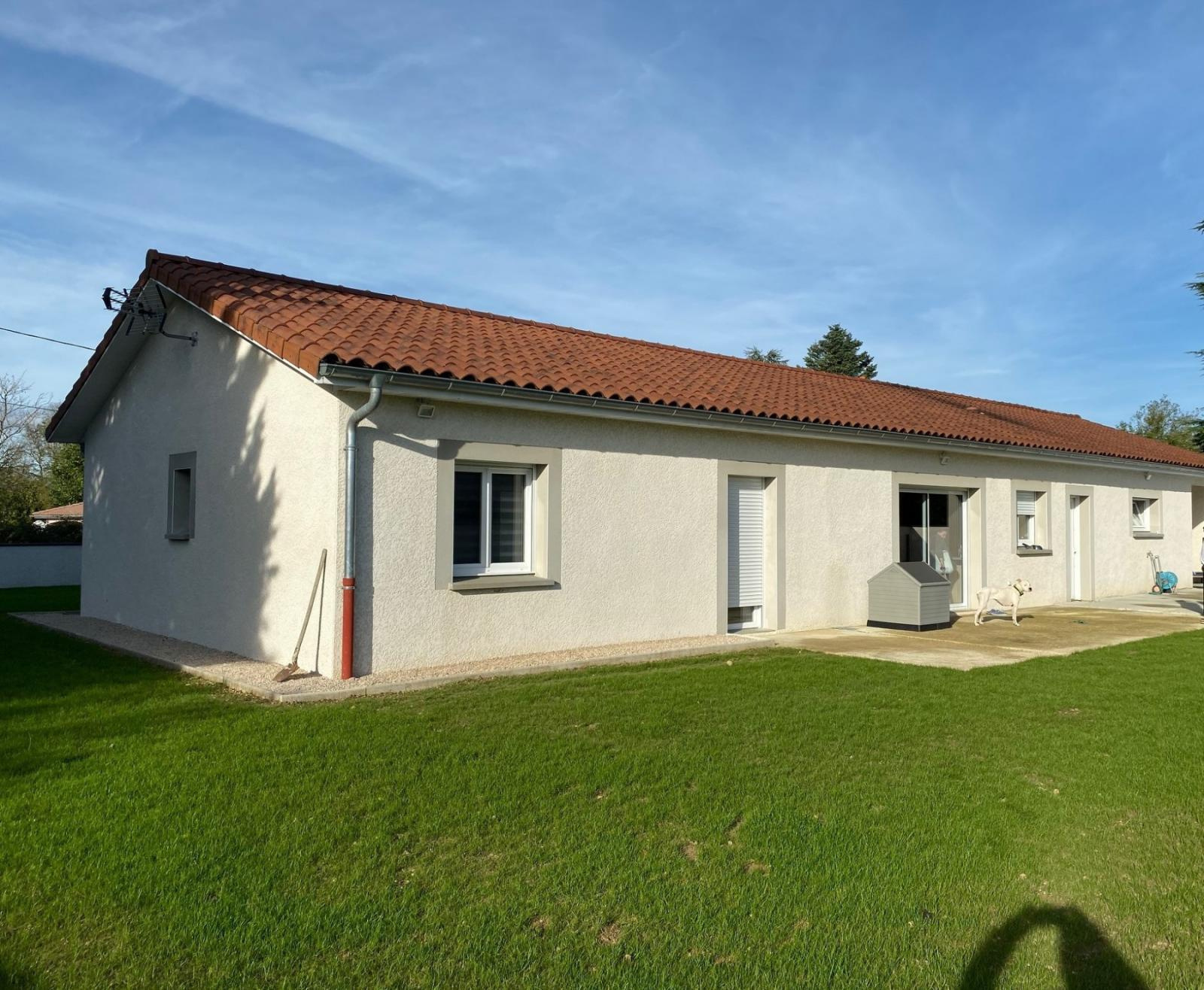 Belle villa récente de plain pied normes RT 2012, composée d'une entrée donnant sur le séjour avec cuisine ouverte et équipée, 3 chambres dont une suite parentale avec salle d'eau et dressing, bureau, salle de bains avec douche et baignoire, cellier, toilette. La propriété possède un double garage isolé et carrelé de 37 m² avec portes sectionnelles automatique, abri ouvert de 14 m², le tout sur un terrain de 956 m² clos de murs avec portail électrique. Vous profiterez également d'une piscine (7x4) et son pool house. Les +++ : Hors lotissement, VMC double flux, gaz de ville, tout à l'égout et poêle à granulés.
