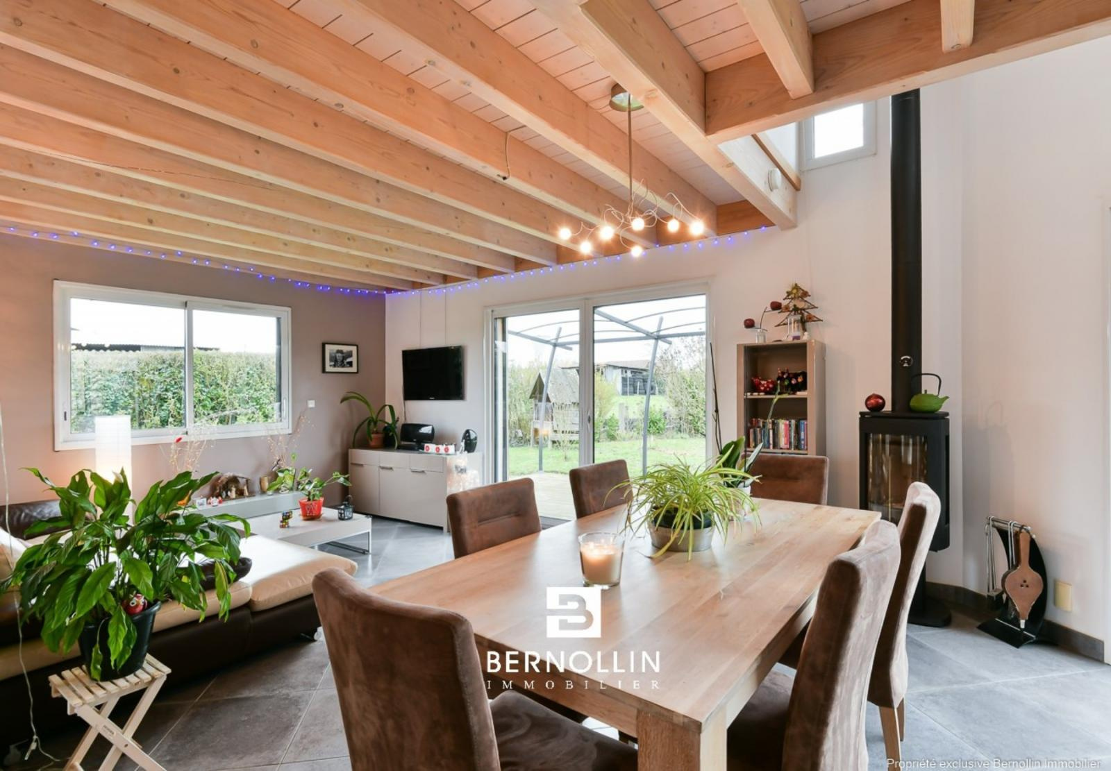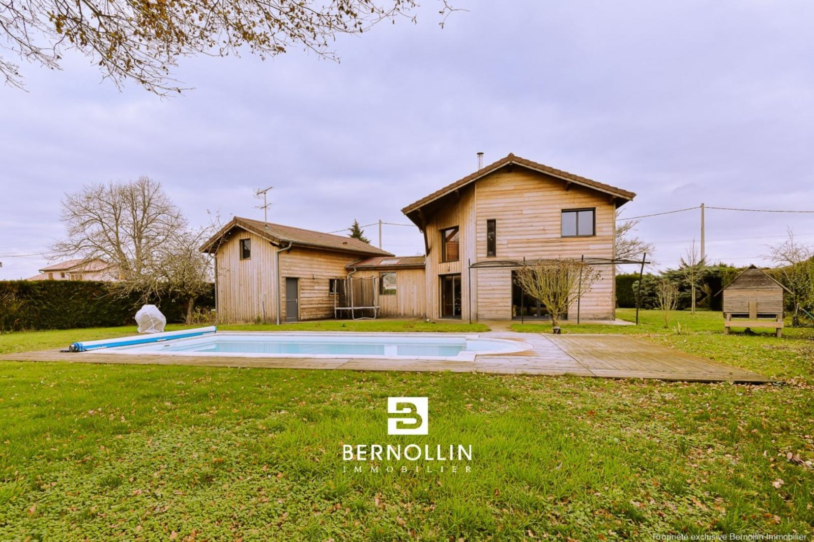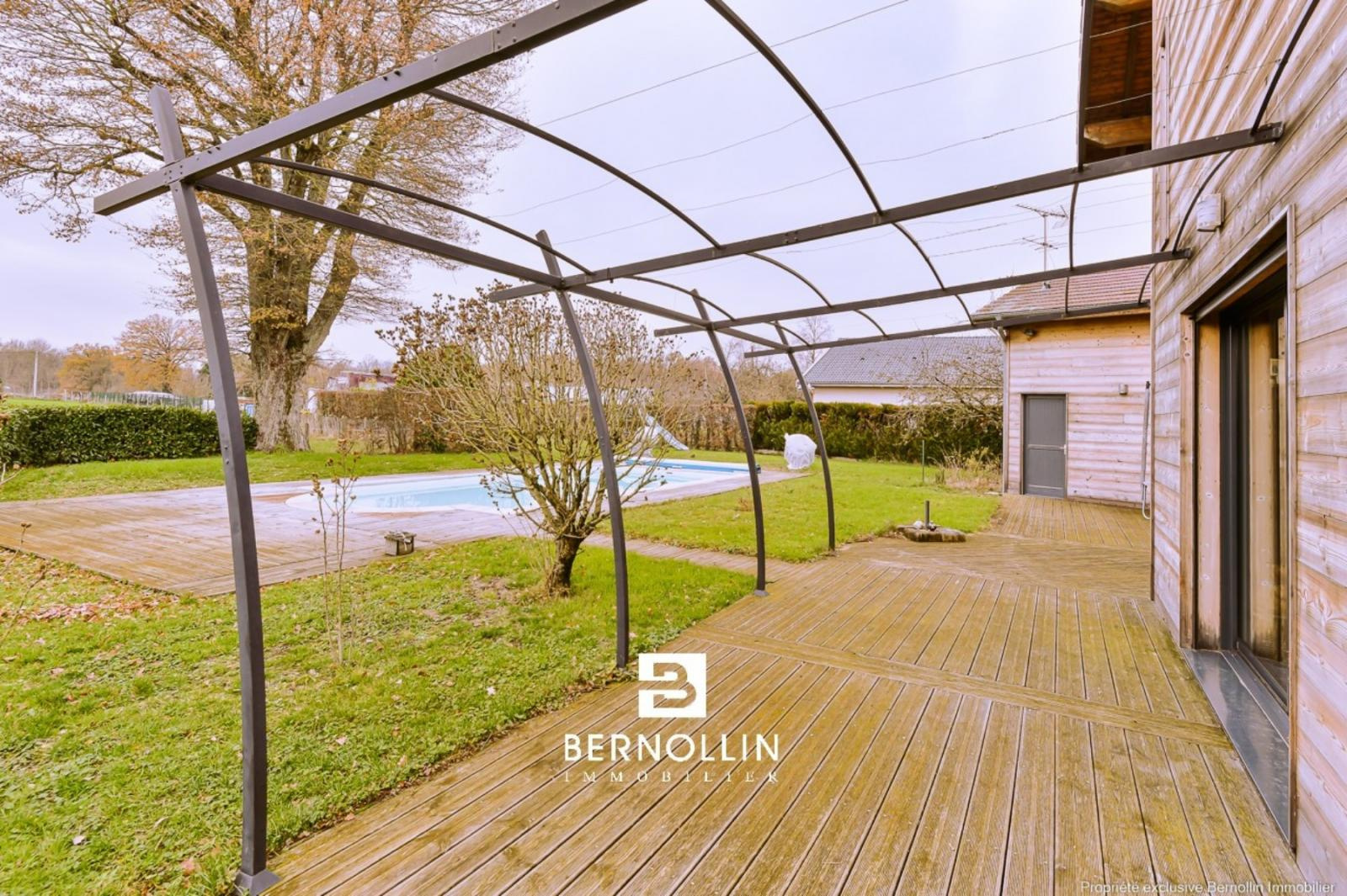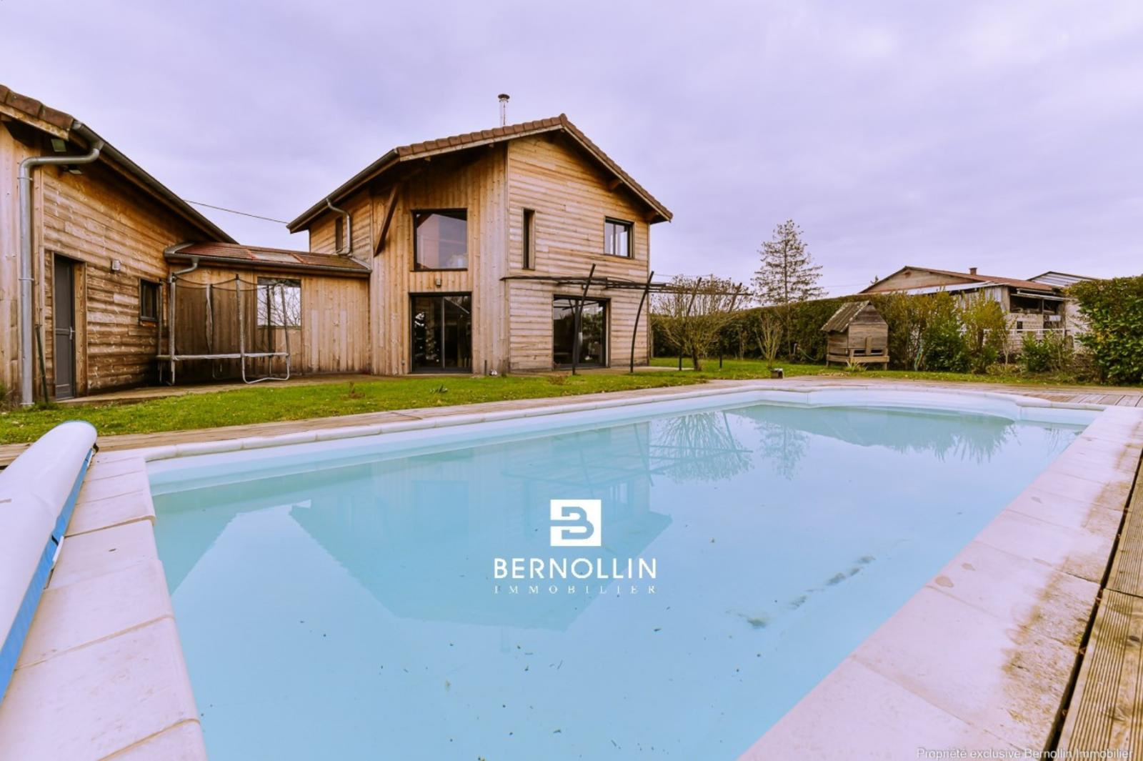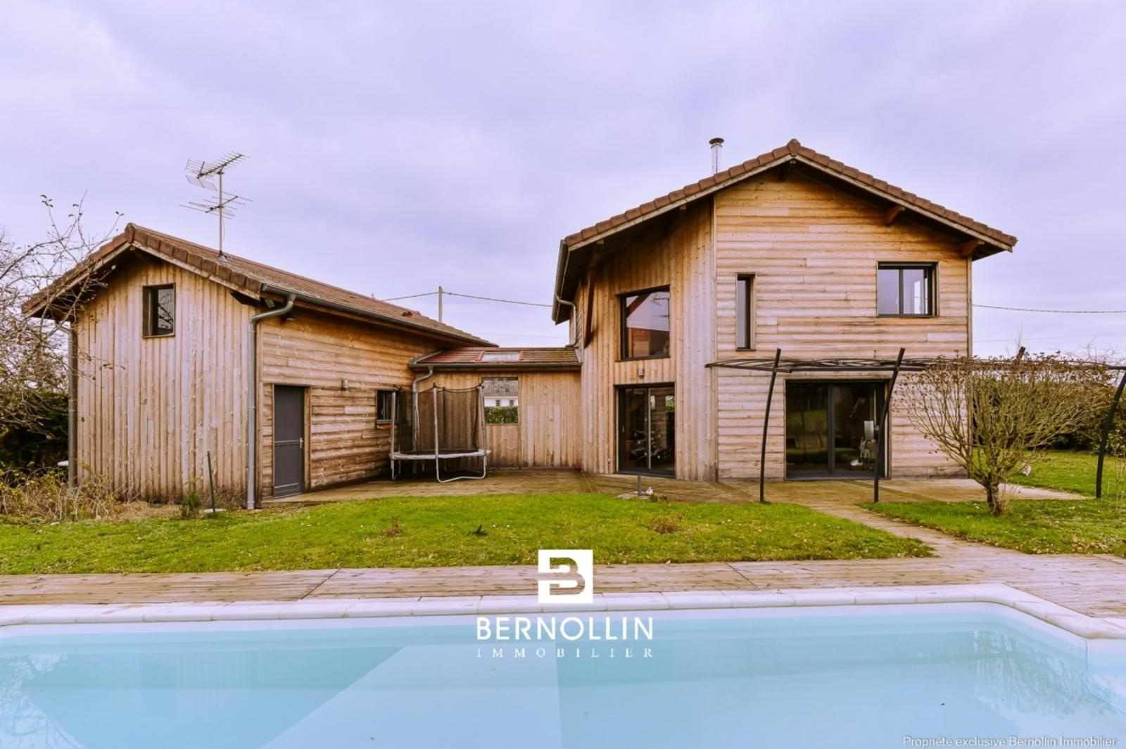 Très jolie villa en bois (2009) composée au rez de chaussée d'une entrée donnant sur une grande pièce de vie avec cuisine équipée ouverte, séjour-salon avec baies vitrées de 28 m² et son poêle à bois, bureau indépendant, cellier, buanderie et toilette. A l'étage, escalier en bois ouvert donnant sur un dégagement qui dessert 2 chambres, un toilette suspendu et une chambre parentale, dressing, salle de bains et douche. Le séjour-salon donne sur une grande terrasse en bois et sa piscine chauffée (8x4) DESJOYAUX avec filtration au sel. Double garage avec mezzanine sur un terrain clos et arboré de 1456 m² au calme et sans vis à vis. Chauffage au sol avec pompe à chaleur, tout à l'égout. Les +++ : Très belles prestations à découvrir lors de votre visite. Situation idéale proche de la voie verte pour se rendre au centre du village et de l'autoroute A40.