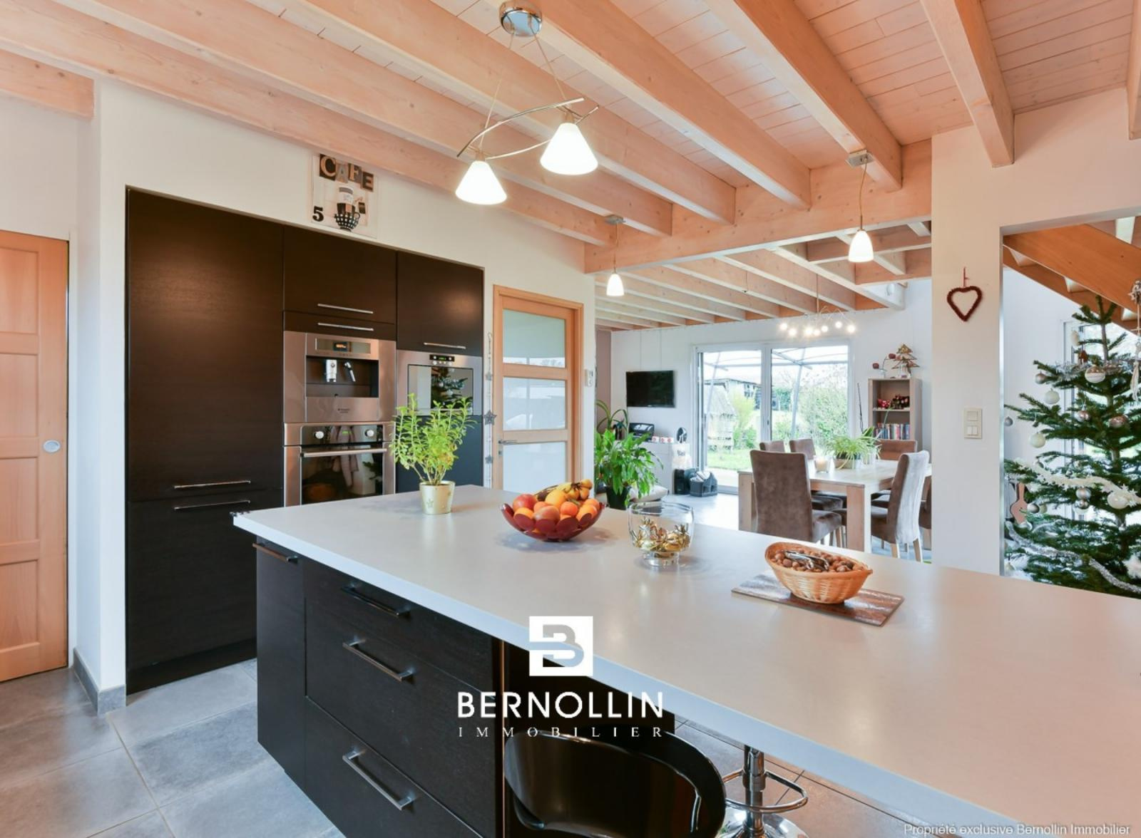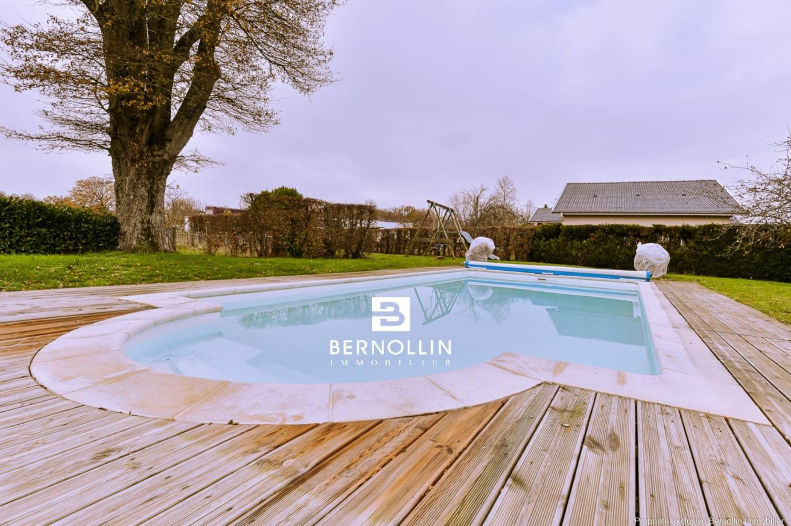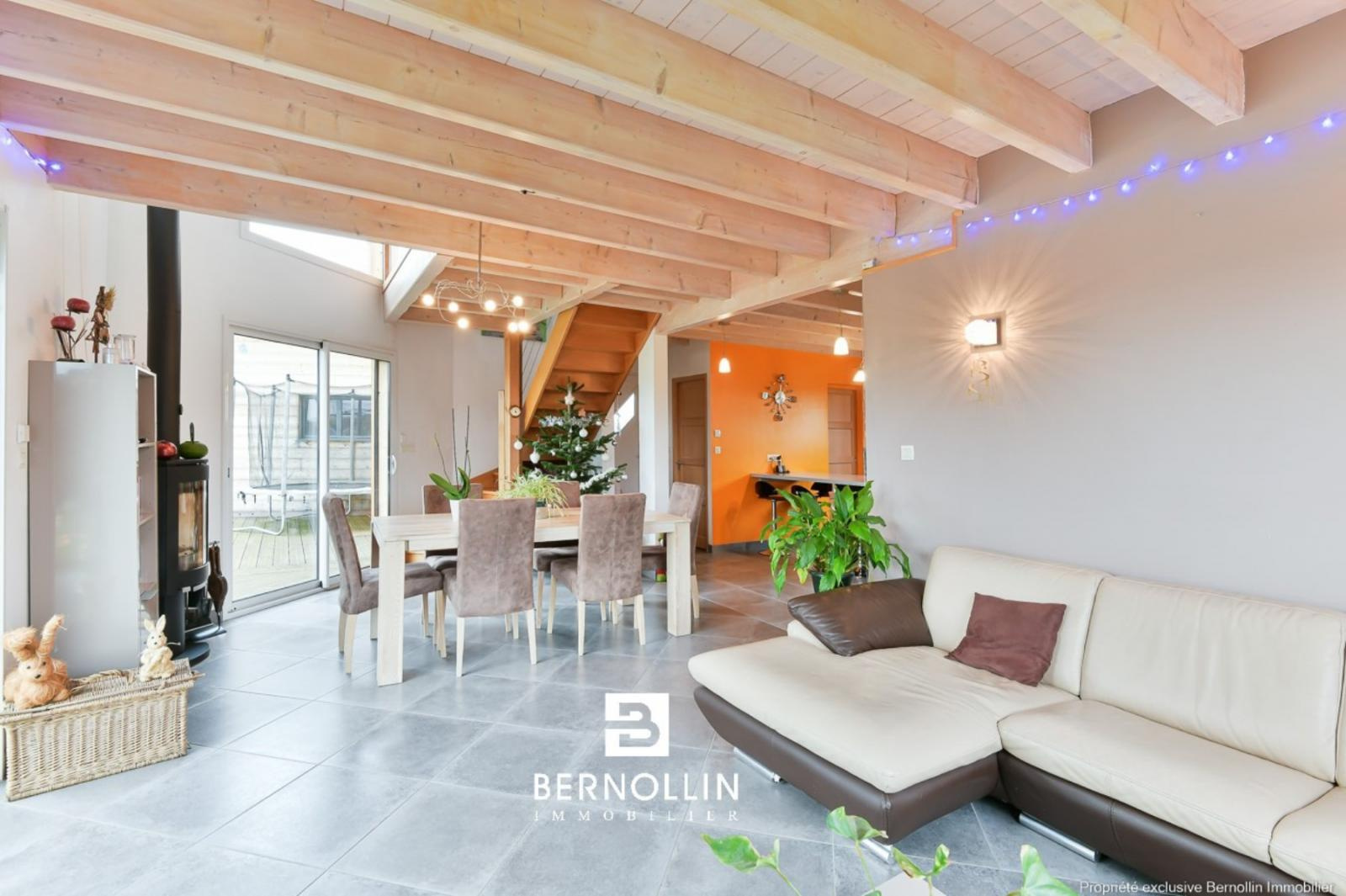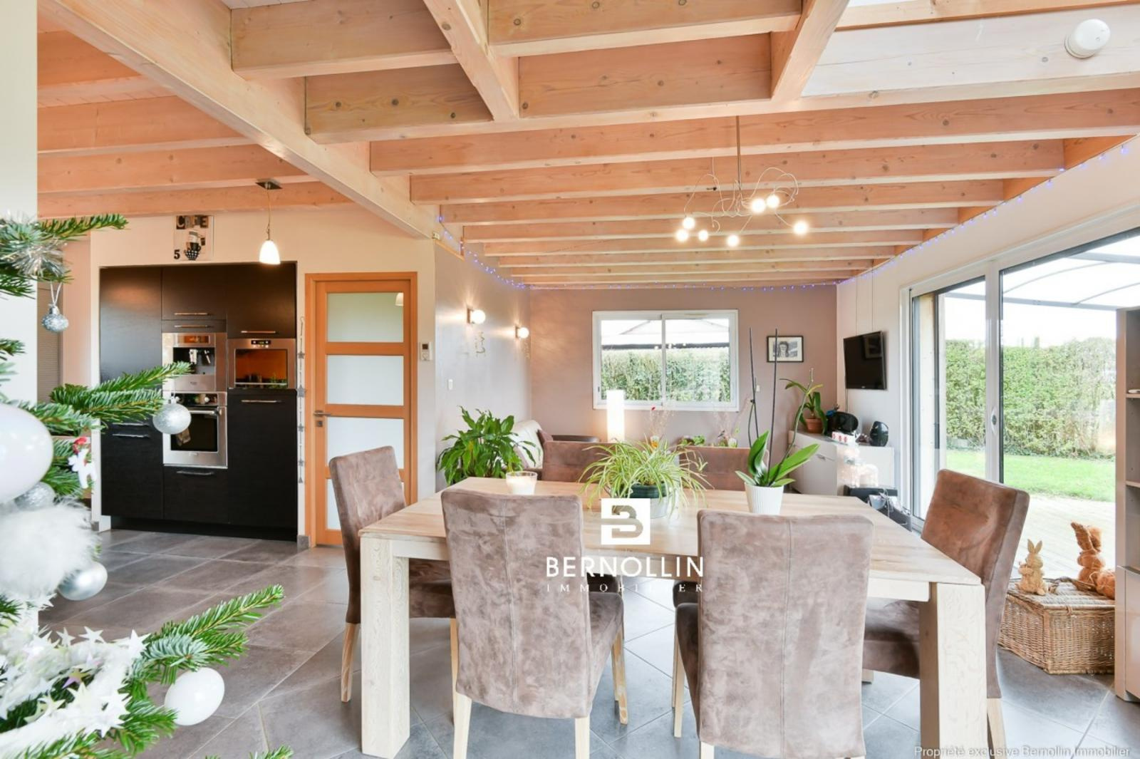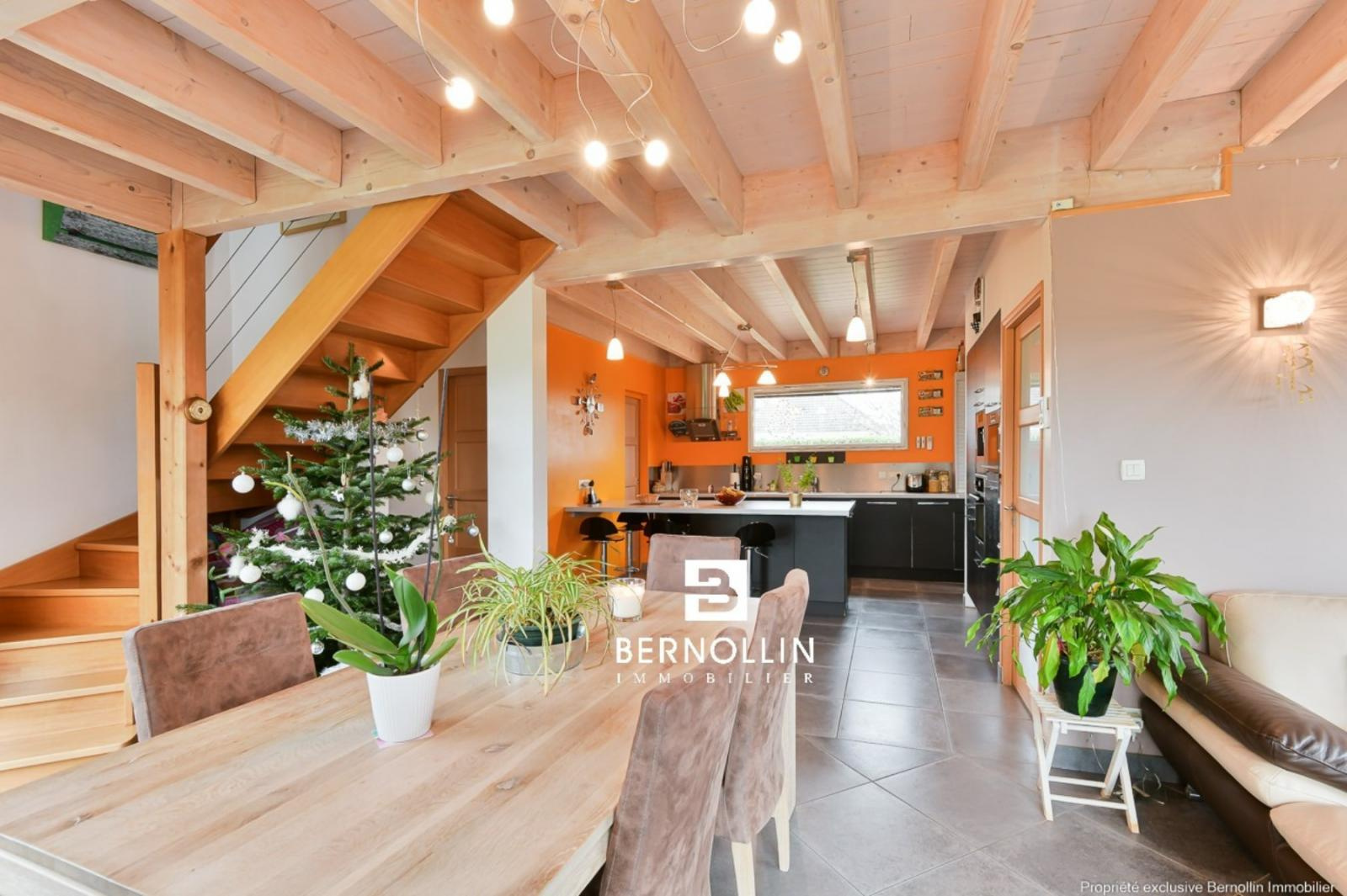 Très jolie villa en bois (2009) composée au rez de chaussée d'une entrée donnant sur une grande pièce de vie avec cuisine équipée ouverte, séjour-salon avec baies vitrées de 28 m² et son poêle à bois, bureau indépendant, cellier, buanderie et toilette. A l'étage, escalier en bois ouvert donnant sur un dégagement qui dessert 2 chambres, un toilette suspendu et une chambre parentale, dressing, salle de bains et douche. Le séjour-salon donne sur une grande terrasse en bois et sa piscine chauffée (8x4) DESJOYAUX avec filtration au sel. Double garage avec mezzanine sur un terrain clos et arboré de 1456 m² au calme et sans vis à vis. Chauffage au sol avec pompe à chaleur, tout à l'égout. Les +++ : Très belles prestations à découvrir lors de votre visite. Situation idéale proche de la voie verte pour se rendre au centre du village et de l'autoroute A40.