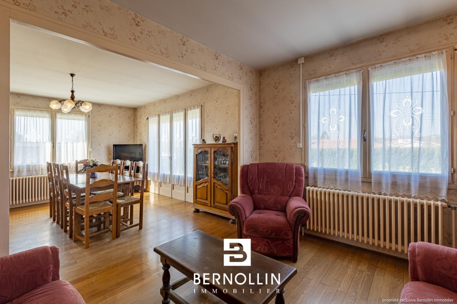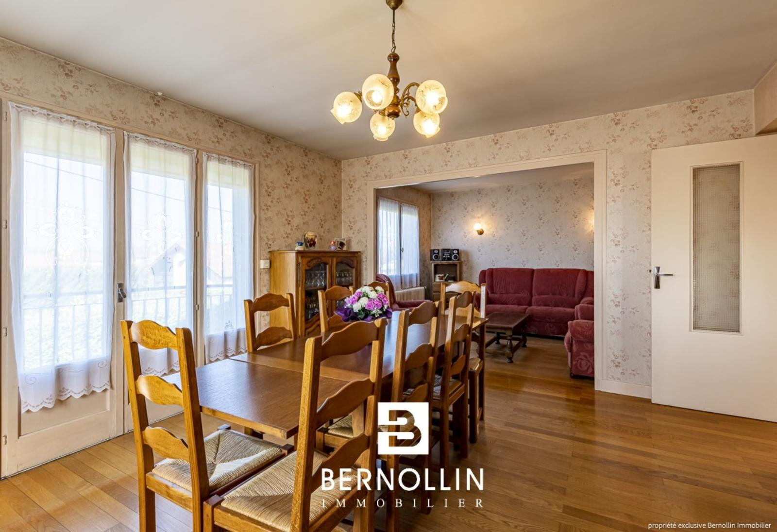 Grande maison des années 70 sur sous-sol, à rafraîchir, bien située, avec un grand terrain. Elle se compose au rez de chaussée d'une entrée de 16.70 m², un appartement indépendant avec cuisine, 1 chambre, dégagement, une salle d'eau et un toilette, grand garage de 28.47 m², une pièce à aménager de 33.70 m² et la chaufferie de 6.50 m². Au premier étage, cuisine indépendante équipée, salon séjour de 29.15 m², 4 chambres, un dégagement, une salle d'eau et un toilette. Au deuxième étage, un grand grenier de 60 m². L'ensemble édifié sur un terrain de 1150 m² environ. Chauffage gaz de ville, double vitrage bois, tout à l'égout. Les +++ : Toiture rénovée en 2005, volets roulants électriques, adoucisseur d'eau.