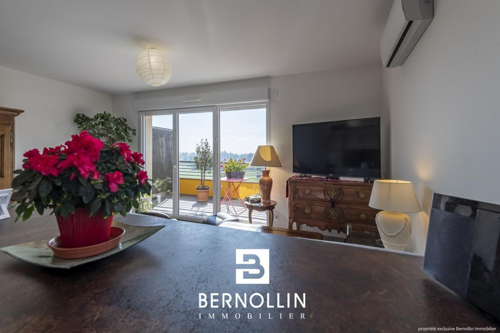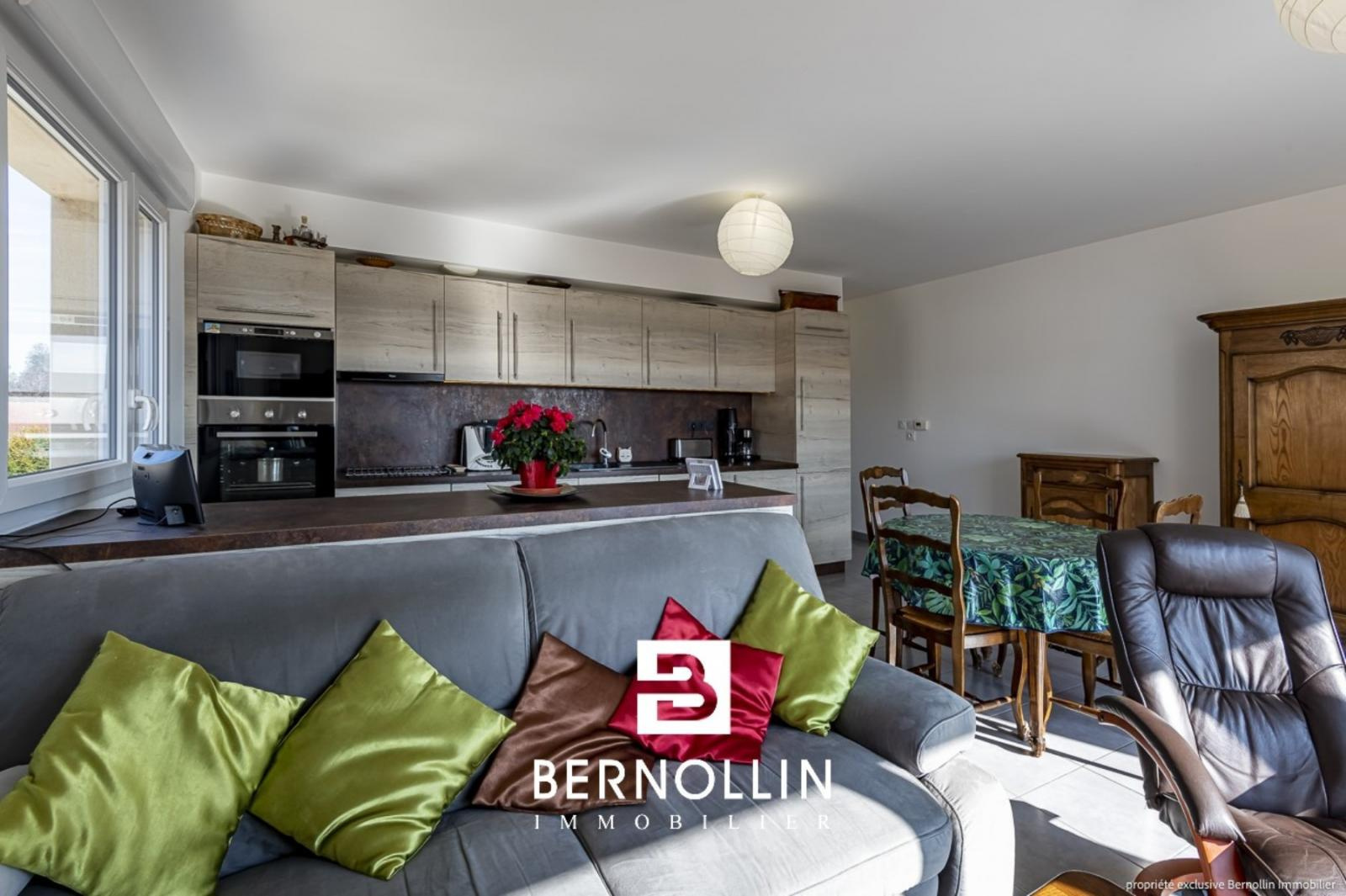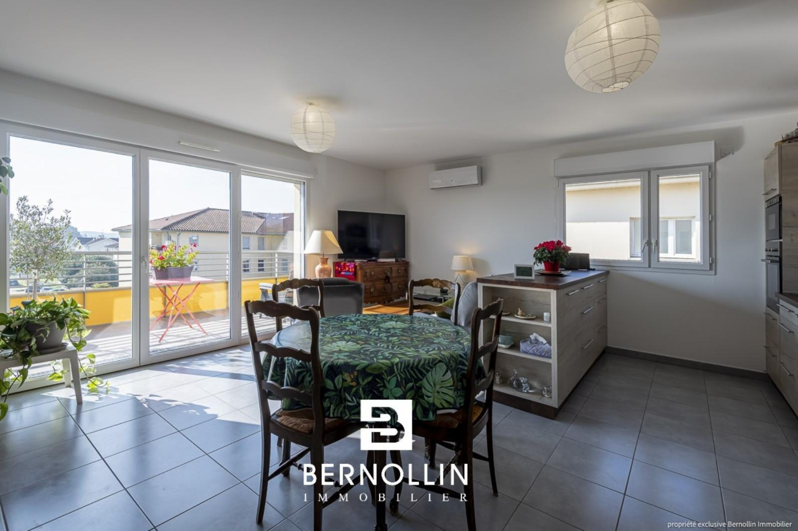 Vous êtes en quête d'un bien empli de luminosité et au top du confort actuel ? N'hésitez plus et venez découvrir sans hésiter ce magnifique appartement, au calme dans résidence neuve et sécurisée avec ascenseur, en plein c?ur de Montrevel-en-Bresse : tous les commerces, écoles, médecins, loisirs et la Plaine Tonique sont accessibles à pied. Situé au dernier étage, il se compose d'une entrée avec dressing desservant le vaste séjour ensoleillé de 32 m² (orientation Sud) et sa belle terrasse de 12 m² dotée d'une tendue automatisée, avec vue panoramique à couper le souffle sur le Revermont, la plaine de Bresse et le Mont Blanc. La cuisine ouverte avec îlot de rangement est la création d'un artisan local et reconnu et elle comprend lave-vaisselle, lave-linge, four et four à micro-ondes, réfrigérateur, hotte et plaque vitrocéramique. 2 chambres avec parquet massif, dont une avec accès sur 2ème terrasse, belle salle d'eau avec douche italienne et toilette indépendant, complètent le tout. L'appartement est équipé de climatisation et visiophone. Au sous-sol, vous bénéficiez d'un grand garage de 21 m², ainsi que d'un local à vélos (collectif). Précision importante : l'ensemble du bien, ainsi que son garage, est équipé aux normes PMR. Chauffage gaz de ville, charges de copropriété comprenant eau chaude et chauffage : 140 ? par mois, aucun travaux à prévoir.