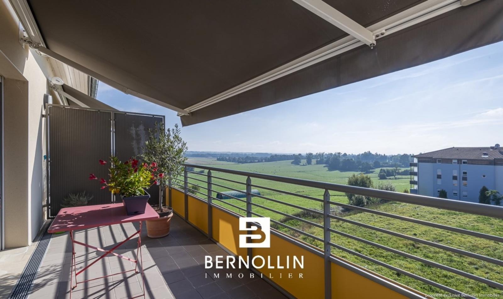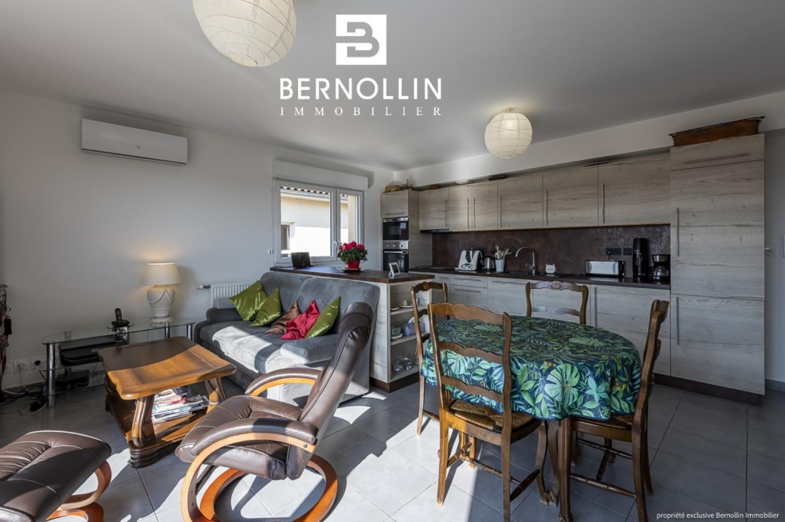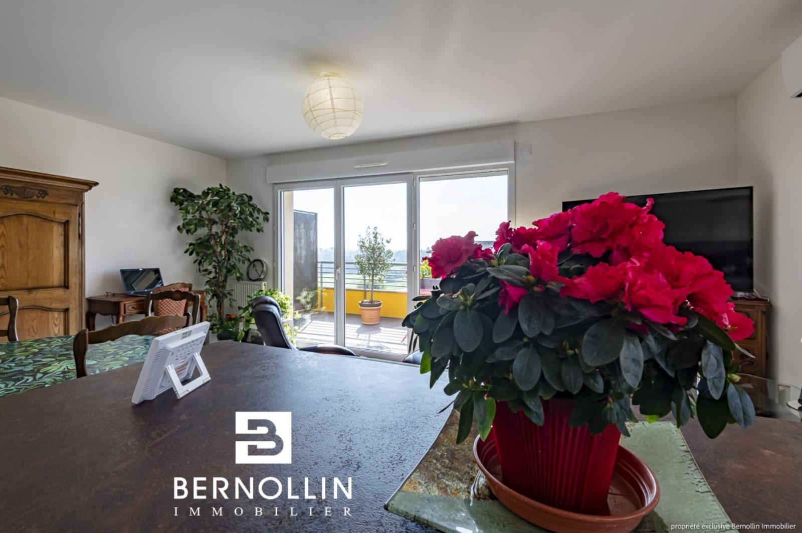 Vous êtes en quête d'un bien empli de luminosité et au top du confort actuel ? N'hésitez plus et venez découvrir sans hésiter ce magnifique appartement, au calme dans résidence neuve et sécurisée avec ascenseur, en plein c?ur de Montrevel-en-Bresse : tous les commerces, écoles, médecins, loisirs et la Plaine Tonique sont accessibles à pied. Situé au dernier étage, il se compose d'une entrée avec dressing desservant le vaste séjour ensoleillé de 32 m² (orientation Sud) et sa belle terrasse de 12 m² dotée d'une tendue automatisée, avec vue panoramique à couper le souffle sur le Revermont, la plaine de Bresse et le Mont Blanc. La cuisine ouverte avec îlot de rangement est la création d'un artisan local et reconnu et elle comprend lave-vaisselle, lave-linge, four et four à micro-ondes, réfrigérateur, hotte et plaque vitrocéramique. 2 chambres avec parquet massif, dont une avec accès sur 2ème terrasse, belle salle d'eau avec douche italienne et toilette indépendant, complètent le tout. L'appartement est équipé de climatisation et visiophone. Au sous-sol, vous bénéficiez d'un grand garage de 21 m², ainsi que d'un local à vélos (collectif). Précision importante : l'ensemble du bien, ainsi que son garage, est équipé aux normes PMR. Chauffage gaz de ville, charges de copropriété comprenant eau chaude et chauffage : 140 ? par mois, aucun travaux à prévoir.