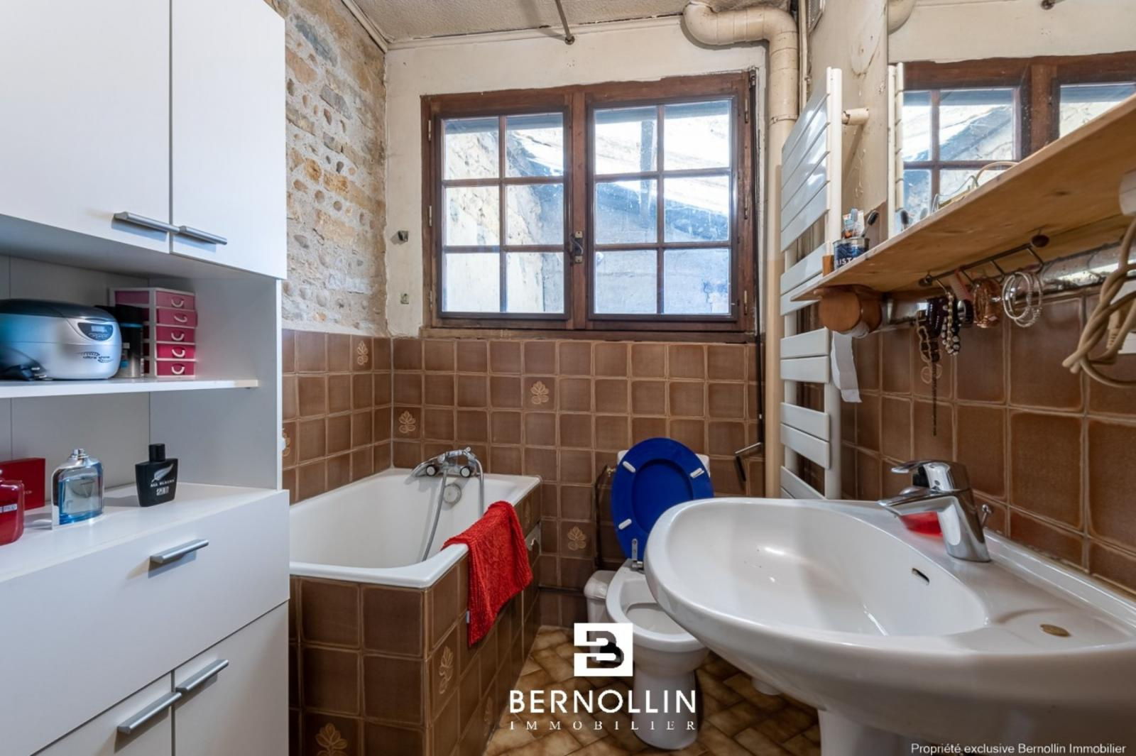 En plein c?ur de la commune et proche de tous les commerces, à découvrir cet appartement loué à rafraîchir, sur 2 niveaux, avec au rez-de-chaussée : grande pièce avec salon, séjour et cuisine ouverte de 48 m², salle de bains, toilette et cour. A l'étage, 3 grandes chambres, une buanderie, toilette et balcon. Combles aménageables au 2ème étage. Pas de copropriété / Vendu loué : loyer de 590 ?. Tout à l'égout, chauffage gaz de ville, double vitrage PVC. Les +++ : Réfection de la toiture en 2005, idéalement situé en plein c?ur du village.