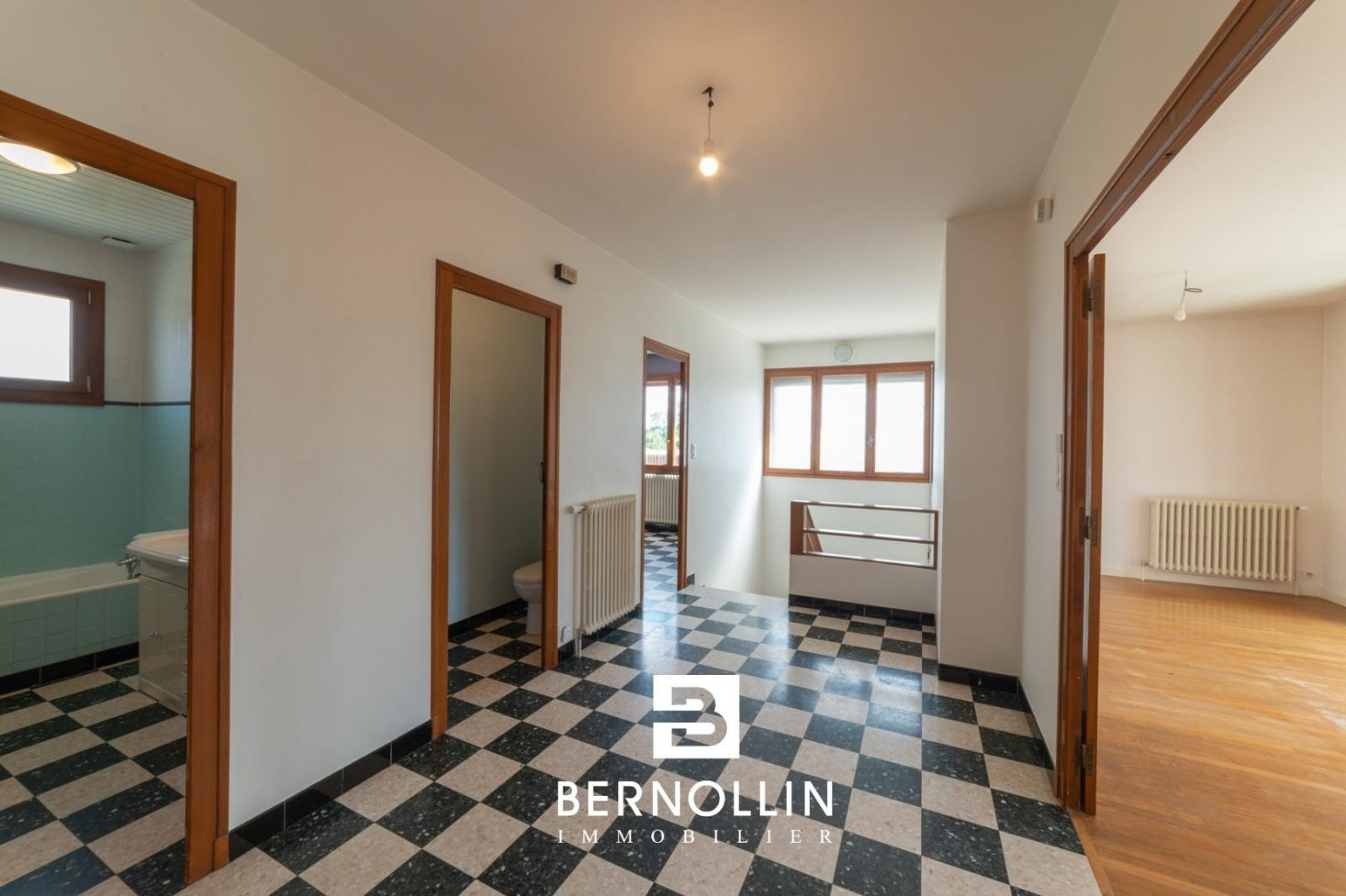 A saisir : maison sur terrain clos de 718 m², à proximité immédiate écoles et commerces Montrevel-en-Bresse. A l'étage, elle se compose d'un couloir desservant un très beau séjour avec parquet de 24 m² et sa lumineuse loggia, une cuisine semi-équipée avec cellier, 2 chambres avec parquet et placards muraux, salle de bains et toilette. Au rez-de-chaussée, l'entrée avec penderie permet l'accès à une grande buanderie de 14 m², une belle cave, la chaufferie et son local avec cuve à mazout, 2 garages de 30 m² chacun et un atelier. Assainissement collectif et chauffage fuel. Les +++ : double vitrage et volets électriques, toiture revue en 2021 (démoussage et peinture), double garage, potentiel aménageable supplémentaire, agréable terrain et situation centre village.