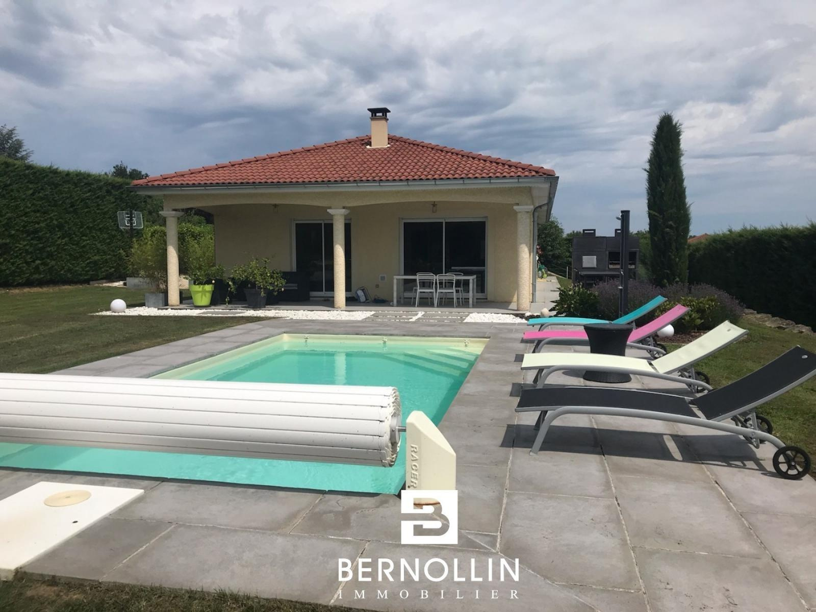 Standing et excellentes prestations pour cette très belle villa de 2009, édifiée sur un terrain de 2000 m² arboré et totalement clos, et située sur la commune dynamique et commerçante de Montrevel-en-Bresse, à 20 mn de Bourg en Bresse et Mâcon. La cuisine équipée et son îlot donne sur le vaste séjour de 50 m², lumineux et agrémenté d'un poêle à bois, s'ouvrant sur la grande terrasse couverte orientée au Sud, sur laquelle il fera bon prendre ses repas. Le couloir dessert 4 coquettes chambres avec placards muraux, salle d'eau avec douche italienne, cellier-buanderie et toilette. Aucun souci pour garer vos véhicules : 2 garages et un vaste abri voiture sont à votre disposition. Attenante mais indépendante, une seconde partie habitation de 49 m² avec cuisine, salle d'eau et toilette, vous offre une belle prestation complémentaire, afin de recevoir vos convives ou aménager un espace loisir. Le tout a été construit avec matériaux de qualité, et bénéficie de double-vitrage, volets roulants électriques, chauffage au sol et radiateurs électriques, menuiseries PVC et aluminium, moustiquaires, adoucisseur d'eau, vide sanitaire, isolation combles 40 cm laine de verre, alarme connectée, portail automatisé. A l'extérieur, pendant que certains profiteront de la piscine au sel 7x3,5 m, d'autres pourront s'adonner au plaisir de la pétanque sur le terrain spécialement aménagé à cet effet, et la journée se terminera en beauté grâce au repas que vous aurez pu concocter dans le gros barbecue-four à pain installé sur la terrasse Est. N'hésitez donc pas à venir poser vos valises !