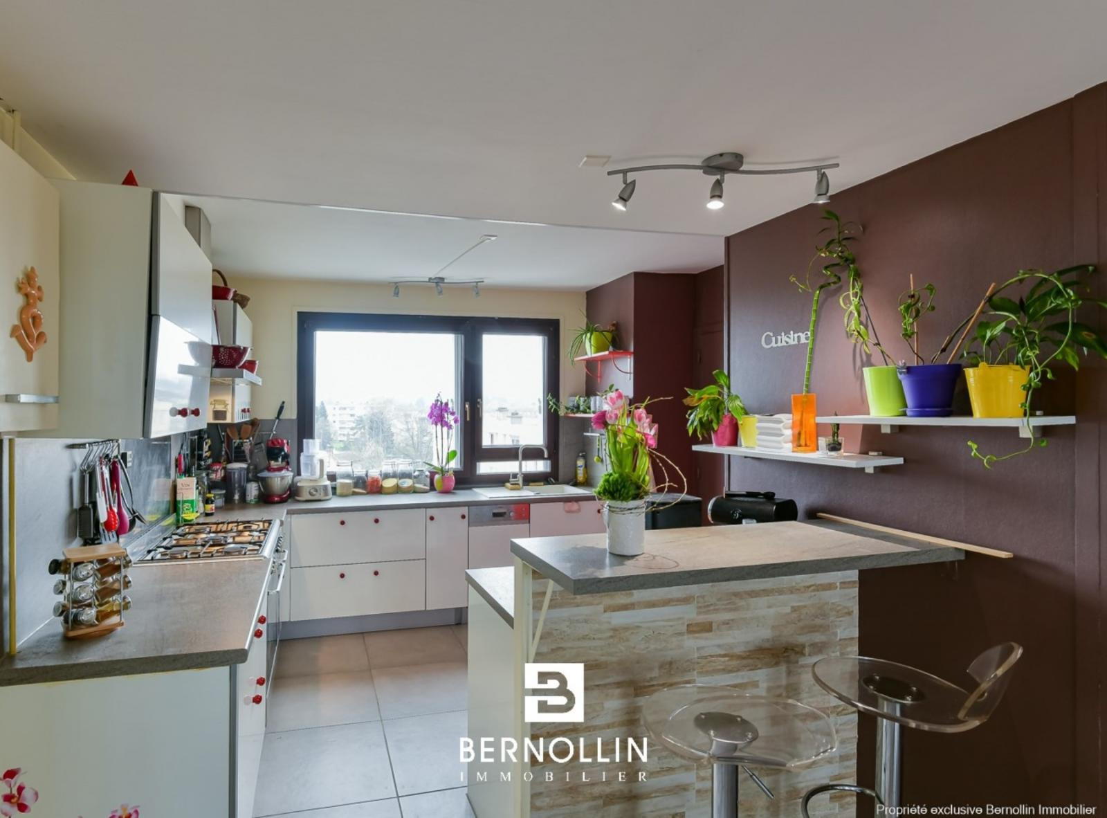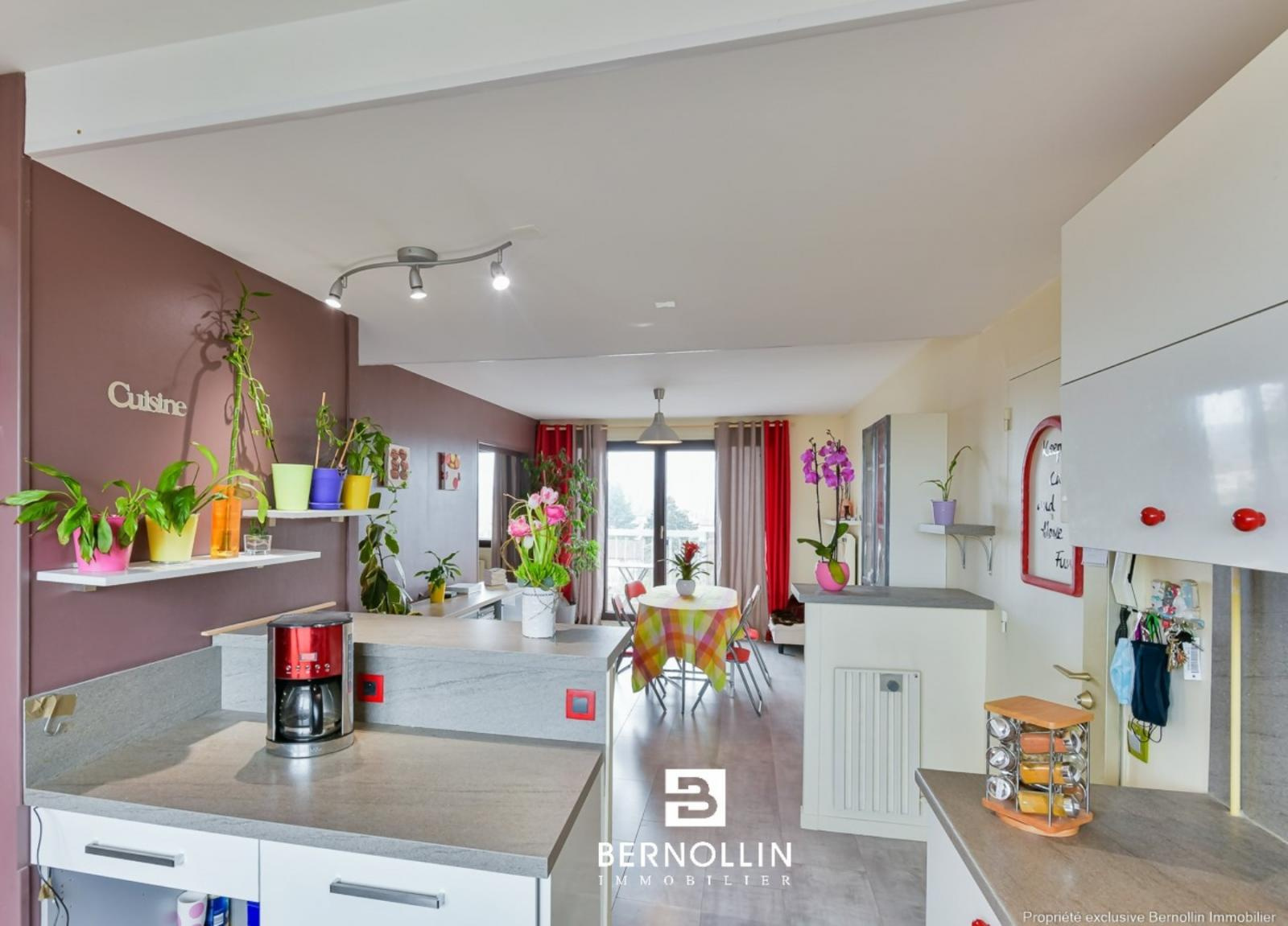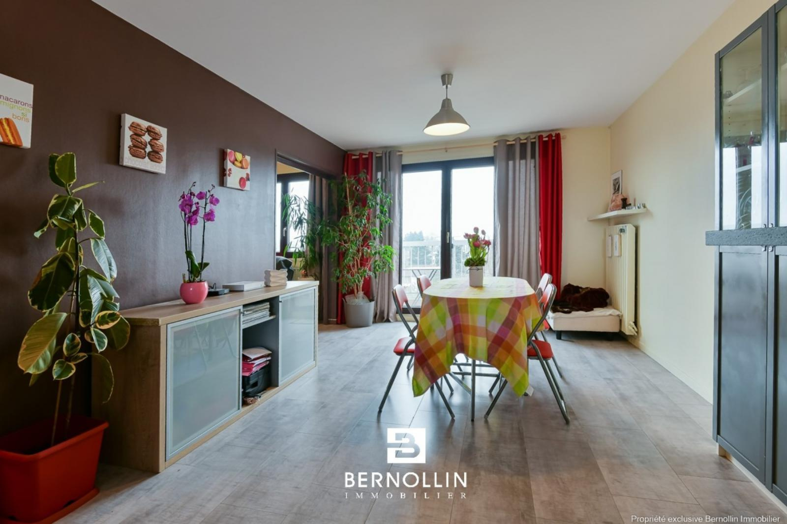 VOUS SEREZ FORCEMENT SEDUIT par ce bel appartement lumineux de 77 m² avec vue dégagée sur la ville ! A Bourg en Bresse, dans une résidence sécurisée, proche de toutes commodités, ce bel appartement au 4ème étage, vous offre une cuisine ouverte équipée, un bel espace de vie de 26 m², 2 chambres, un dressing, une buanderie, une salle de bains et un toilette. Chauffage gaz de ville, double vitrage PVC. Charges de copro : 212? par mois comprenant le chauffage, l'eau froide et l'eau chaude, le gaz, l'entretien des parties communes et le gardien. Les +++ : Garage, cave, balcon, place de parking et pas de vis à vis.