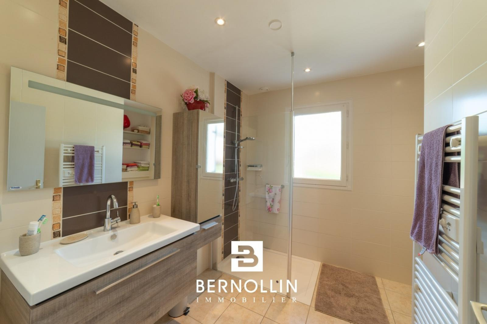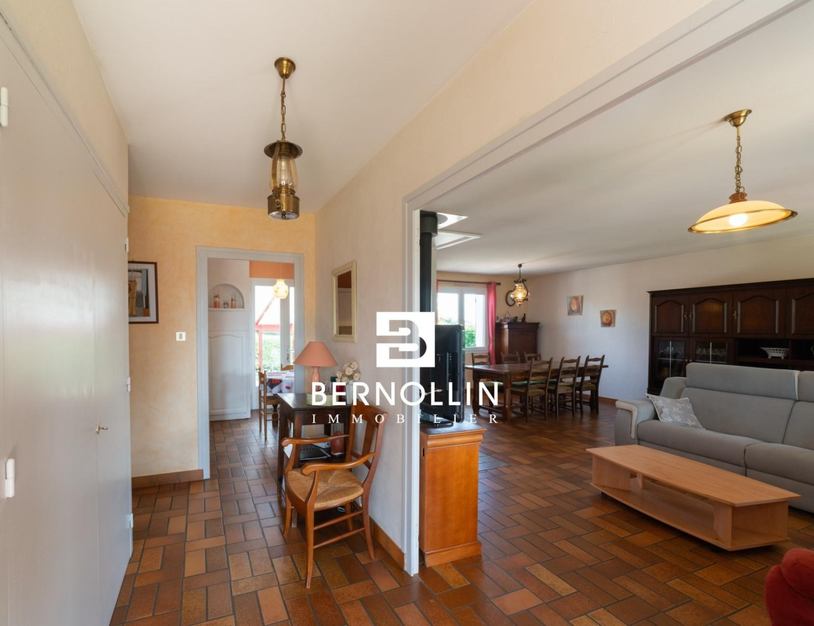 A découvrir cette villa semi-enterrée de 1980, au calme dans quartier résidentiel à MANTENAY-MONTLIN. A 35 mn de Bourg-en-Bresse et 40 mn de Mâcon, elle se compose à l'étage d'une entrée avec placard mural, cuisine ouverte sur un séjour de 36 m² équipé d'un poêle à bois, 4 chambres avec rangement, 2 salles d'eau, 2 toilettes et belle véranda de 28 m². Un vaste sous-sol abrite 2 garages (4 voitures) et 3 pièces pour atelier ou stockage. Elle bénéficie de 2 terrasses, l'une côté Est, et l'autre côté Ouest, cette dernière étant équipée pour accueillir une éventuelle piscine. Le terrain, entièrement clos, présente l'avantage d'être constructible (parcelle éventuellement détachable d'environ 1300 m²), et est joliment agrémenté de fleurs, fruitiers et cabanes de jardin. Les +++ : portails cour et garage automatisés, chauffage électrique et bois, assainissement collectif, belle vue sur les monts du Mâconnais.