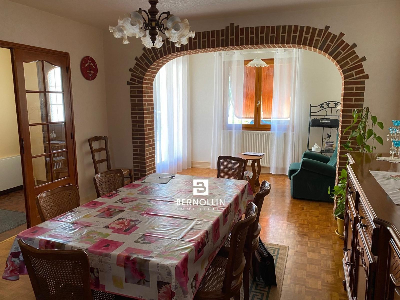 Belle villa composée d'une entrée, séjour-salon, deux chambres, salle de bains, toilette, cellier, garage. A l'extérieur, un bâtiment annexe composé de deux garages et d'une belle cave enterrée, le tout sur un terrain clos et arboré de 1373 m². Chauffage gaz de ville, tout à l'égout. Les +++ : Proche centre du village, hors lotissement, chemin piéton pour accéder au centre, très bien entretenue.