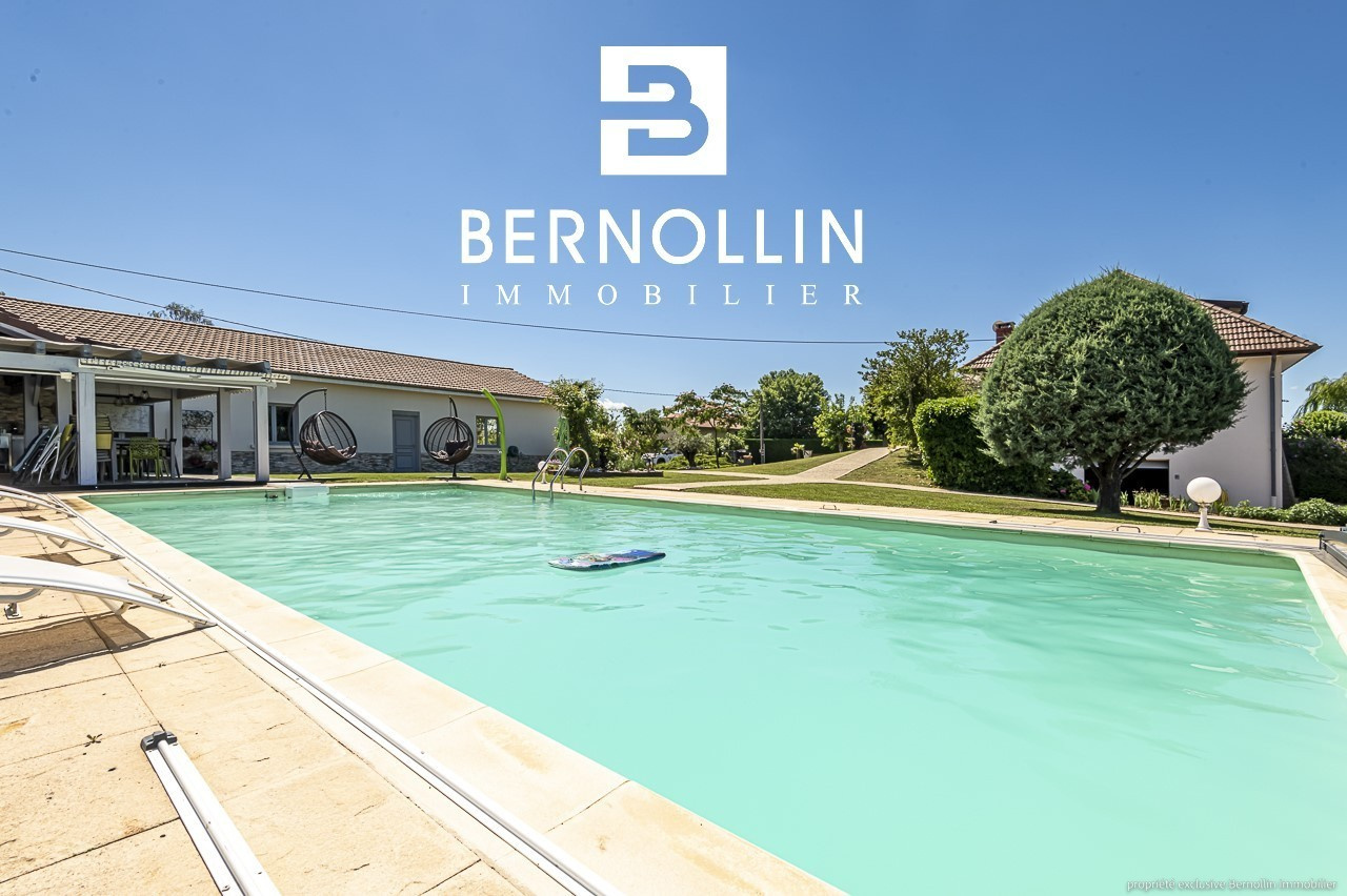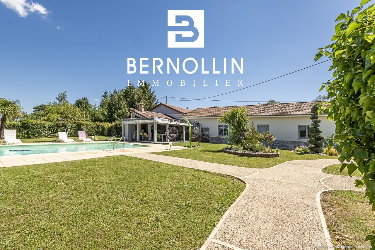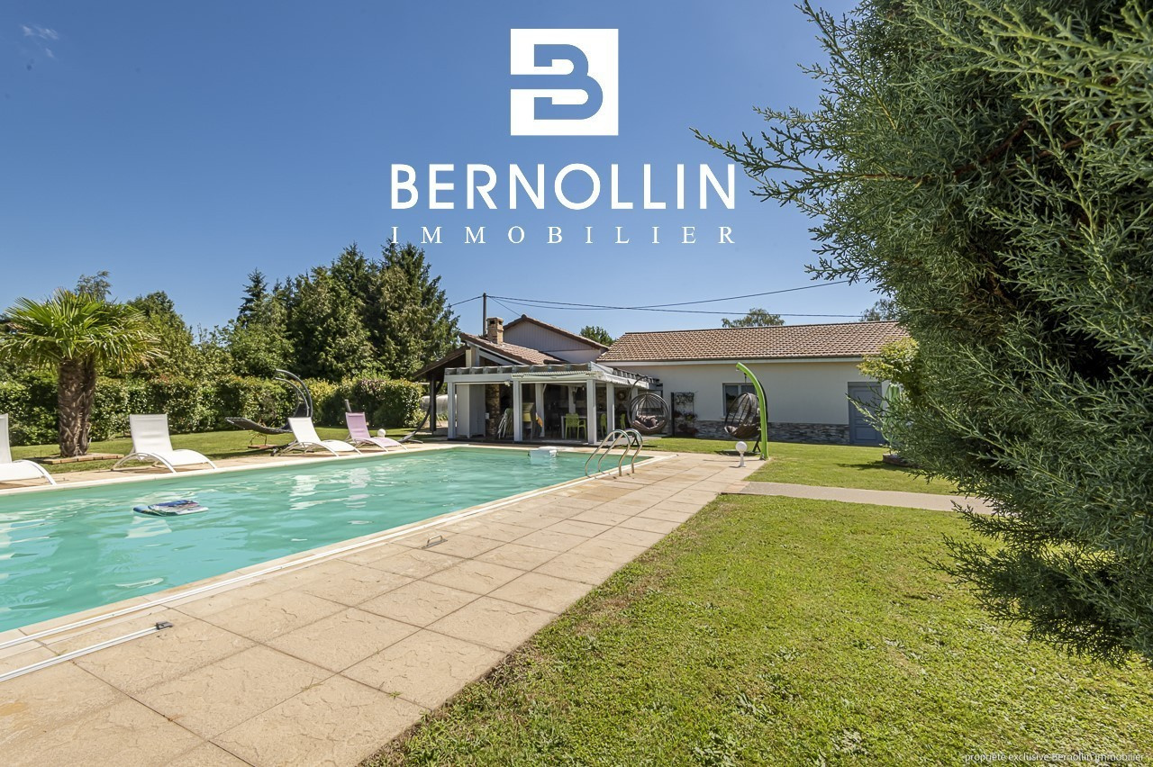 Standing et excellentes prestations pour cette très belle villa de 190 m², édifiée sur un terrain de 5370 m² arboré et clos de mur, située sur la commune dynamique et commerçante de Marboz, à 20 mn de Bourg en Bresse. Le sous sol complet comprend une buanderie, un atelier, une chaufferie, un garage et une cave. Au rez de chaussée, la cuisine équipée et son îlot donne sur le vaste séjour de 50 m², lumineux et agrémenté d'un poêle à bois, s'ouvrant sur une belle terrasse avec pergola sur laquelle il fera bon prendre ses repas. Le couloir dessert 3 coquettes chambres, une salle d'eau avec douche italienne et un toilette. A l'étage, une mezzanine, 2 chambres mansardées, une salle d'eau et un toilette. Non attenant, un grand garage sécurisé de 150 m² avec splendide cuisine d'été toute équipée agrémentée d'une grande piscine de 11x5.5 et son pool house vous offre une belle prestation complémentaire. Le tout a été construit avec des matériaux de qualité, et bénéficie de double vitrage en PVC, chauffage au fuel et poêle à bois, fosse septique, adoucisseur d'eau, 2 alarmes connectées, visiophone, portail automatique et cour pavée et bitumée. N'hésitez donc pas à venir poser vos valises ! Les +++ : aucun travaux à prévoir, aucun vis à vis, très beau terrain paysager. Prix de vente : 640 000 ? (honoraires d'agence inclus à la charge du vendeur). Date du DPE : 10/07/22, D : 119 - GES : 34 Infos auprès de Franck GUY, agent commercial RSAC N° 408 372 563, agence Bernollin Immobilier Treffort au 06 73 45 11 08 ou 04 69 19 45 69.