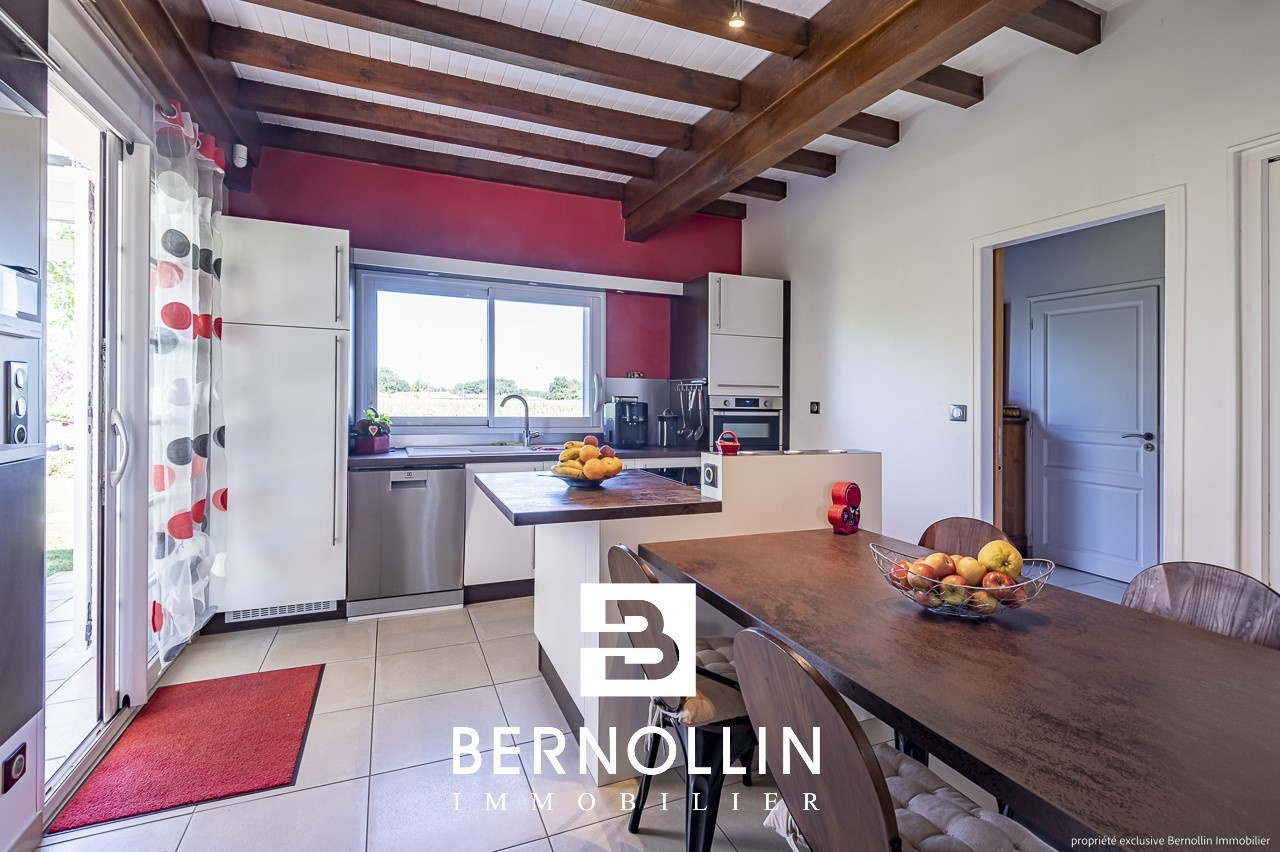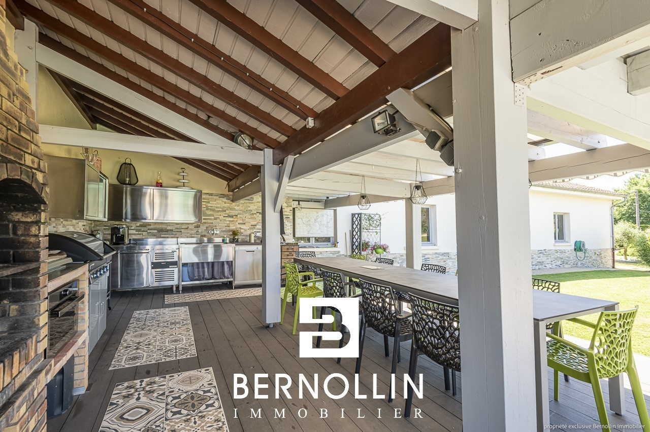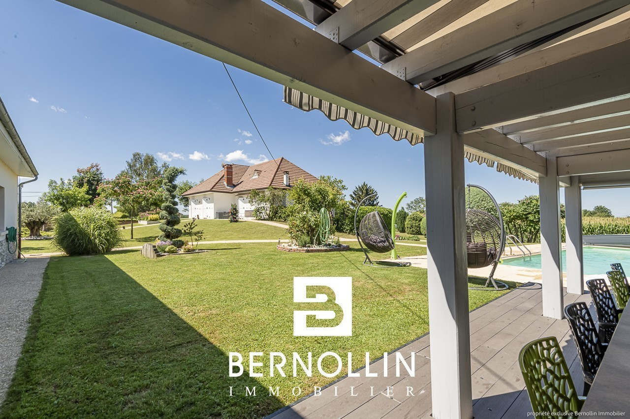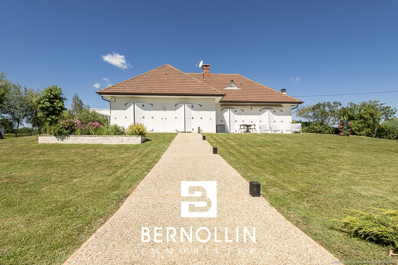 Standing et excellentes prestations pour cette très belle villa de 190 m², édifiée sur un terrain de 5370 m² arboré et clos de mur, située sur la commune dynamique et commerçante de Marboz, à 20 mn de Bourg en Bresse. Le sous sol complet comprend une buanderie, un atelier, une chaufferie, un garage et une cave. Au rez de chaussée, la cuisine équipée et son îlot donne sur le vaste séjour de 50 m², lumineux et agrémenté d'un poêle à bois, s'ouvrant sur une belle terrasse avec pergola sur laquelle il fera bon prendre ses repas. Le couloir dessert 3 coquettes chambres, une salle d'eau avec douche italienne et un toilette. A l'étage, une mezzanine, 2 chambres mansardées, une salle d'eau et un toilette. Non attenant, un grand garage sécurisé de 150 m² avec splendide cuisine d'été toute équipée agrémentée d'une grande piscine de 11x5.5 et son pool house vous offre une belle prestation complémentaire. Le tout a été construit avec des matériaux de qualité, et bénéficie de double vitrage en PVC, chauffage au fuel et poêle à bois, fosse septique, adoucisseur d'eau, 2 alarmes connectées, visiophone, portail automatique et cour pavée et bitumée. N'hésitez donc pas à venir poser vos valises ! Les +++ : aucun travaux à prévoir, aucun vis à vis, très beau terrain paysager. Prix de vente : 640 000 ? (honoraires d'agence inclus à la charge du vendeur). Date du DPE : 10/07/22, D : 119 - GES : 34 Infos auprès de Franck GUY, agent commercial RSAC N° 408 372 563, agence Bernollin Immobilier Treffort au 06 73 45 11 08 ou 04 69 19 45 69.