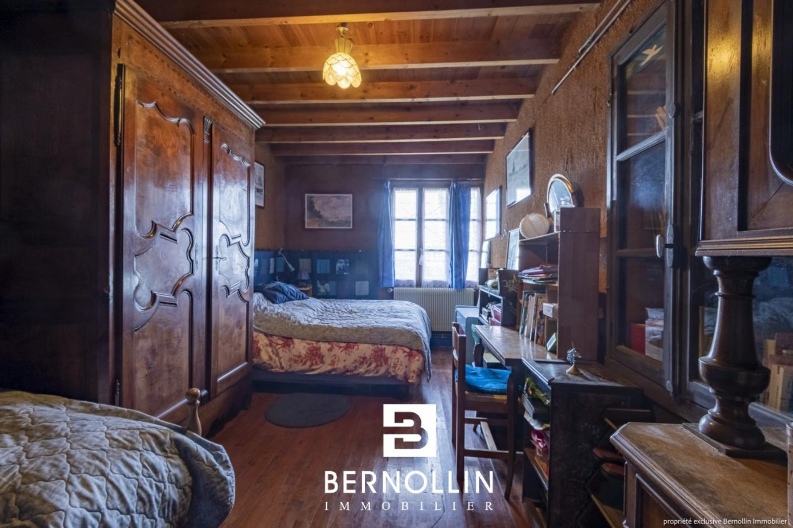 A découvrir sans attendre cette ferme bressane typique, composée au rez-de-chaussée d'un grand séjour avec cheminée, cuisine, salle de bains et salle d'eau, 4 chambres et buanderie, et à l'étage de 2 chambres, un bureau et point d'eau. La plupart des pièces sont vastes et leur agencement permet d'imaginer aisément la création de 2 logements séparés. Un garage, des parties atelier, terrasse et puit fonctionnel agrémentent le tout. Le vaste terrain est joliment arboré, plat et piscinable. Assainissement : 2 fosses septiques à renouveler. Chauffage : fuel, cheminée et gaz citerne pour la production d'eau chaude. Les +++ : ferme avec cachet, quartier calme et campagne (aucun vis à vis), belles superficies et vaste terrain.