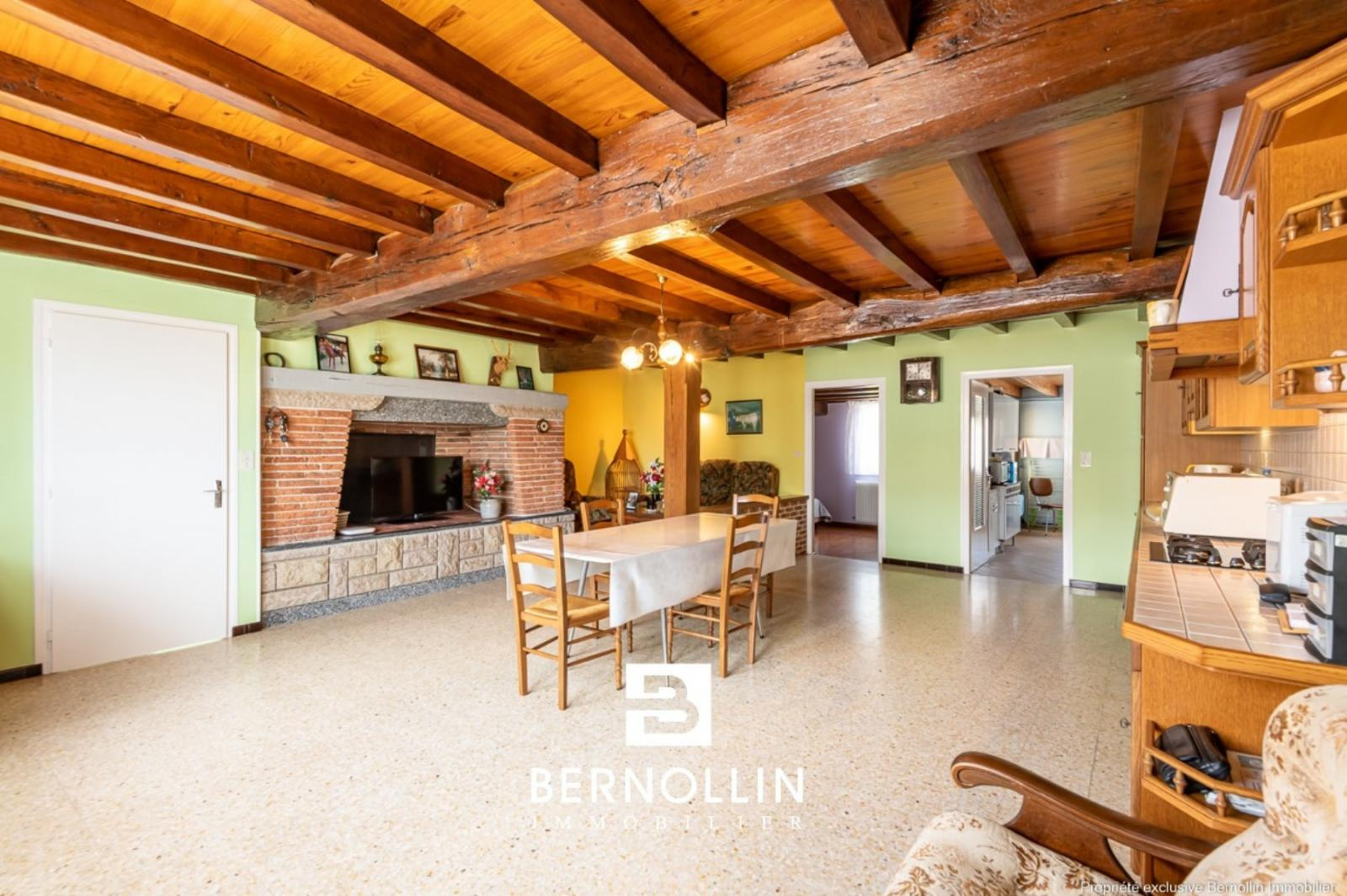 Idéal pour élevage équin, amoureux de la nature et/ou aménagement chambres d'hôtes, grande et belle ferme entretenue, composée d'une entrée, vaste séjour de 49 m² avec cuisine ouverte équipée et cheminée, beau salon, 3 grandes chambres, salle d'eau, toilette, buanderie et sa kitchenette, cave enterrée, chaufferie, atelier, grange et écuries. Un second bâtiment de 320 m² à l'Ouest comprend 2 écuries, une grange et une pièce impressionnante par sa profondeur. Le dernier corps de ferme côté Est, est doté d'un four à pain fonctionnel et d'un bucher. Chauffage fuel et bois, double vitrage, assainissement individuel à renouveler. Toiture en partie rénovée. Situation splendide en pleine campagne et au départ de nombreux sentiers de randonnée. Les +++ : domaine entretenu, charme indéniable, 9 Ha de terrains agricoles, vastes dépendances, potentiel supplémentaire aménageable.