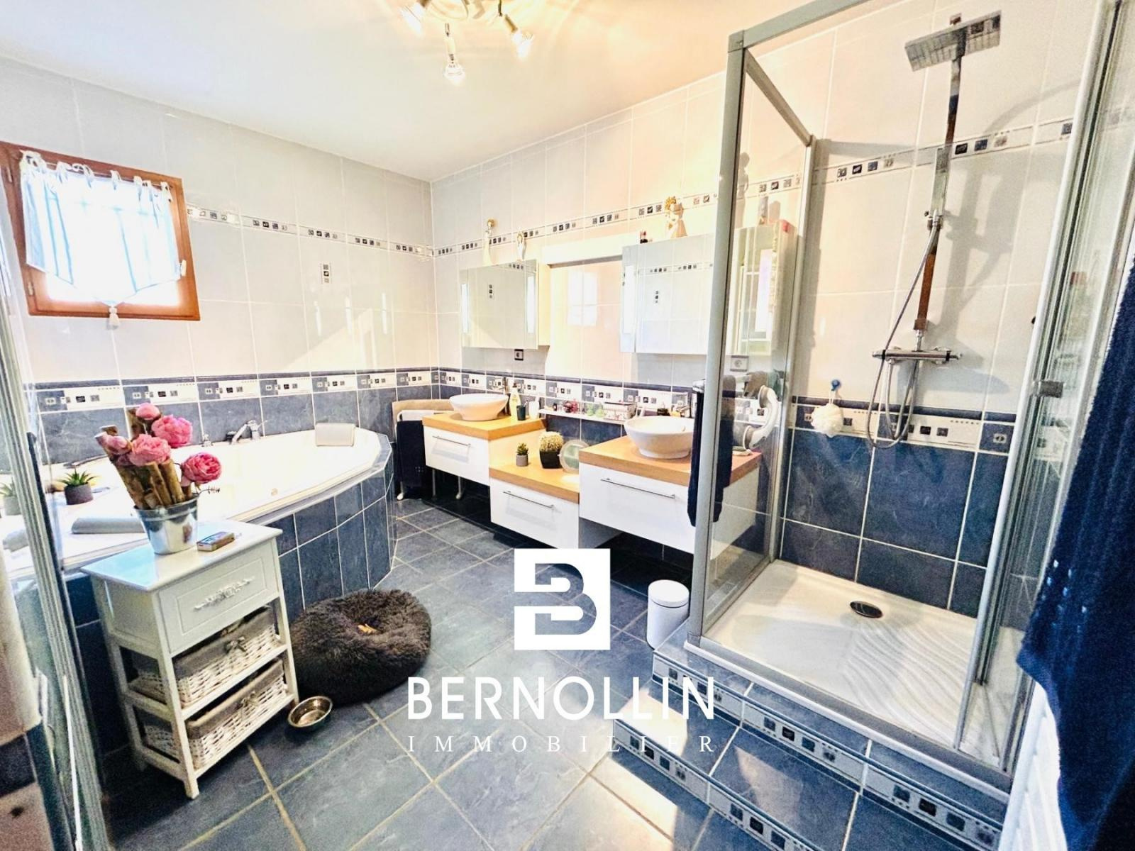 Venez découvrir cette villa lumineuse de plain pied des années 2000 de 180 m² qui vous séduira par son grand espace de vie composé d?une cuisine équipée ouverte sur le séjour, ses 3 chambres, sa salle d?eau avec une baignoire balnéothérapie, son toilette indépendant et sa buanderie. Le grand garage double carrelé avec son espace cuisine d?été saura vous séduire et offrira un grand espace de stockage. La villa est construite sur un grand terrain de 1000 m² entièrement clos et arboré avec cour bitumée. Elle possède également un portail électrique, une pergola bioclimatique, une alarme et deux terrasses carrelées. Ce bien est équipé d'huisserie double vitrage, d'une climatisation réversible , d?une cheminée à diffusion, de radiateurs électriques, et d?un adoucisseur d?eau. Elle est également raccordée au tout à l?égout. Située dans le hameau d?Allement, dans un environnement calme et familiale, vous serez séduit par la tranquillité de l?environnement. Les +++ : à 15 min à pied de l?île chambod ! DPE : C/171, GES : A/5, Diag établi le 01/02/2024. Montant estimé des dépenses annuelles d'énergie pour un usage standard : entre 1150 ? et 1630 ?. Pour plus d'informations, téléphoner à Laurie MATIS (agent commercial RSAC 888 839 255) au 06 46 10 72 16. Agence Bernollin Immobilier Treffort au 04 69 19 45 69. Prix : 285 000 ? / Référence annonce : BAI01450. Honoraires à la charge du vendeur.