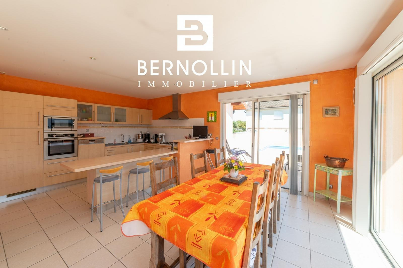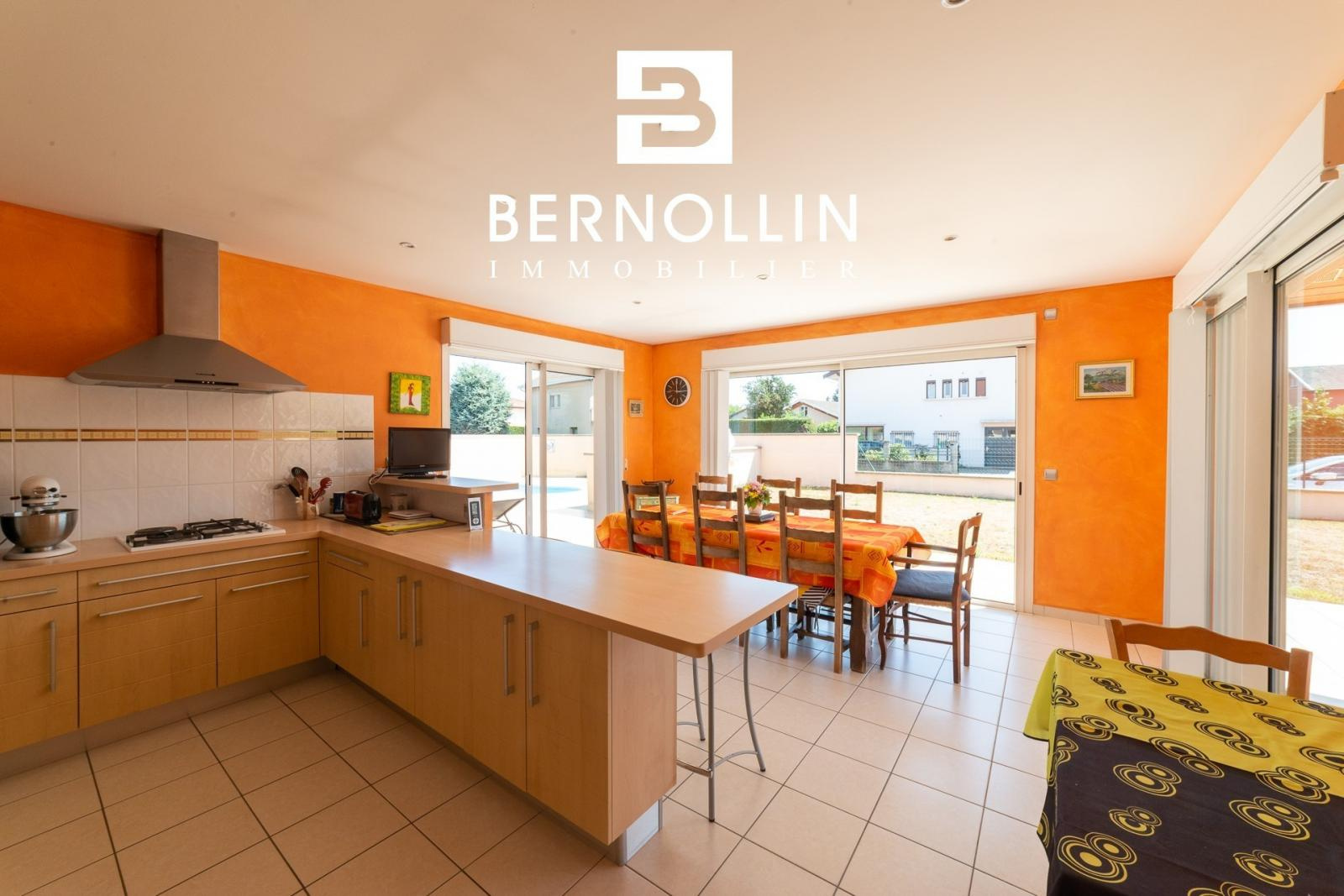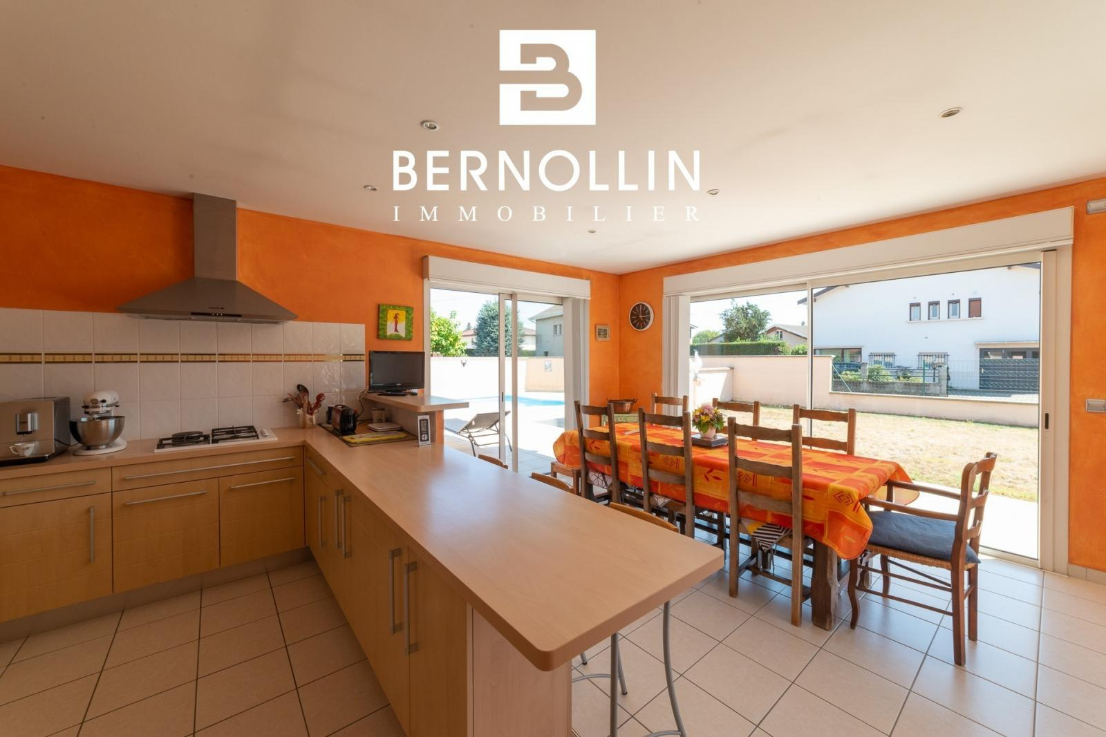 Bien située dans un quartier résidentiel et bien conçue, cette jolie villa de plain pied offre un environnement agréable et de belles prestations. Elle se compose d'une entrée, cuisine indépendante équipée avec séjour et baies vitrées donnant sur la terrasse, salon indépendant de 20.55 m², bureau, buanderie et toilette indépendant pour la partie jour. Un dégagement avec placards dessert 3 chambres dont 2 avec placards, une salle de bains avec douche et double vasque et une salle d'eau pour la partie nuit. La villa est équipée d'un grand garage de 56.35 m² et d'une belle piscine (8x4) avec liner neuf. Tout à l'égout, chauffage au sol et poêle à bois, double vitrage PVC. L'ensemble édifié en 2004 sur un terrain clos de 822 m². Les +++ : combles aménageables, volets roulants, porte de garage automatique, portail, situation idéale. Pas de travaux à prévoir. Prix de vente : 339 000 ? (honoraires d'agence inclus à la charge du vendeur) - DPE : D / GES : B. Montant estimé des dépenses annuelles d'énergie pour un usage standard : entre 1630 et 2260 ?. (Année de référence 2021) Pour plus d'informations, téléphonez à Laurie GEOFFRAY SCHILLINGER (agent commercial RSAC n°883 802 340), BERNOLLIN IMMOBILIER au 06 26 91 47 08 ou 04 27 53 46 50. Référence annonce FRA01960. Date du DPE : 16/08/2022.