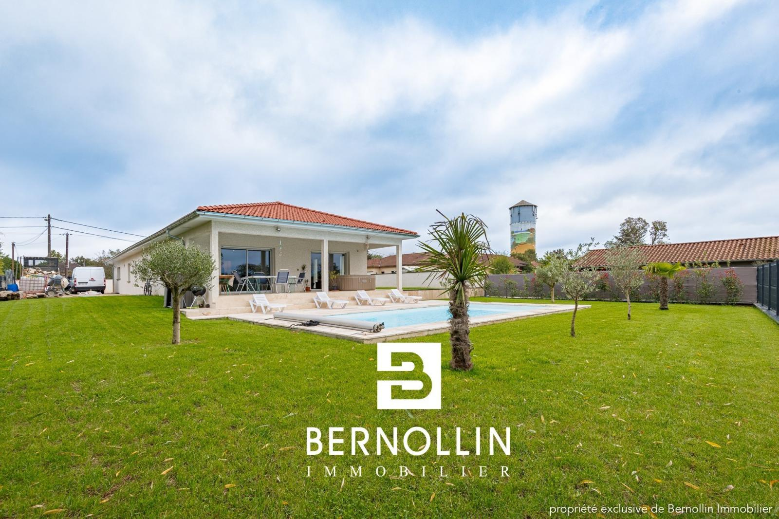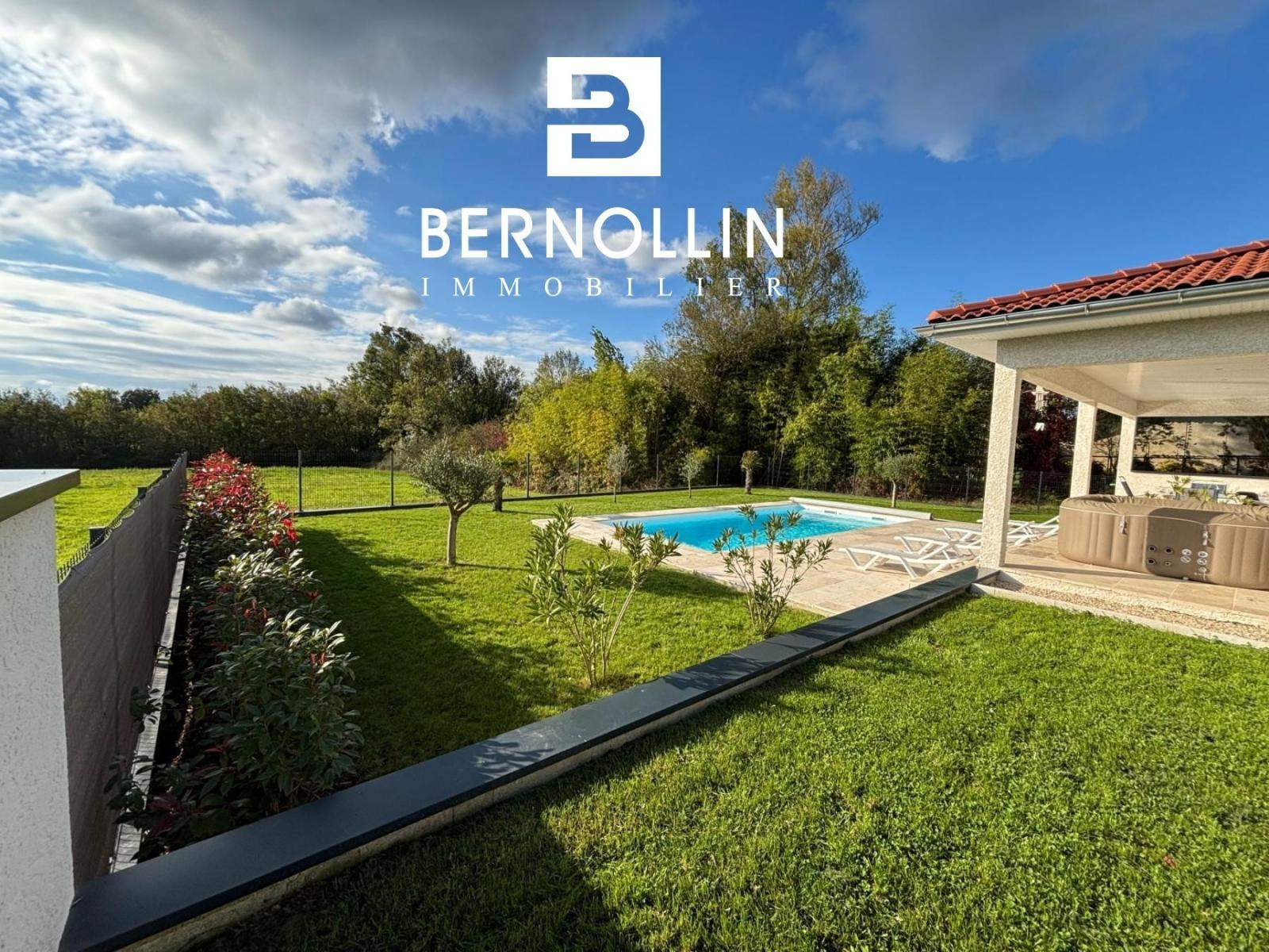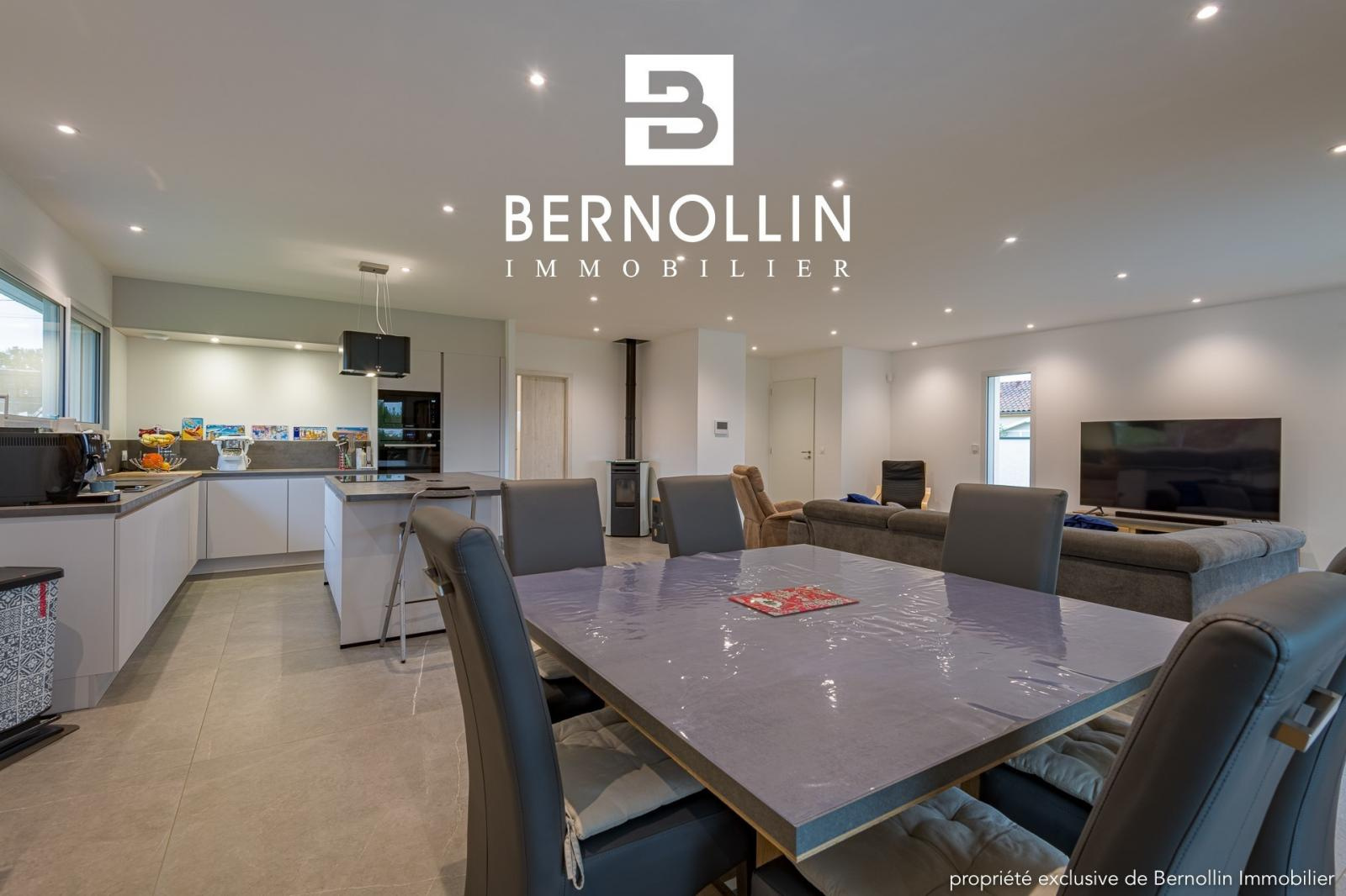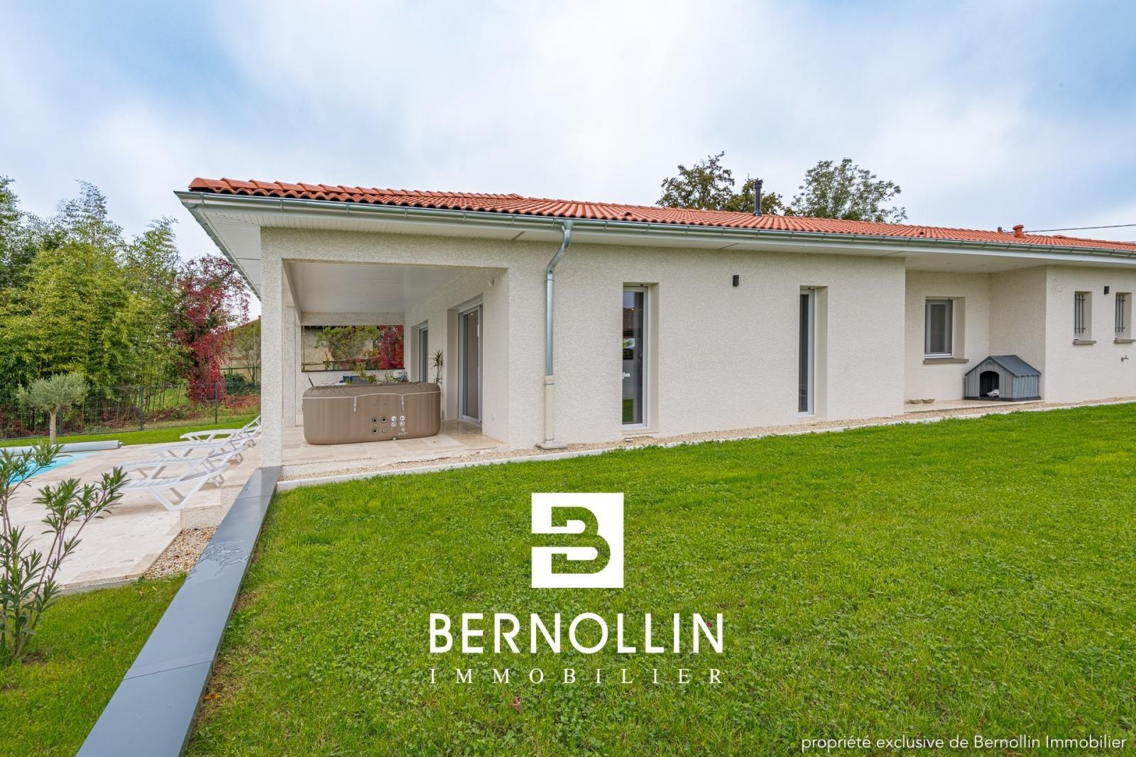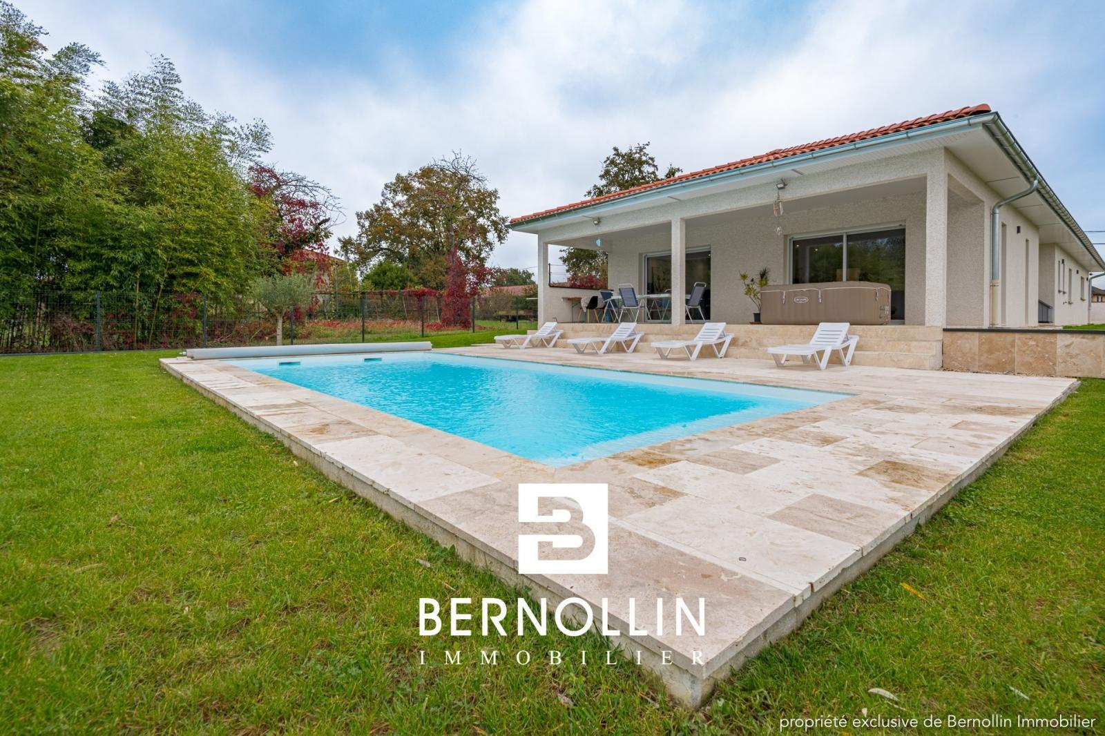 Vous serez séduits par cette magnifique maison contemporaine de plain-pied de près de 150 m² habitable sur 1300 m² de terrain avec piscine. Située à seulement 10 minutes de Bourg en Bresse, sur la commune de Polliat, cette villa à été bâtie en 2022 au c?ur d'un quartier calme et sans vis à vis. Elle se compose d'une entrée donnant sur un vaste séjour lumineux avec cuisine équipée ouverte, ouvrant à son tour sur une magnifique terrasse entièrement couverte et sur la piscine. Coté nuit, vous apprécierez les 4 belles chambres dont une suite parentale avec salle d'eau et dressing, une salle de bains avec douche, un toilette indépendant et un cellier-buanderie. Enfin, un grand double garage isolé et carrelé de 66 m² complète ce bien. Cette maison aux prestations et matériaux de qualité vous séduira également par sa luminosité et son confort. Son jardin est joliment arboré et entièrement clos avec portail électrique. Terrasse en pierre de travertin. Les +++ : Construite sur un vide sanitaire complet, chauffage poêle à granulés, ballon thermodynamique, système d'alarme, visiophone, borne de recharge pour voiture électrique, fibre optique, assainissement individuelle par microstation. Pour plus d'informations, téléphoner à Laurie GEOFFRAY-SCHILLINGER au 06 26 91 47 08 (agent commercial RSAC 883 802 340) ou à l'agence Bernollin Immobilier Attignat au 04 27 53 46 50. Prix 490 000 ? / Réf annonce : SPR01310. DPE : A/64, GES : A/2. Diagnostic établi le 24/10/2022. Montant estimé des dépenses annuelles d'énergie pour un usage standard : entre 617 ? et 835 ?. Honoraires à la charge du vendeur.