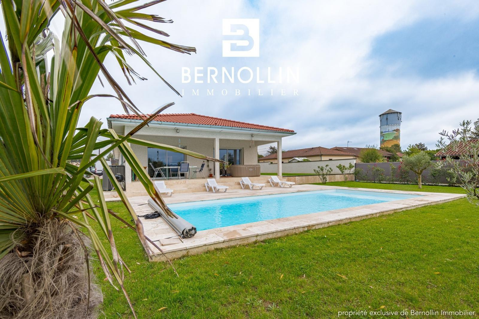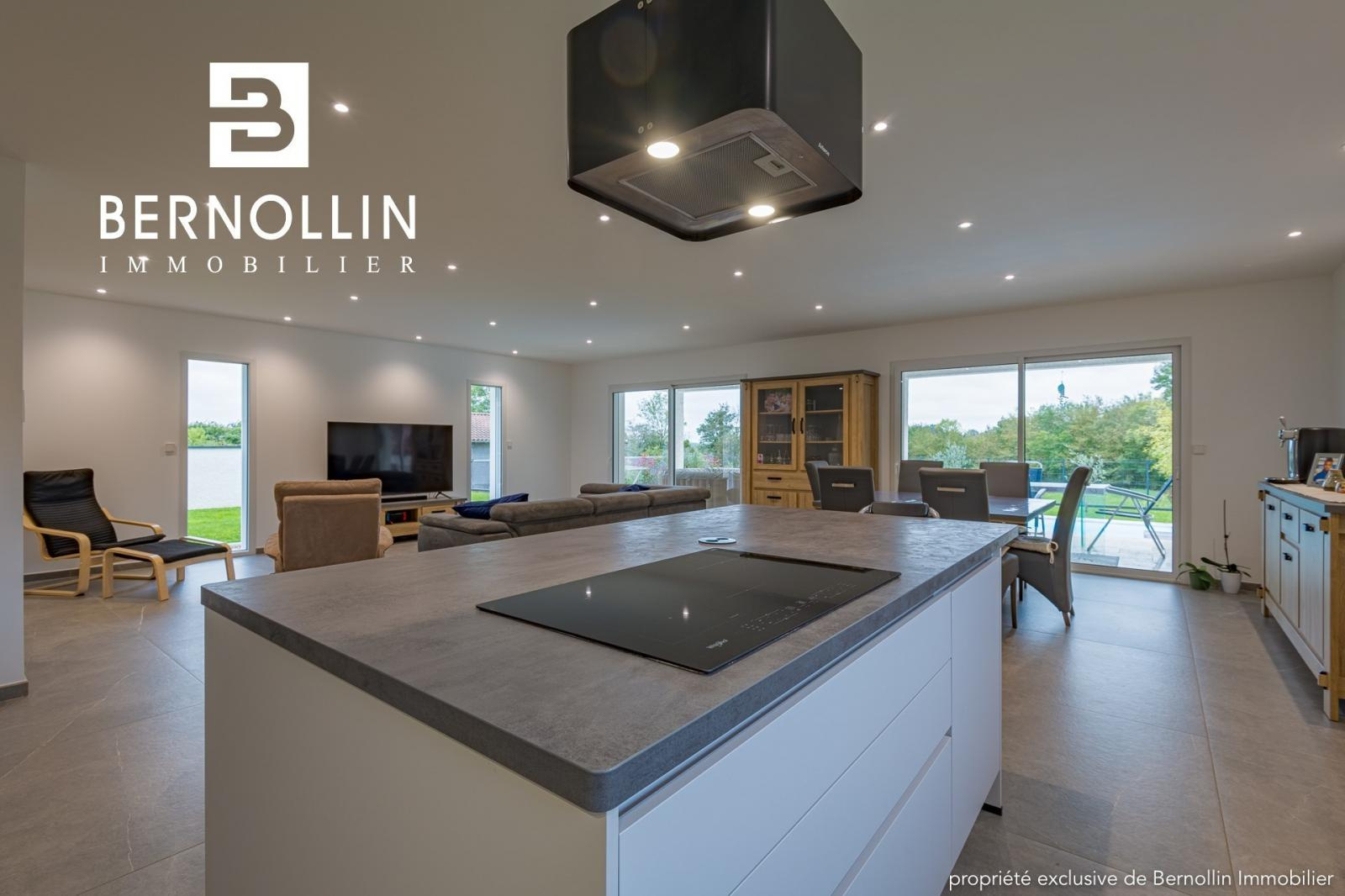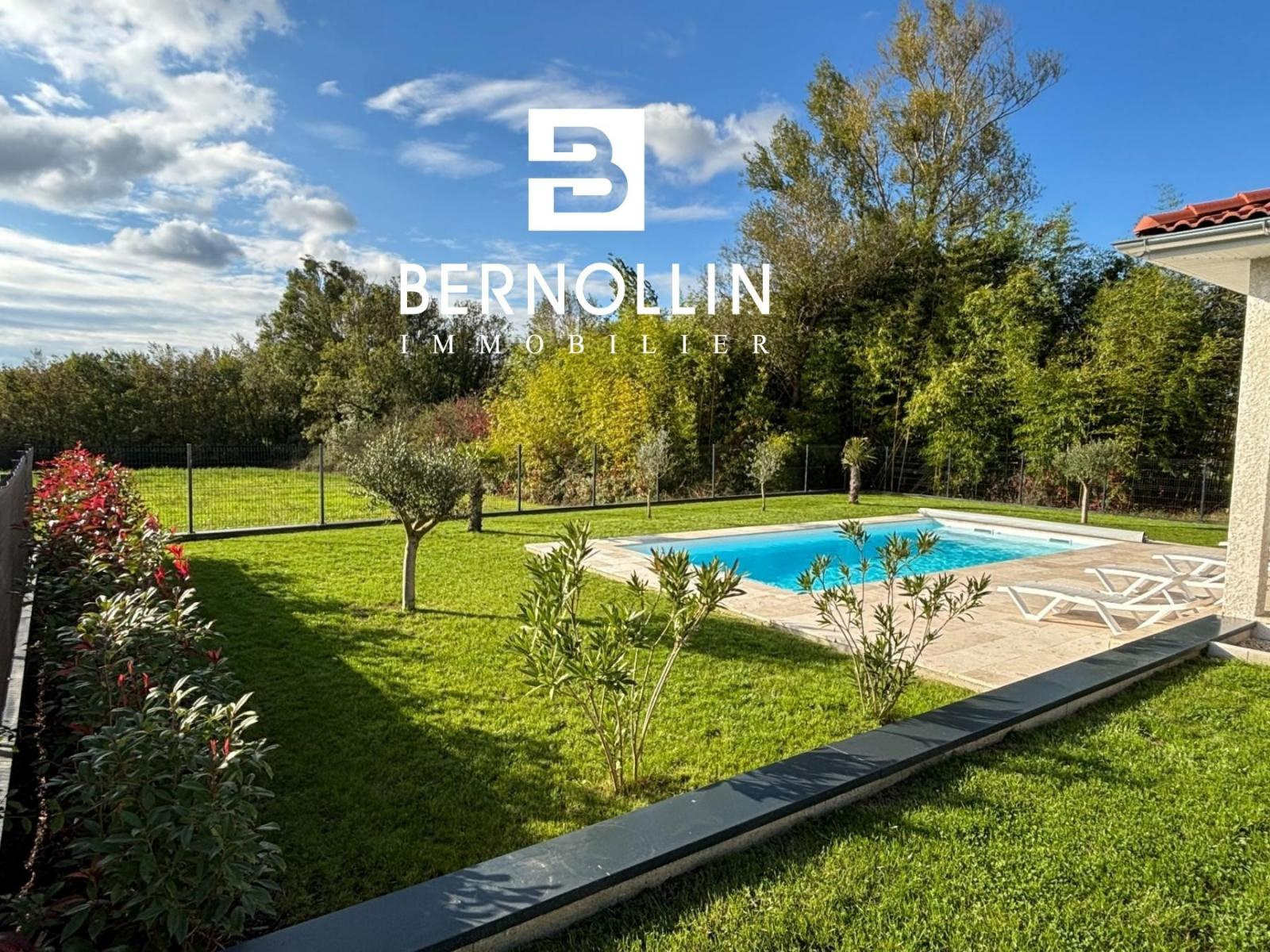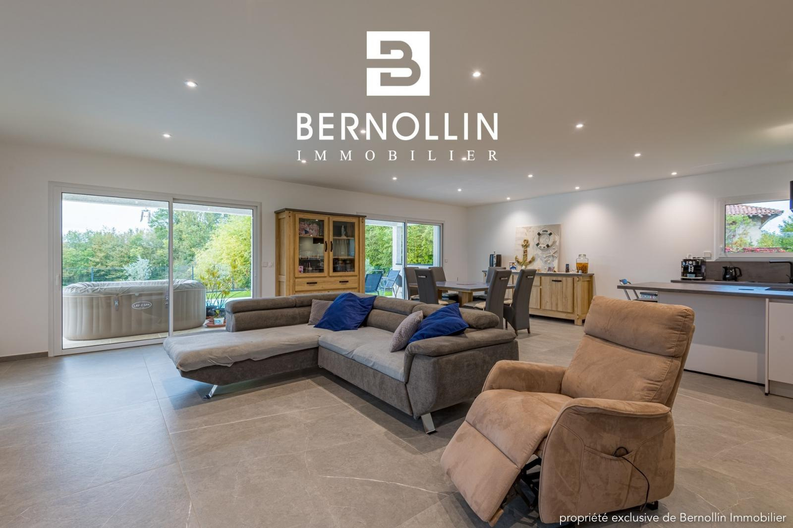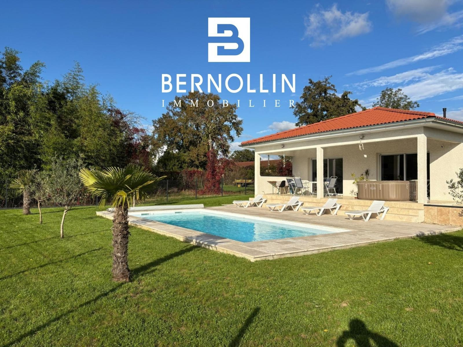 Vous serez séduits par cette magnifique maison contemporaine de plain-pied de près de 150 m² habitable sur 1300 m² de terrain avec piscine. Située à seulement 10 minutes de Bourg en Bresse, sur la commune de Polliat, cette villa à été bâtie en 2022 au c?ur d'un quartier calme et sans vis à vis. Elle se compose d'une entrée donnant sur un vaste séjour lumineux avec cuisine équipée ouverte, ouvrant à son tour sur une magnifique terrasse entièrement couverte et sur la piscine. Coté nuit, vous apprécierez les 4 belles chambres dont une suite parentale avec salle d'eau et dressing, une salle de bains avec douche, un toilette indépendant et un cellier-buanderie. Enfin, un grand double garage isolé et carrelé de 66 m² complète ce bien. Cette maison aux prestations et matériaux de qualité vous séduira également par sa luminosité et son confort. Son jardin est joliment arboré et entièrement clos avec portail électrique. Terrasse en pierre de travertin. Les +++ : Construite sur un vide sanitaire complet, chauffage poêle à granulés, ballon thermodynamique, système d'alarme, visiophone, borne de recharge pour voiture électrique, fibre optique, assainissement individuelle par microstation. Pour plus d'informations, téléphoner à Laurie GEOFFRAY-SCHILLINGER au 06 26 91 47 08 (agent commercial RSAC 883 802 340) ou à l'agence Bernollin Immobilier Attignat au 04 27 53 46 50. Prix 490 000 ? / Réf annonce : SPR01310. DPE : A/64, GES : A/2. Diagnostic établi le 24/10/2022. Montant estimé des dépenses annuelles d'énergie pour un usage standard : entre 617 ? et 835 ?. Honoraires à la charge du vendeur.
