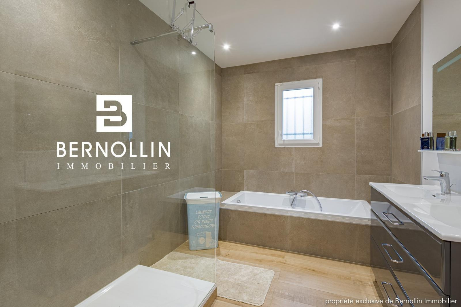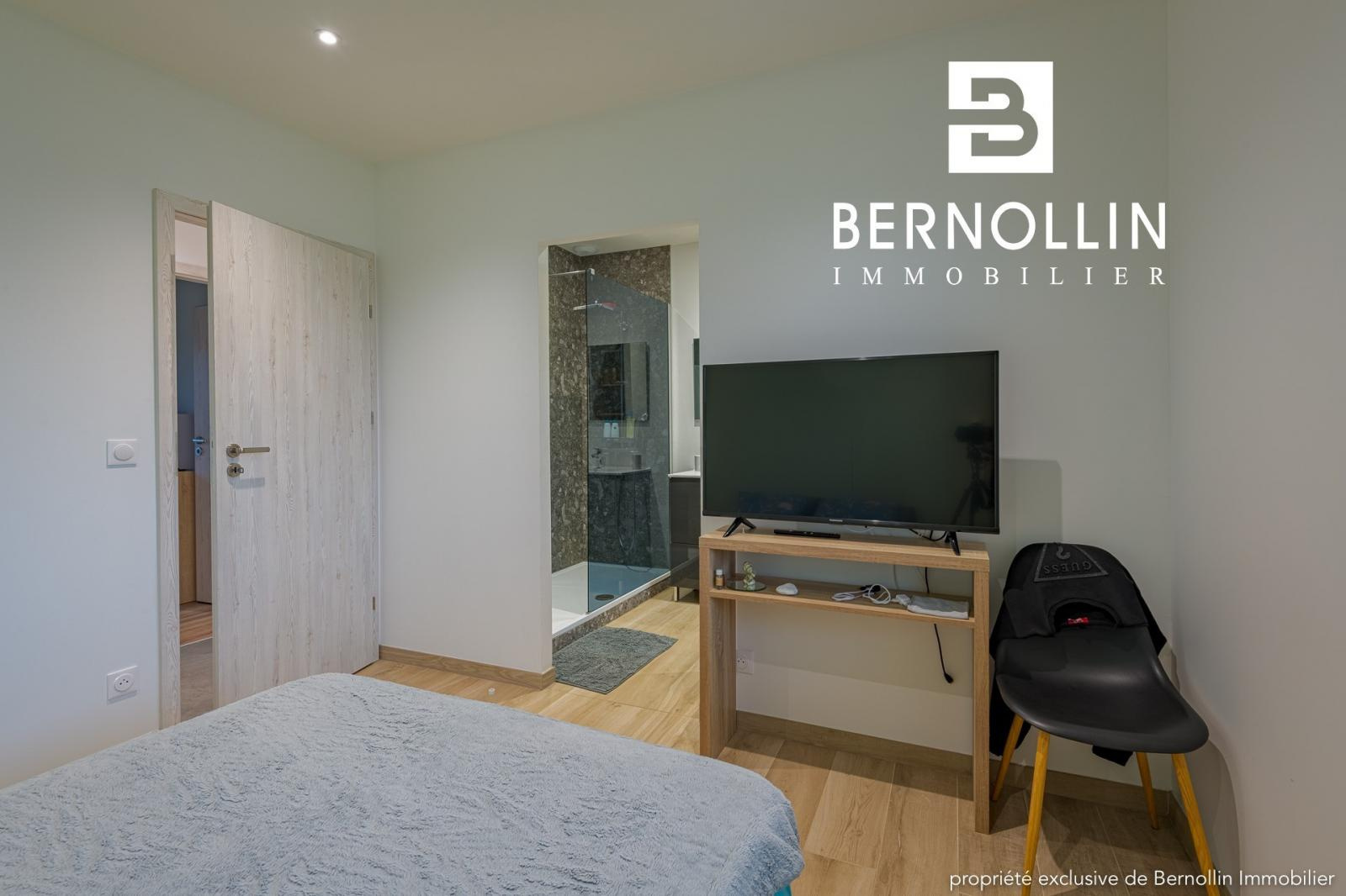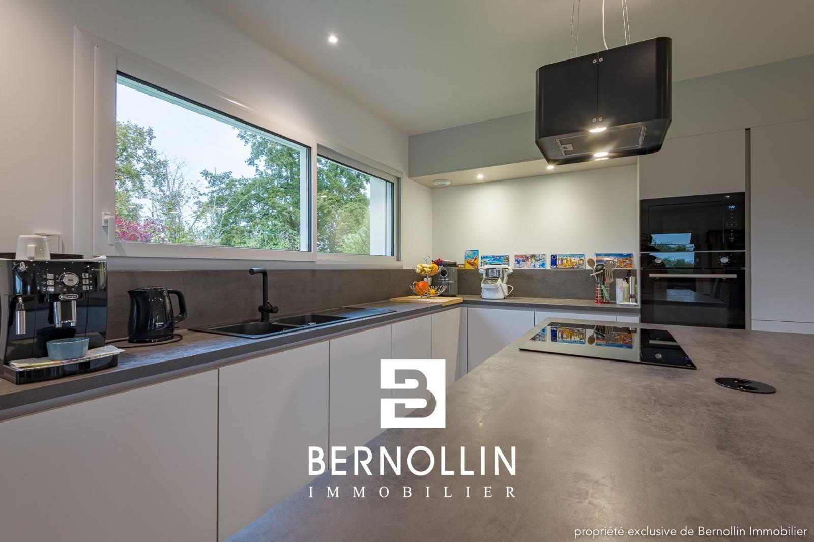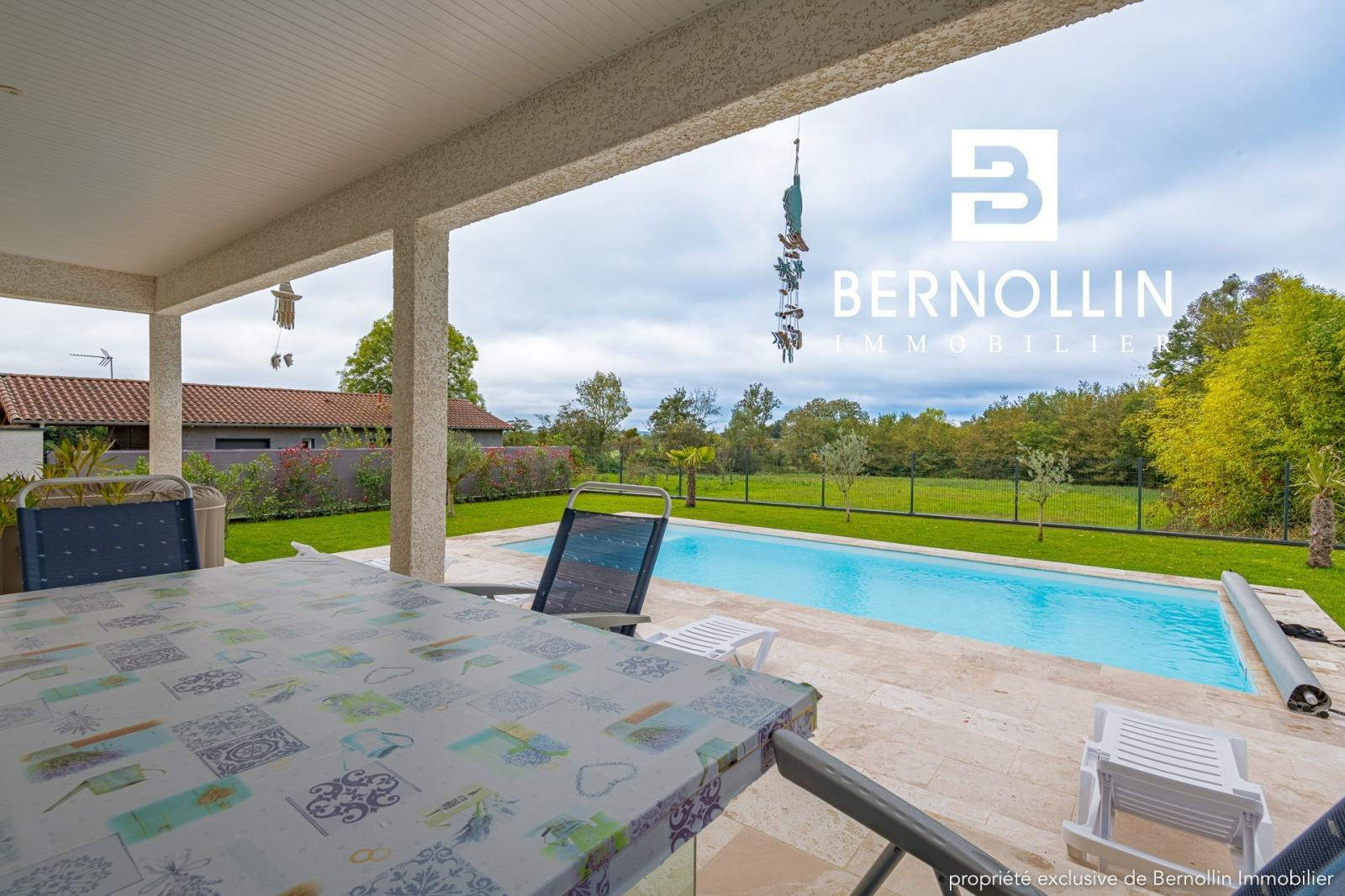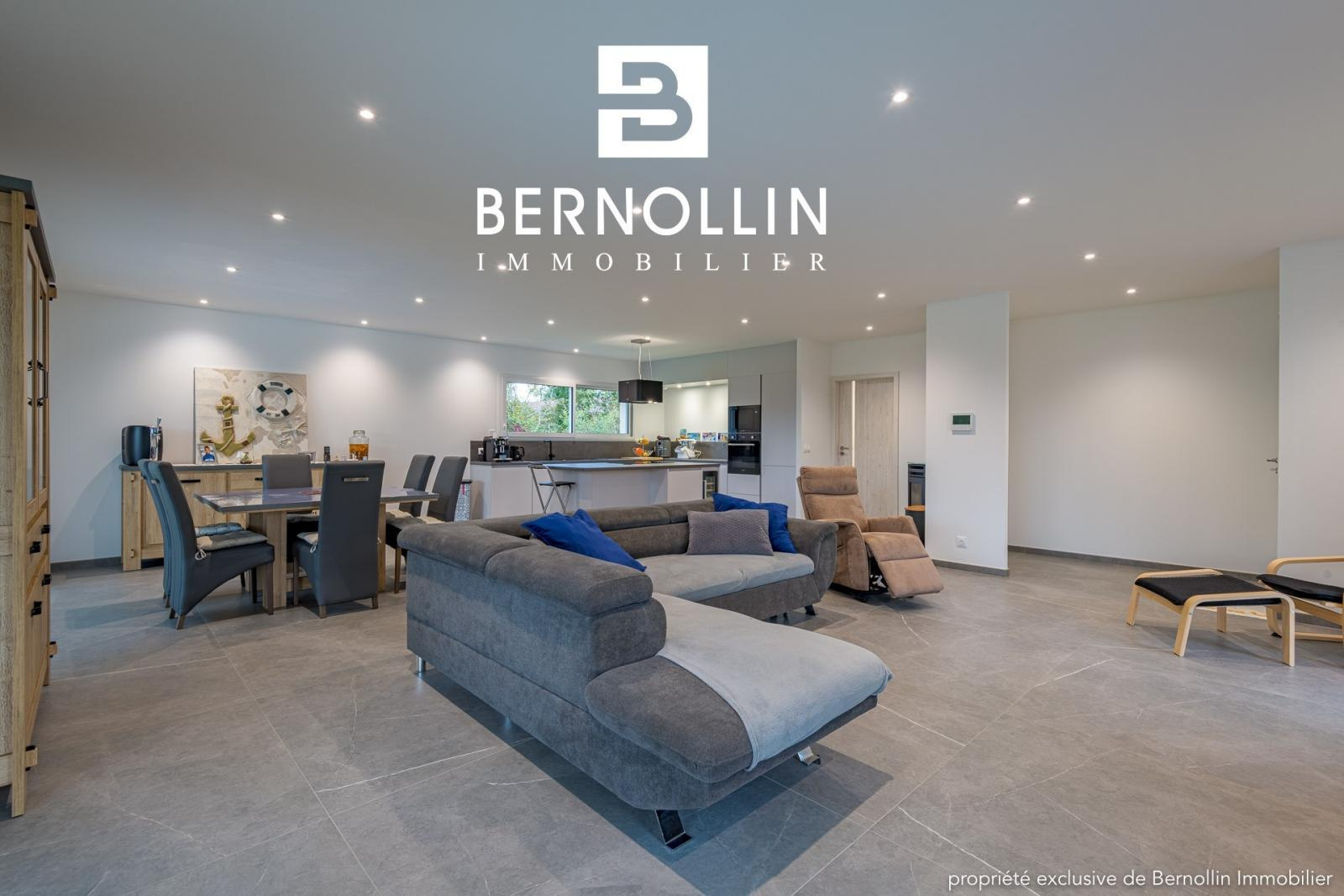 Vous serez séduits par cette magnifique maison contemporaine de plain-pied de près de 150 m² habitable sur 1300 m² de terrain avec piscine. Située à seulement 10 minutes de Bourg en Bresse, sur la commune de Polliat, cette villa à été bâtie en 2022 au c?ur d'un quartier calme et sans vis à vis. Elle se compose d'une entrée donnant sur un vaste séjour lumineux avec cuisine équipée ouverte, ouvrant à son tour sur une magnifique terrasse entièrement couverte et sur la piscine. Coté nuit, vous apprécierez les 4 belles chambres dont une suite parentale avec salle d'eau et dressing, une salle de bains avec douche, un toilette indépendant et un cellier-buanderie. Enfin, un grand double garage isolé et carrelé de 66 m² complète ce bien. Cette maison aux prestations et matériaux de qualité vous séduira également par sa luminosité et son confort. Son jardin est joliment arboré et entièrement clos avec portail électrique. Terrasse en pierre de travertin. Les +++ : Construite sur un vide sanitaire complet, chauffage poêle à granulés, ballon thermodynamique, système d'alarme, visiophone, borne de recharge pour voiture électrique, fibre optique, assainissement individuelle par microstation. Pour plus d'informations, téléphoner à Laurie GEOFFRAY-SCHILLINGER au 06 26 91 47 08 (agent commercial RSAC 883 802 340) ou à l'agence Bernollin Immobilier Attignat au 04 27 53 46 50. Prix 490 000 ? / Réf annonce : SPR01310. DPE : A/64, GES : A/2. Diagnostic établi le 24/10/2022. Montant estimé des dépenses annuelles d'énergie pour un usage standard : entre 617 ? et 835 ?. Honoraires à la charge du vendeur.