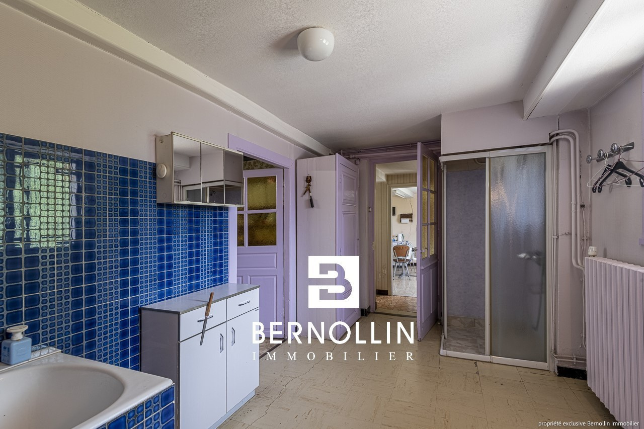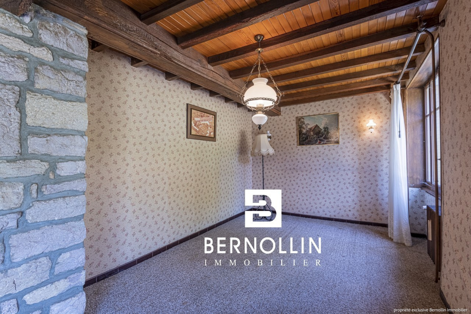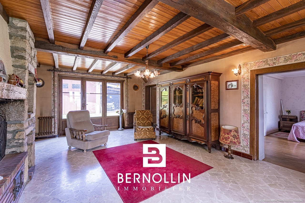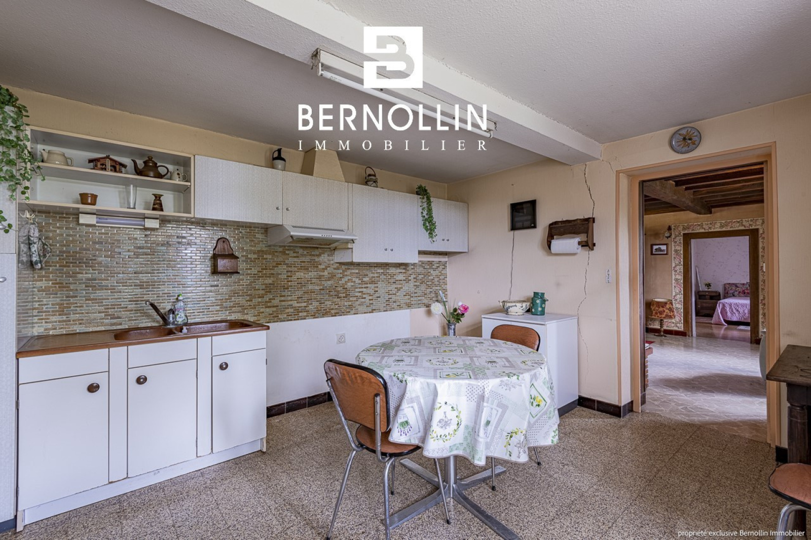 A Beaupont, à 17 minutes de Montrevel en Bresse et 31 minutes de Bourg en Bresse, cette grande ferme typique de plain pied à rénover de 124 m² se compose d'un hall d'entrée, une cuisine équipée indépendante, une salle à manger-salon et sa cheminée bois avec poutres apparentes, 3 chambres, une salle de bains avec douche, 2 toilettes et une cave. A l'étage, un grenier de 80 m². Dépendances attenantes composées d'une chaufferie de 23 m², une dépendance côté Ouest de 32 m² une forge de 93 m² et un hangar côté Sud de 180 m² avec porte coulissante. Dépendances non attenantes composées d'un garage de 20 m², le tout sur 4560 m² de terrain arboré avec puits agrémenté d'une marre. Tout à l'égout, chauffage fuel et cheminée bois, simple vitrage bois. Les +++ : très belle situation (1 minute à pied du centre de Beaupont), potentiel aménageable, vaste terrain ! DPE : G/846, GES: G/127, Diag établi le 21/06/2023. Montant estimé des dépenses annuelles d'énergie pour un usage standard : entre 5140 et 7030 ?. Pour plus d'informations, téléphoner à Franck GUY (agent commercial RSAC 408 372 563) au 06 73 45 11 08. Agence Bernollin Immobilier Treffort. Prix : 189 000? / Référence annonce : GAMAI01270. Honoraires à la charge du vendeur. A BEAUPONT 01270, ferme comprenant un hall d'entrée, un salon ou chambre, une salle de bains, un wc, une cuisine équipée indépendante, une salle à manger avec salon, deux chambres,