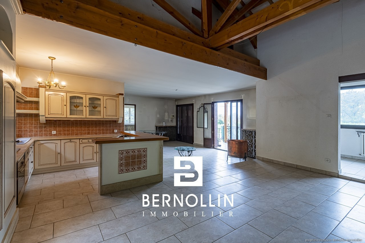 A la recherche de votre havre de paix à rénover, cette maison n'attend plus que vous ! Située en pleine nature, celle-ci vous offre une superficie de 203 m². Elle se compose au rez de chaussée d'un sous sol complet avec une chambre, une pièce à aménager, un toilette, un cellier et la chaufferie. Au premier niveau, cuisine équipée ouverte sur une grande pièce à vivre avec une belle hauteur de plafond et une cheminée, un salon, deux chambres, un toilette, une salle de bains, une grande terrasse côté Ouest et Sud et une terrasse côté Est. Le tout édifié sur un terrain clos et arboré de 7075 m² agrémenté d'une piscine avec pool house et un petit studio indépendant, dans le parc une dépendance de 200 m² au sol. Une marre. Chauffage fuel + cheminée bois, simple vitrage bois, fosse septique non conforme. Toiture ok. Les +++ : beau potentiel, situation au calme et environnement nature, bel espace. A découvrir sans attendre ! DPE : G/396, GES: G/25, Diag établi le 31/10/2022. Audit énergétique réalisé Montant estimé des dépenses annuelles d'énergie pour un usage standard : entre 6310 et 8570 ?. Pour plus d'informations, téléphoner à Franck GUY (agent commercial RSAC 408 372 563) au 06 73 45 11 08. Agence Bernollin Immobilier Treffort. Prix : 189 000 ? / Référence annonce : BREN01270. Honoraires à la charge du vendeur.