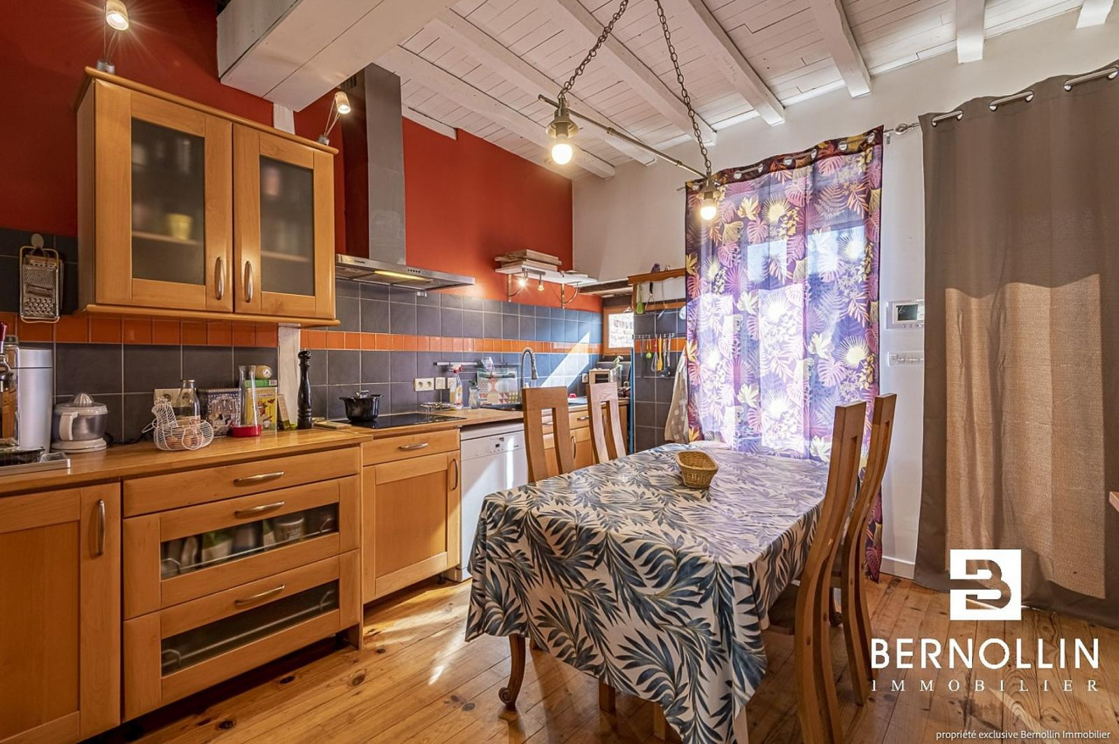 Au centre du village de St Julien sur Reyssouze, à proximité immédiate des commerces : boulangerie-boucherie-pharmacie-supérette..., et des écoles, à 10 mn de Montrevel-en-Bresse et 35 mn de Bourg-en-Bresse, cette belle maison de village présente une vaste superficie habitable et se compose de nombreuses pièces. Après avoir traversé la sympathique courette intérieure, on accède au rez-de-chaussée, celui-ci pouvant facilement s'agencer en appartement indépendant. Il se compose d'une entrée avec toilette, salle d'eau, pièce à aménager, 2ème toilette et 2 pièces de 14 et 29 m². L'escalier dessert le 1er étage, comprenant un vaste salon-séjour de 60 m², stylé, avec parquet et plafond haut, ainsi qu'une chambre et toilette, et la cuisine ouverte semi-équipée s'ouvrant sur le beau balcon-terrasse et sa tendue, orienté Sud, idéale pour les repas en extérieur. Enfin, au 2ème étage, se situent 3 chambres mansardées, salle de bains et toilette, et un grenier qui offre une partie rangement intéressante. Le tout est complété par un garage de 27 m² et une partie dépendance aménageable. Chauffage : plancher chauffant électrique, fuel et poêle à bois. Tout à l'égout. Cette maison de caractère offre de nombreuses prestations : Les +++ : double vitrage, et quadruple vitrage, volets roulants automatisés, adoucisseur d'eau, visiophone, très bon réseau Internet et fibre à connecter. A saisir sans attendre !