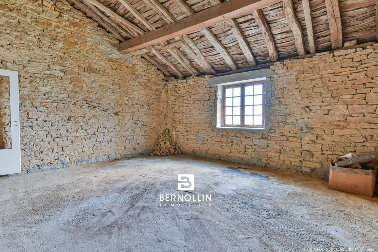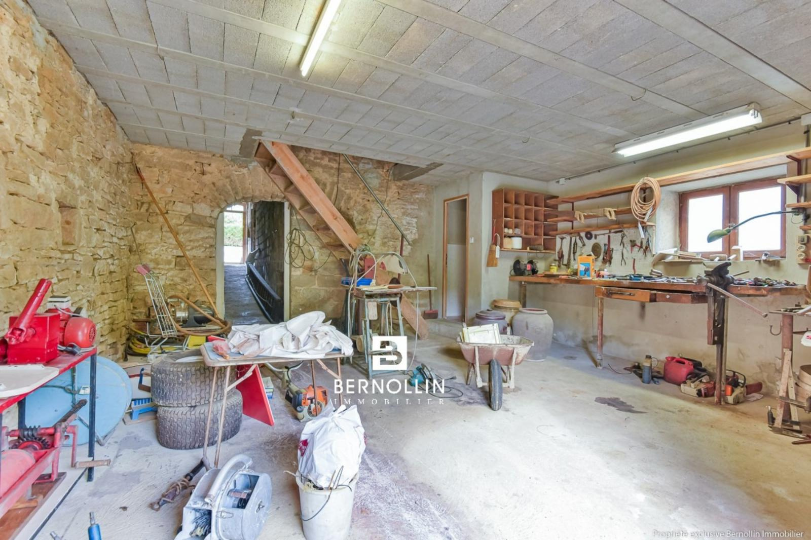 Maison en pierre comprenant au rez de chaussée, un salon, une salle à manger, une cuisine, une chaufferie, une cave voûtée et un toilette. A l'étage, trois chambres, une salle de bains, un toilette, un balcon et une pièce aménageable. Une dépendance attenante en pierre avec atelier, pièce et grenier de 80 m² viennent compléter ce bien. Terrain de 595 m² avec vue sur les montagnes du Revermont, tout à l'égout. Possibilité de rénover la dépendance en logement. Les +++ : Vue sur les montagnes du Revermont, tranquillité.