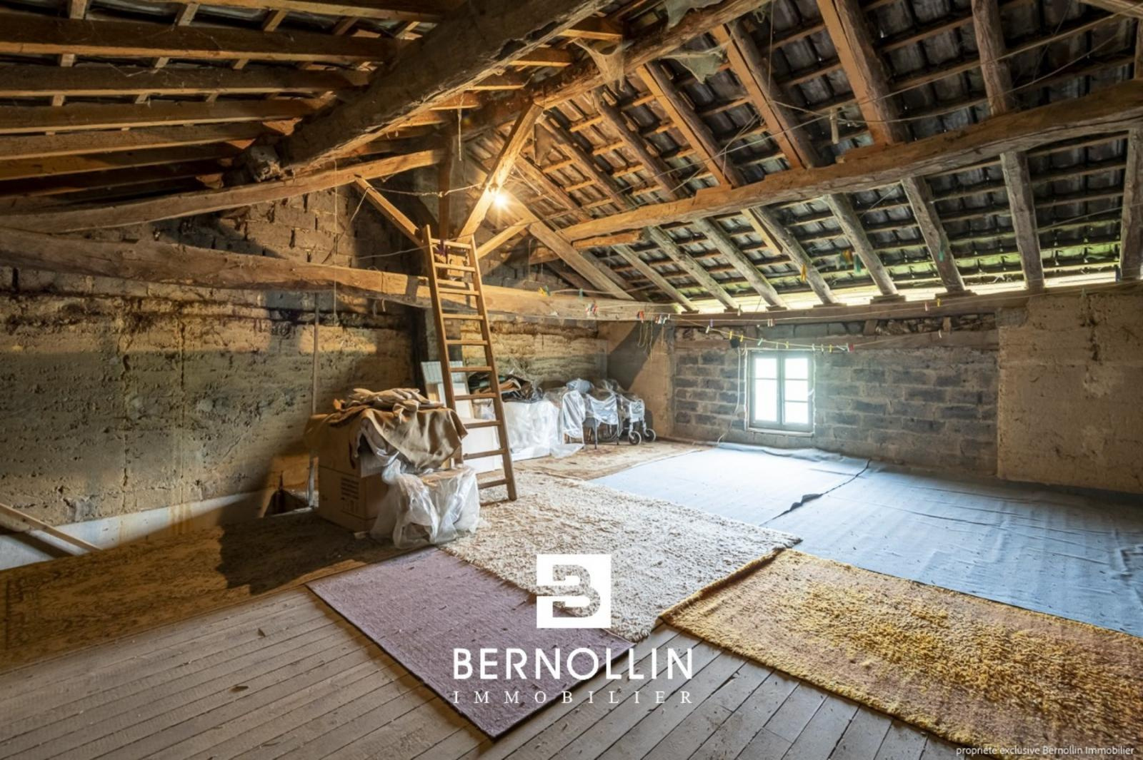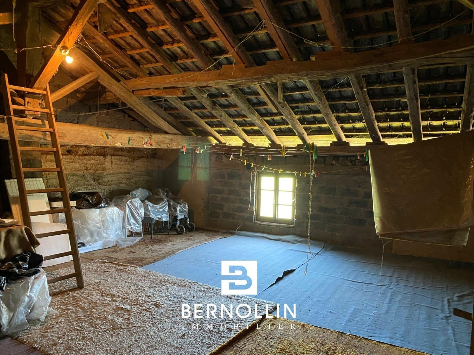 Jolie ferme mitoyenne composée au rez de chaussée d'une entrée, bureau, cuisine indépendante, séjour, 1 chambre, salle de bains et toilette pour la partie habitation. La partie dépendance est composée d'une pièce de 9.65 m², un atelier de 16 m², un garage de 40 m², et un bûcher de 29.50 m². A l'étage, 3 vastes greniers de 35 m², 41 m² et 51.33 m² à aménager. L'ensemble édifié sur un grand terrain de 2800 m² environ, arboré. Fosse septique, chauffage au bois. Les +++ : Beau potentiel, grand espaces à aménager selon votre goût, situation calme et agréable à 2,5 kms du centre d'Attignat.