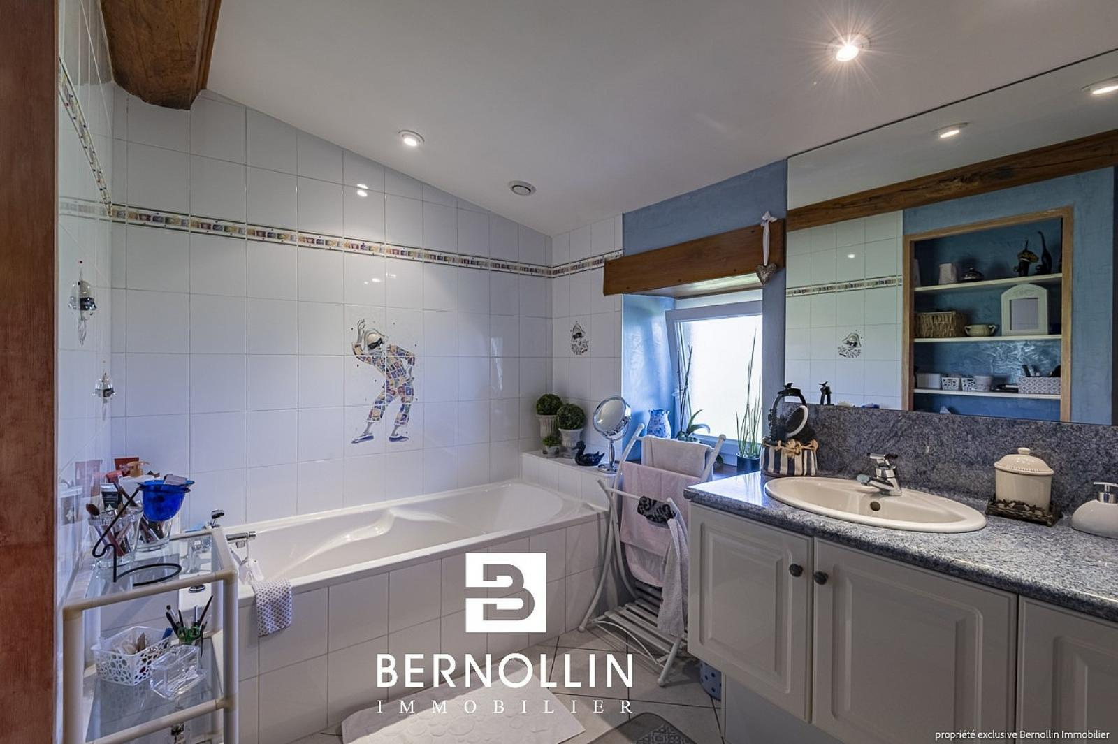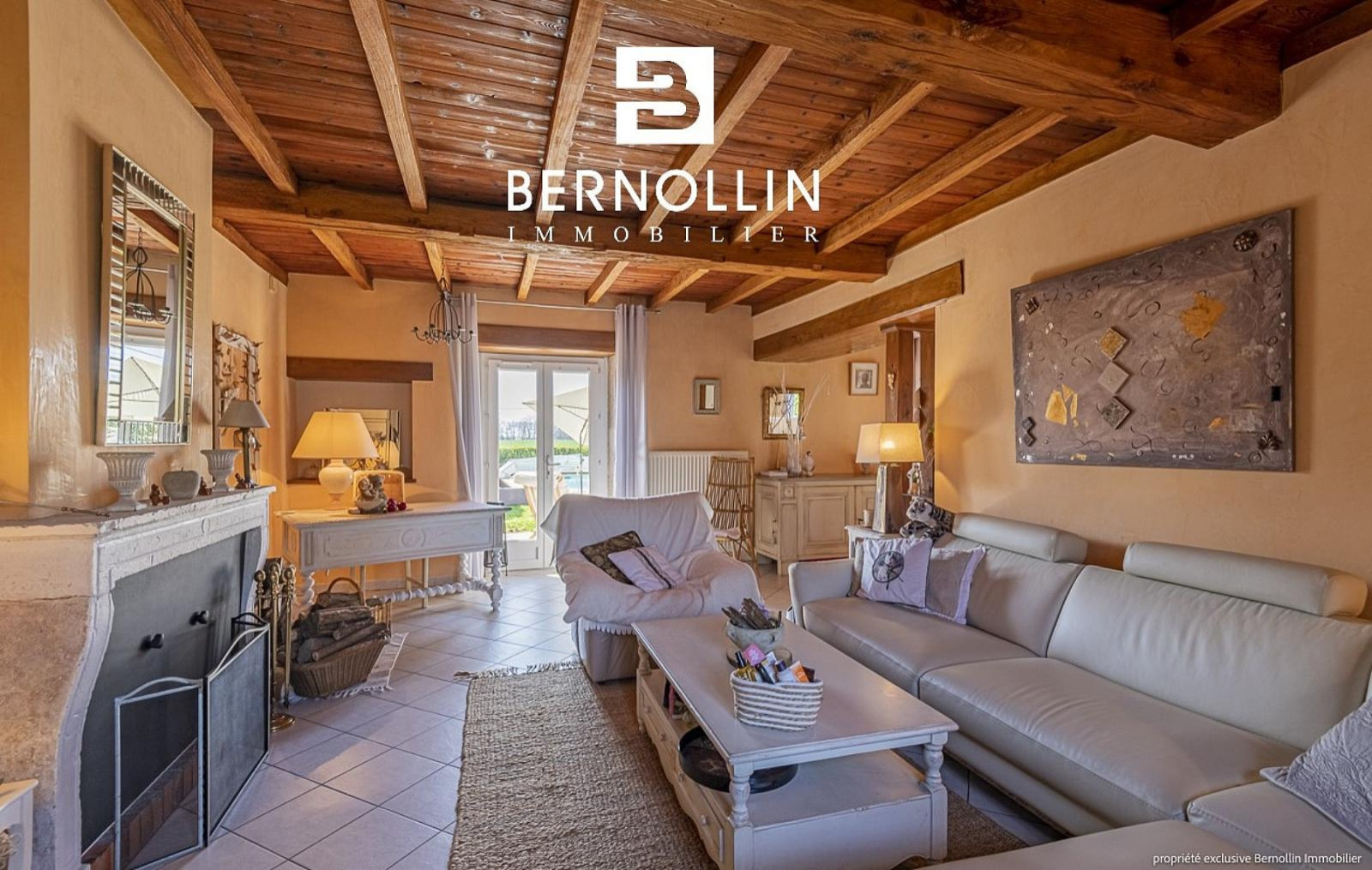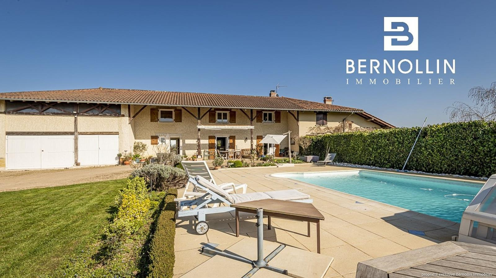 Cette jolie ferme rénovée de 140 m² allie la tranquillité et la praticité puisqu'elle se situe à 3 minutes d'Attignat et 20 minutes de Bourg en Bresse. Elle se compose d'une belle entrée de 11 m², cuisine ouverte équipée sur un séjour de 30.35 m², salon de 26.37 m² avec cheminée, cellier, buanderie, chaufferie et toilette complètent le rez de chaussée. A l'étage, mezzanine ouverte sur l'entrée, 3 chambres dont une très grande, salle de bains et toilette. La propriété possède une belle terrasse et son auvent, une belle piscine de 8.5x4.5 avec abri et un double garage. Chauffage au fuel, cheminée à bois, fosse septique, double vitrage PVC. L'ensemble édifié sur un terrain arboré de 1423 m². Les +++ : adoucisseur d'eau, portail électrique, située à 3 minutes en voiture du c?ur du village d'Attignat.