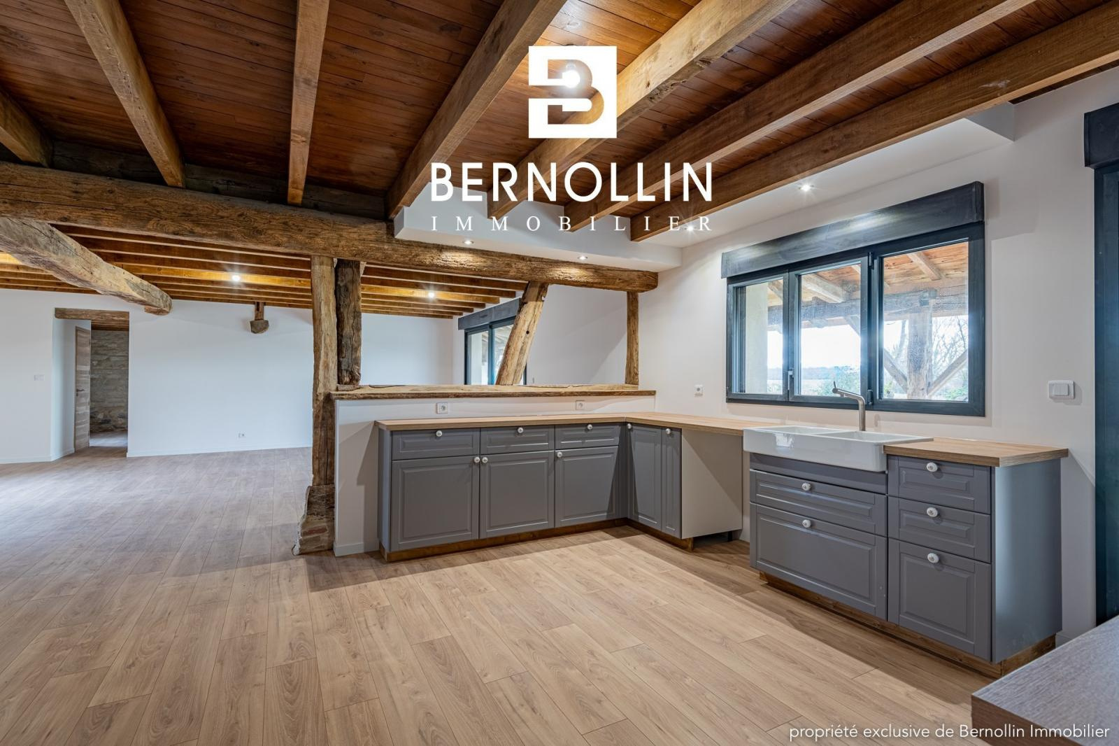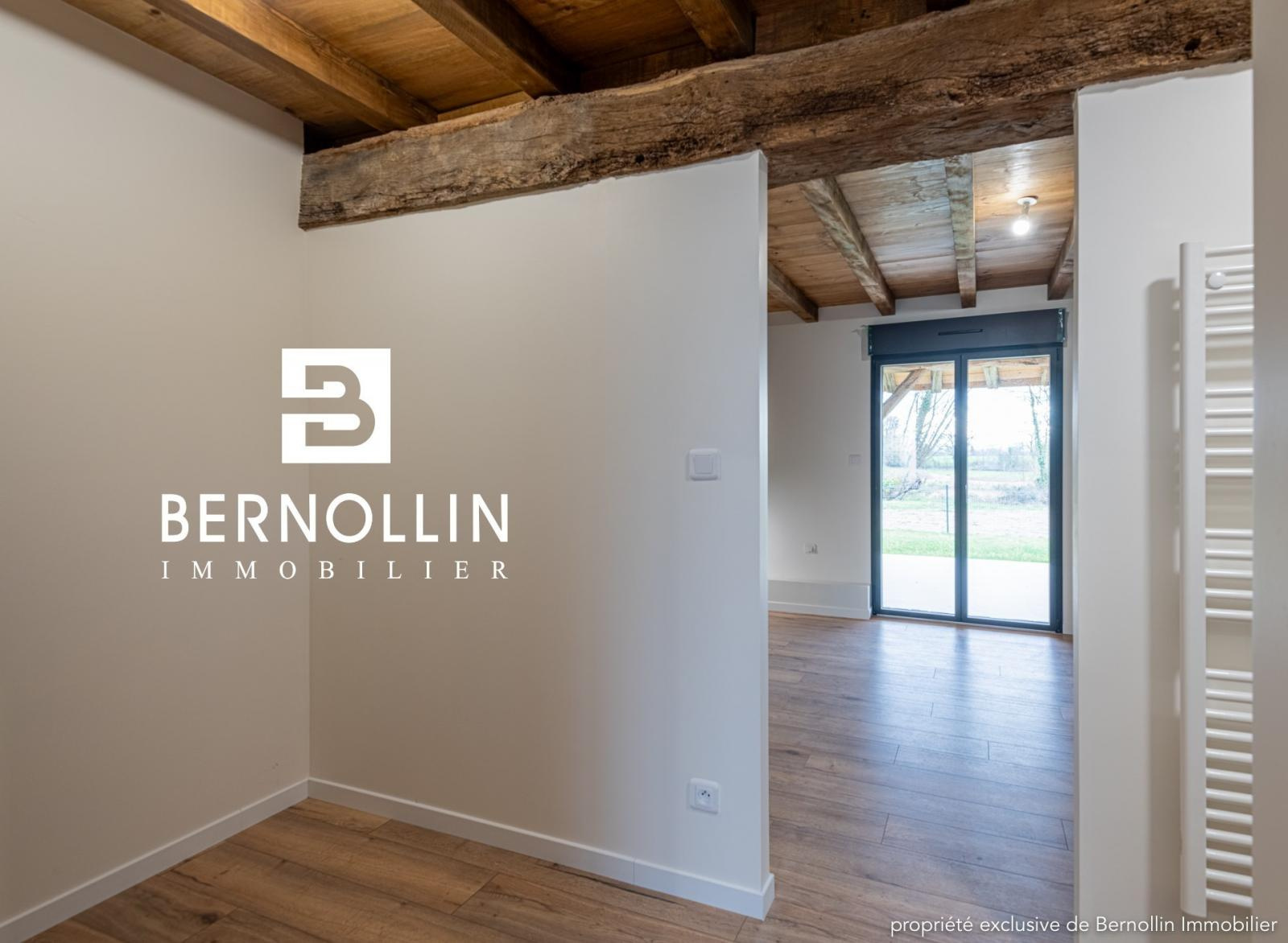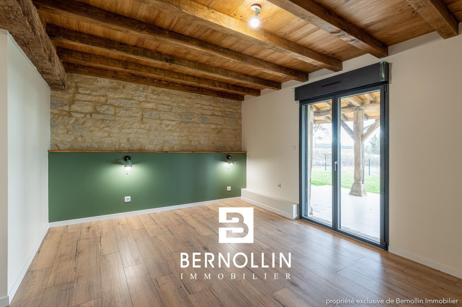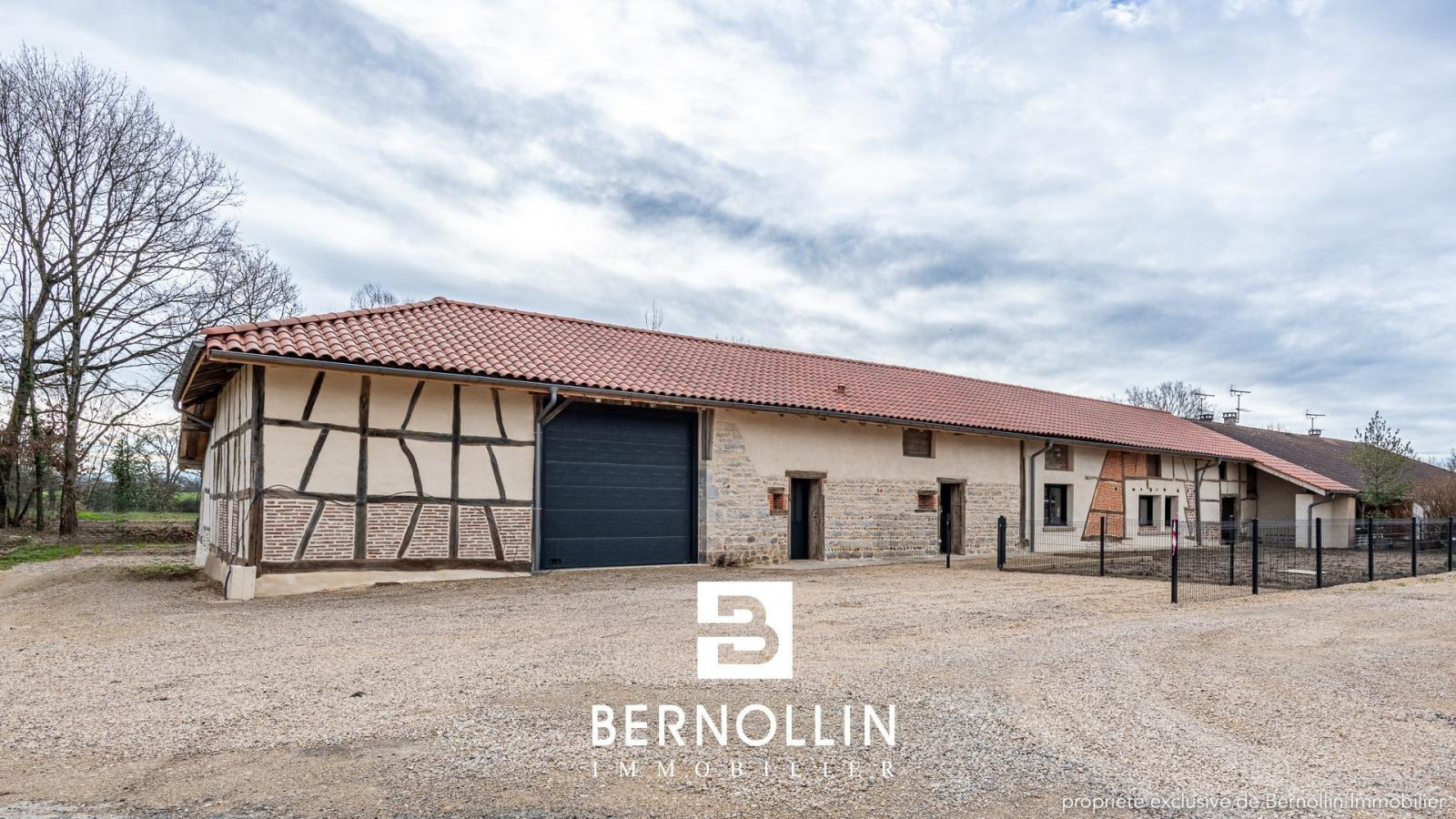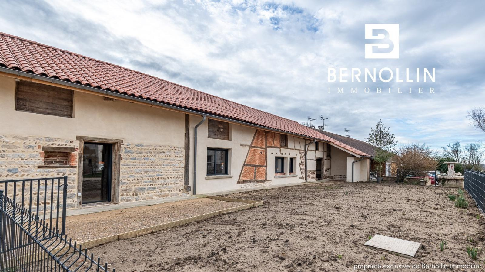 Coup de c?ur pour cette ferme typique rénovée récemment (2023) mitoyenne sur un côté (partie dépendance) située sur la commune de Viriat dans un environnement calme et paisible. Elle se compose d'une entrée indépendante avec toilette indépendant, cuisine aménagée ouverte sur le salon-séjour avec belles poutres en bois et grande baie vitrée. Suite parentale avec dressing et salle d'eau, dégagement qui dessert 3 autres chambres, une belle salle de bains avec toilette et une buanderie. Dépendances composées d'un très grand garage de 63.9 m² avec porte automatique pouvant accueillir un camping car ou artisan, une annexe de 41.4 m² rénovée également + 4 autres annexes d'un total de 34.8 m². La rénovation est de qualité avec des matériaux nobles dont de jolies tomettes anciennes qui donne du cachet à l'ensemble. La toiture est refaite à neuf. Vous profiterez des beaux jours à l'abri et protégé grâce à la jolie terrasse et son appentis en bois. L'ensemble édifié sur un terrain de 1153 m² dans un environnement campagne. Assainissement neuf, double vitrage aluminium, prévoir installation chauffage (électrique ou pompe à chaleur). Les +++ : volets roulants électriques, porte de garage automatique, cachet et potentiel ! Pour plus d'informations, téléphoner à l'Agence Bernollin Immobilier Attignat au 04 27 53 46 50. Prix 346 000 ? / Honoraires à la charge du vendeur. Réf annonce : BAR01440. DPE : Non éligible. DPE Projeté disponible à l'agence : Simulation DPE électrique, Simulation poêle à bois, Simulation DPE électrique + poêle à granulés, Simulation DPE Pompe à chaleur.