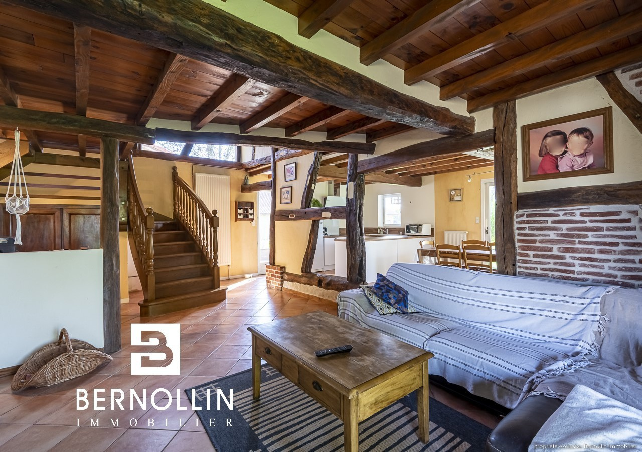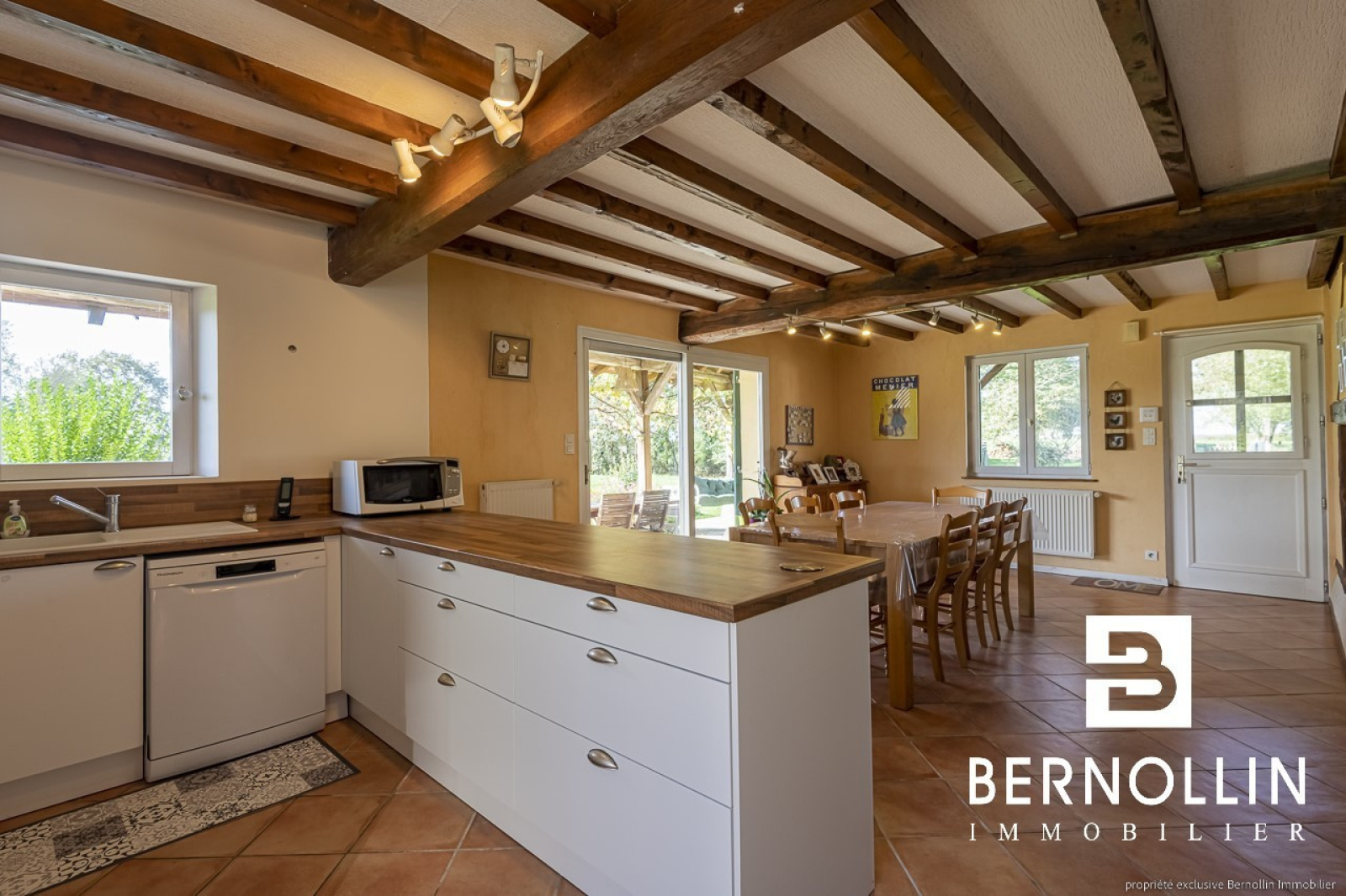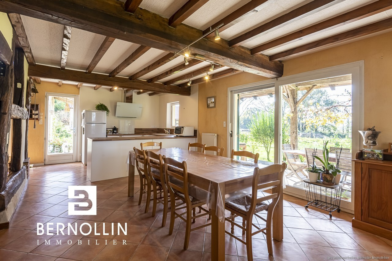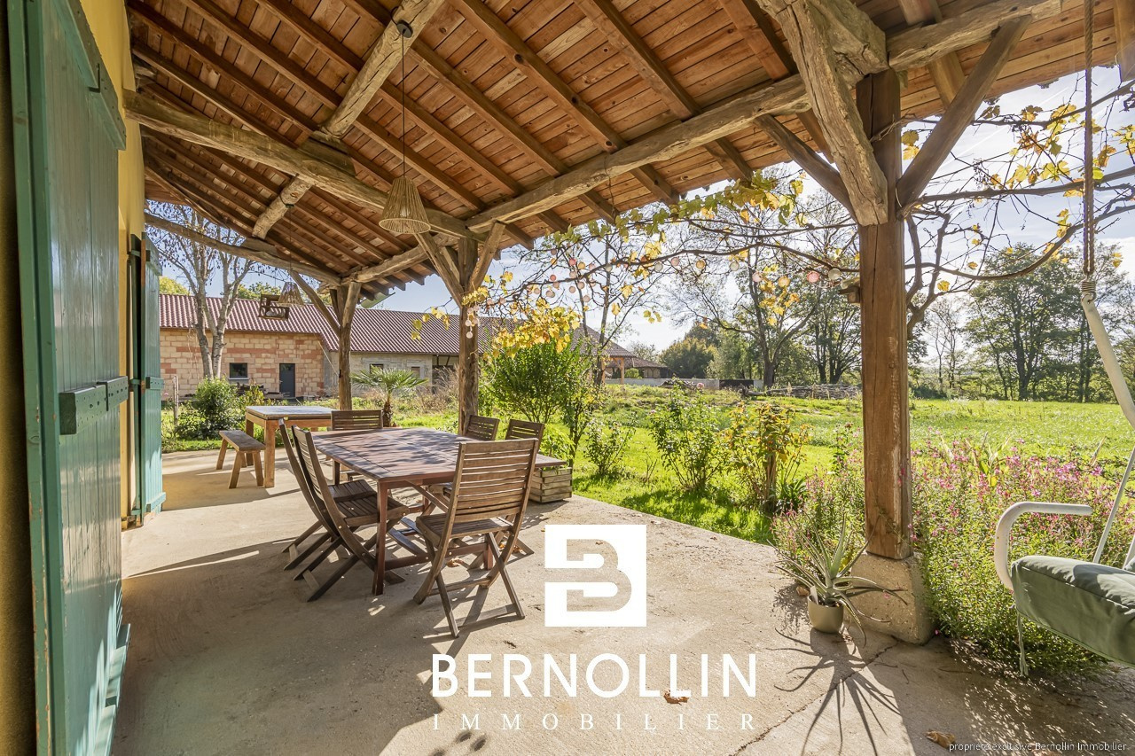 Environnement campagne et calme pour cette belle ferme rénovée sur grand terrain arboré. Située à Jayat, à 10 mn de Montrevel-en-Bresse et ses nombreux commerces, elle se compose au rez-de-chaussée d'une cuisine ouverte équipée ouvrant sur un séjour de 30 m², un salon, une salle de bains avec baignoire, douche et double vasques, toilette indépendant, bureau, 1 chambre avec dressing, buanderie et chaufferie. A l'étage, on découvre une mezzanine de 20 m² (pouvant faire office de chambre), toilette indépendant, et 2 grandes chambres. Attenant à la partie habitation, se situent un vaste garage (ex grange) de 62 m², une pièce de jeux et un abri voitures de 34 m² (pouvant accueillir camping-car ou fourgon). La terrasse est orientée Sud et Ouest. Nombreuses dépendances en complément : four à pain, buchers, abri voiture indépendant et sa remise. Chauffage : fuel et insert bois. Assainissement individuel à renouveler. Les +++ : double vitrage, rénovation récente des toits (1999 et 2015), volets automatisés à l'étage, portail électrique avec interphone, beau terrain paysagé avec mare. A découvrir sans attendre ! DPE : D/204, GES: D/47, Diag établi le 31/10/2022. Montant estimé des dépenses annuelles d'énergie pour un usage standard : entre 1930 et 2670 ?. Pour plus d'informations, téléphoner à Carole COLLET (agent commercial RSAC 842 419 558) au 06 44 08 77 00 Agence Bernollin Immobilier Attignat. Prix : 298000? / Référence annonce : BLAN01340. Honoraires à la charge du vendeur.