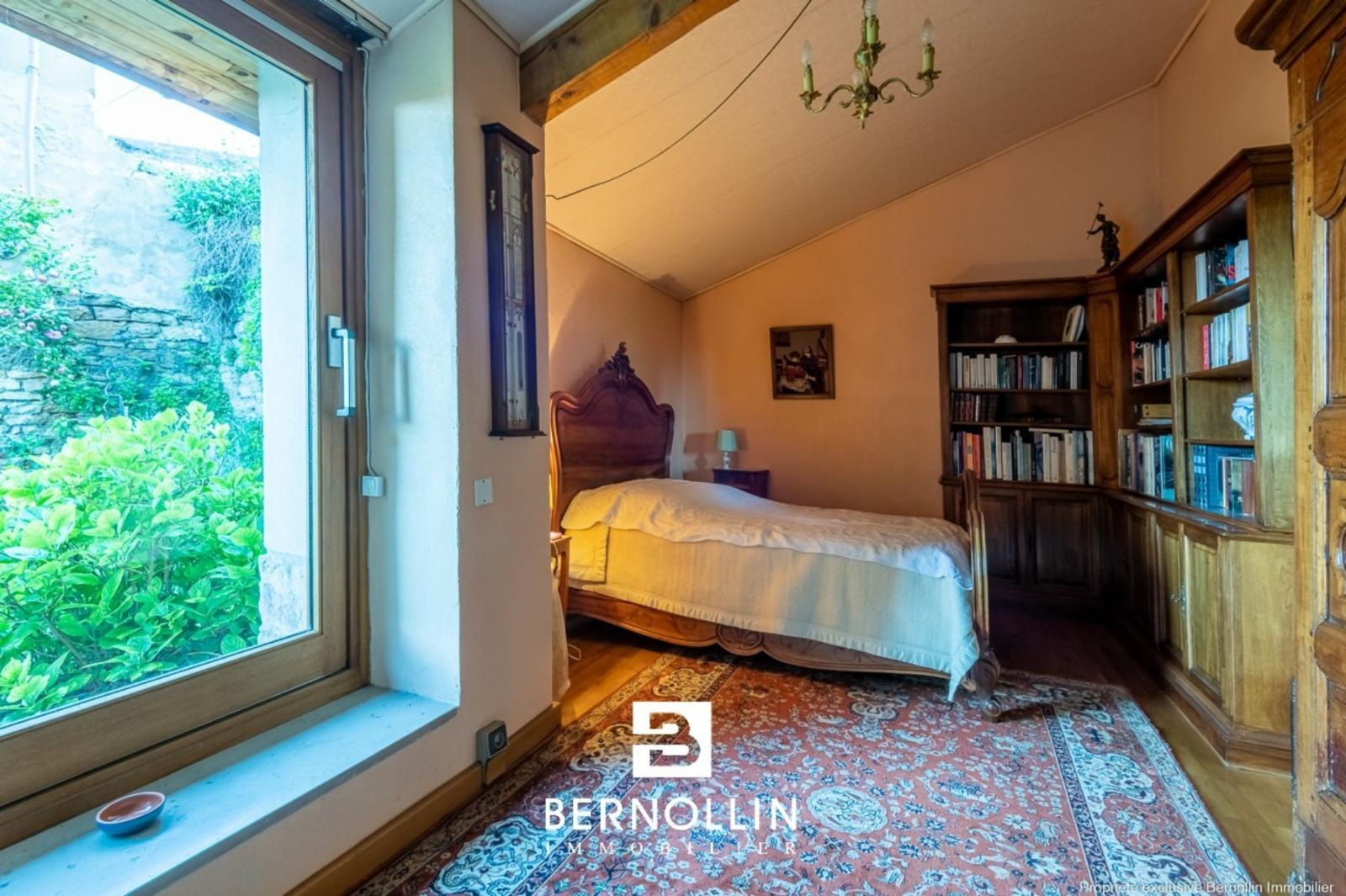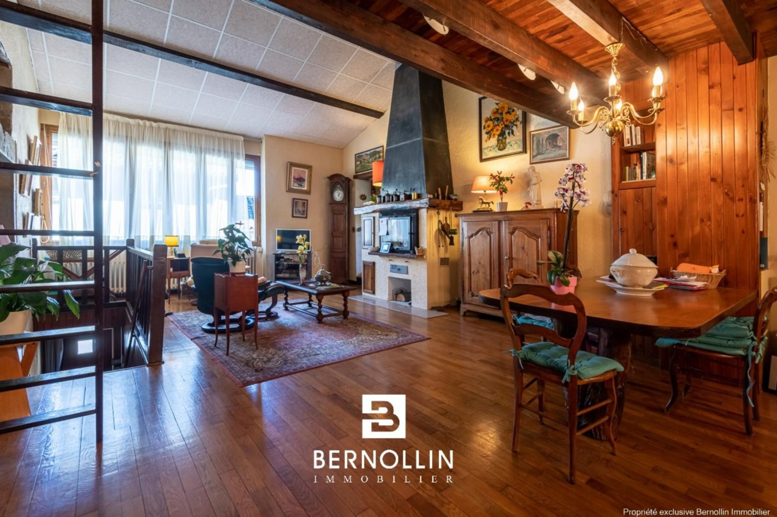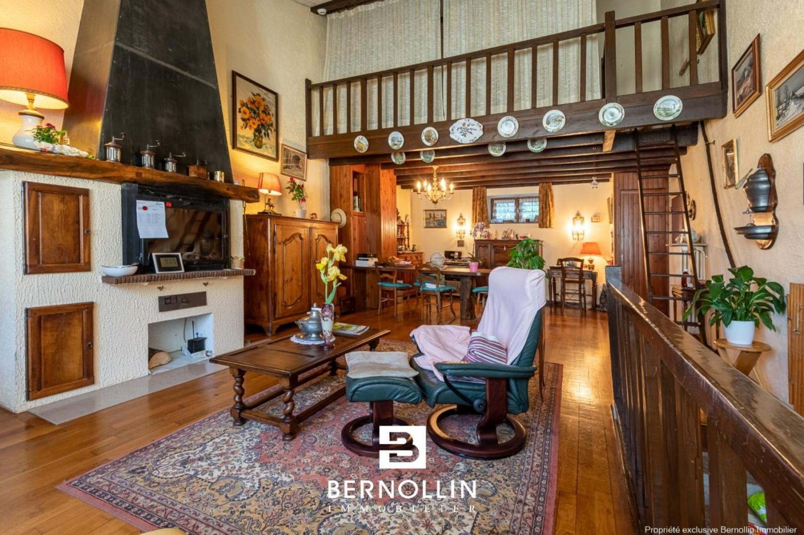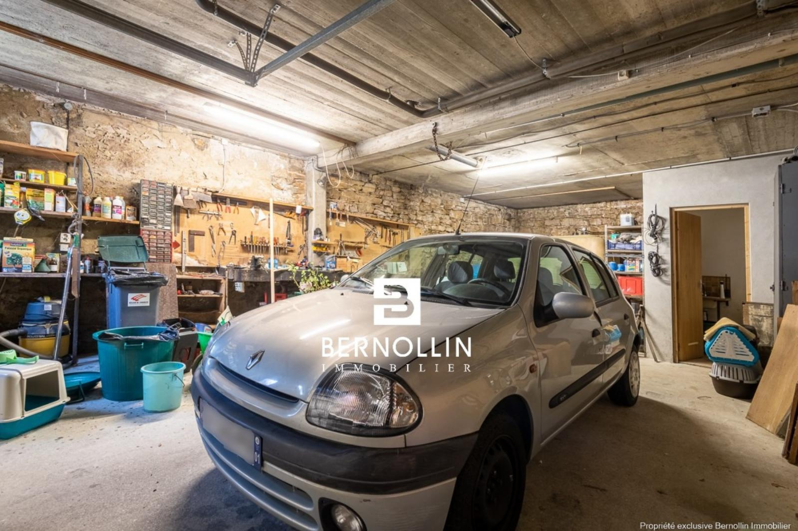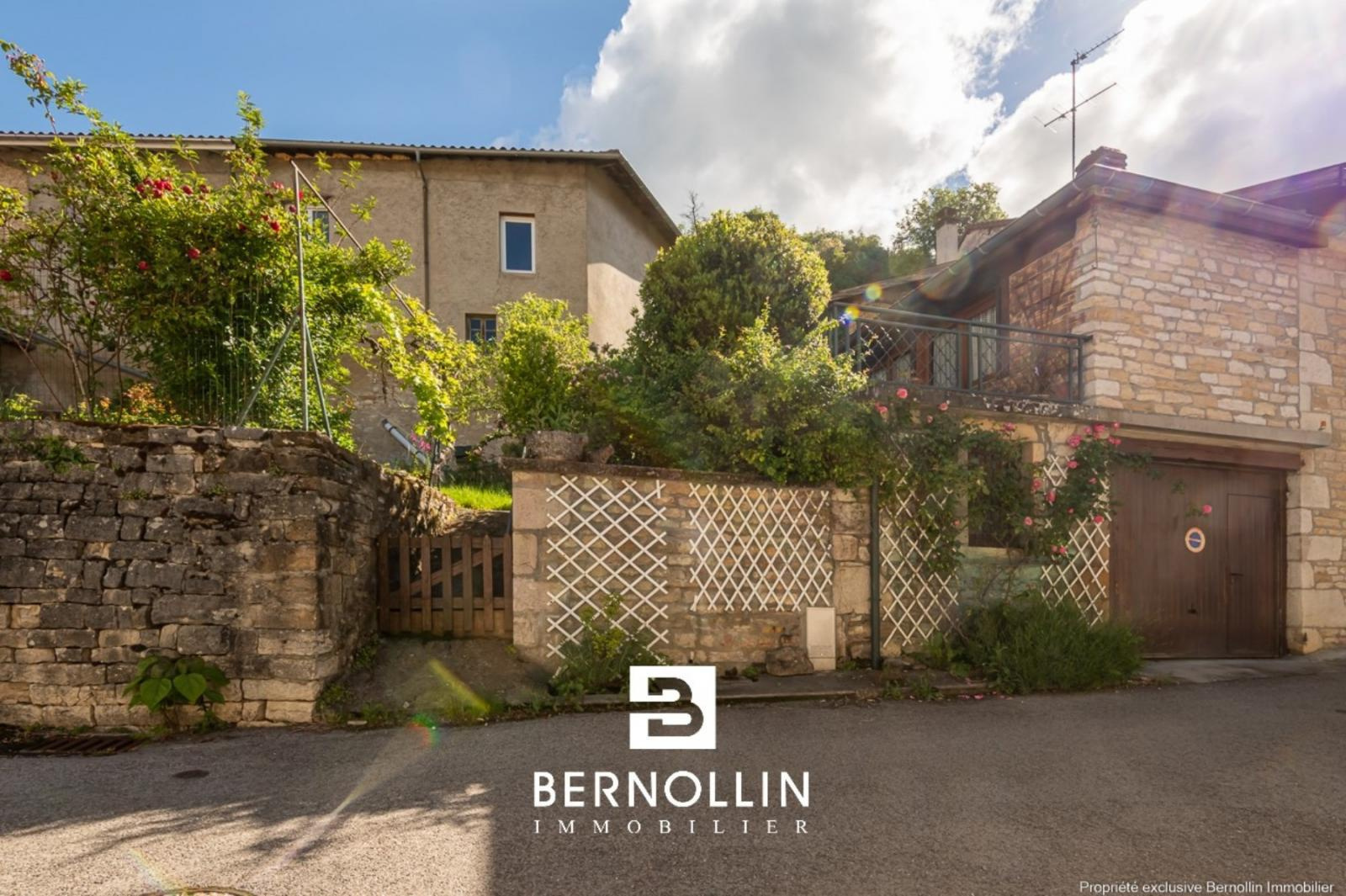 A COLIGNY 01270, maison en pierre de 120 m², comprenant au RDC, un grand garage, une chaufferie, une cave, à l'étage, une grande pièce à vivre avec cheminée et mezzanine, une cuisine équipée, deux chambres, deux pièces d'eau, au deuxième niveau une chambre mansardée. - une terrasse côté ouest donnant sur un terrain de 150 m² arboré.