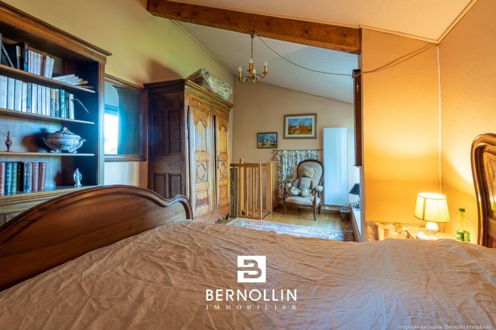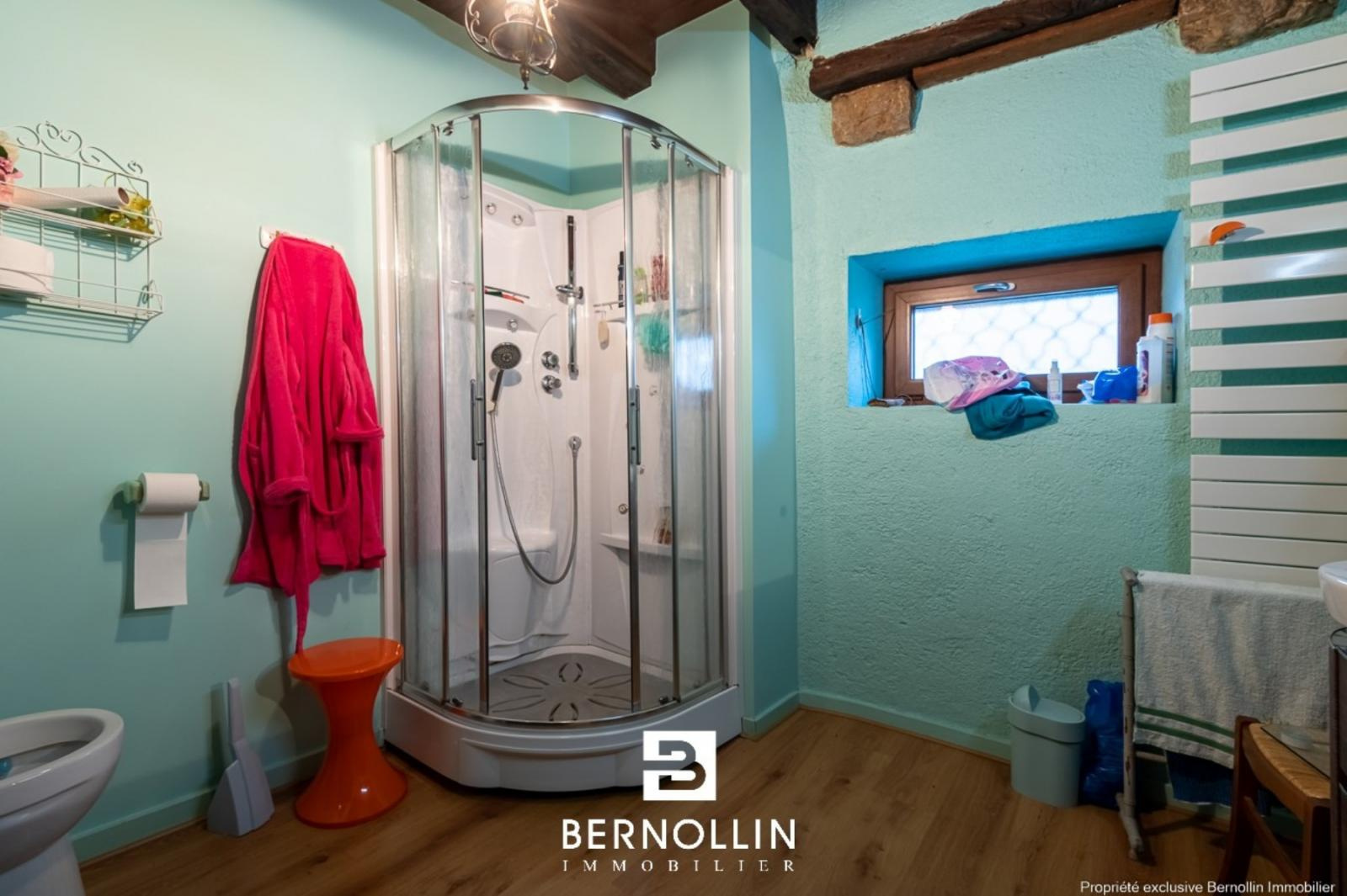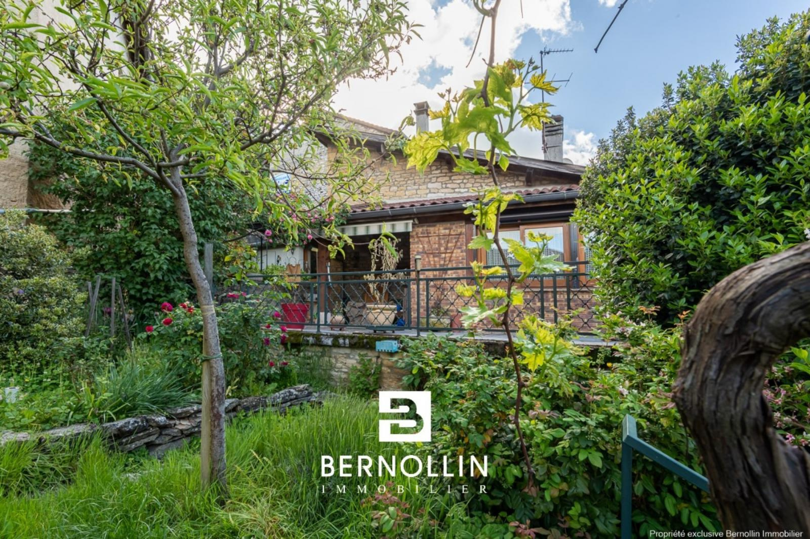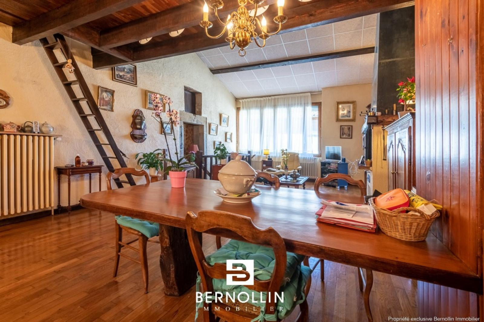 A COLIGNY 01270, maison en pierre de 120 m², comprenant au RDC, un grand garage, une chaufferie, une cave, à l'étage, une grande pièce à vivre avec cheminée et mezzanine, une cuisine équipée, deux chambres, deux pièces d'eau, au deuxième niveau une chambre mansardée. - une terrasse côté ouest donnant sur un terrain de 150 m² arboré.