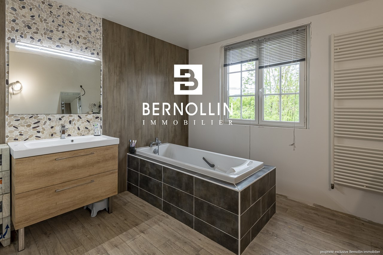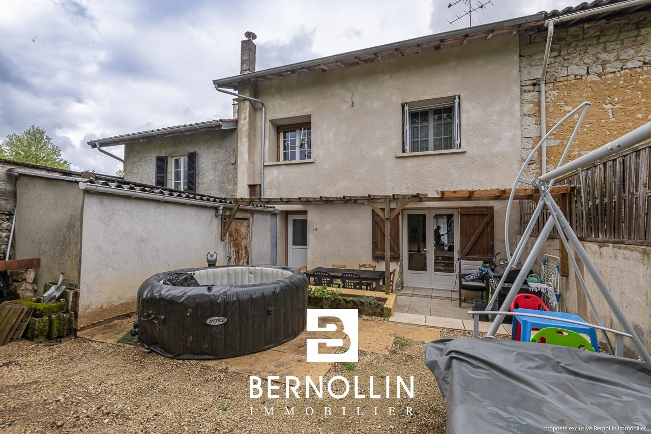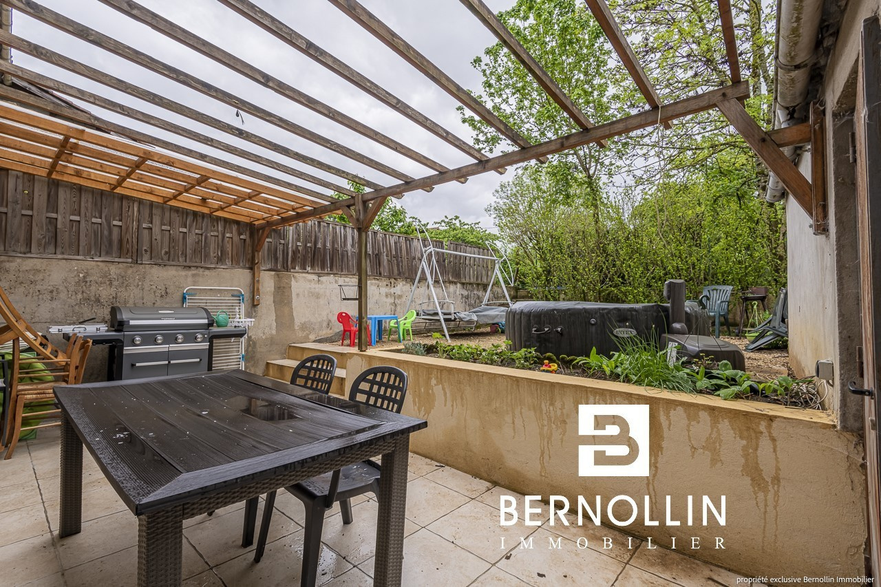 Cette maison mitoyenne de 183 m² pleine de charme comprend au rez de chaussée une cuisine ouverte équipée, une salle à manger, un salon avec cheminée, un toilette et un dégagement donnant sur un petit terrain de 60 m² (terrasse) côté EST agrémenté d'une chaufferie. Au premier niveau, une mezzanine, une chambre avec penderie, une chambre avec placard, une salle de bains, une salle d'eau et un toilette. Au deuxième niveau, deux chambres et une salle d'eau. Le tout sur un terrain de 648 m² agrémenté d'un garage de 50 m² + atelier. Chauffage cheminé bois avec insert, fuel, tout à l'égout, double vitrage PVC. Située à 27 minutes en voiture de Bourg en Bresse, 18 minutes de Ceyzériat et 10 minutes de Treffort. NB : il existe un droit de passage de 50 m² qui passe devant la maison pour accéder à la propriété du voisin. Les +++ : Rénovée récemment avec goût, agréable jardin arboré et belles surfaces. DPE : C/162, GES: C/29, Diag établi le 10/05/2023. Montant estimé des dépenses annuelles d'énergie pour un usage standard : entre 1890 et 2610 ?. Pour plus d'informations, téléphoner à Franck GUY au 06 73 45 11 08. Agence Bernollin Immobilier Treffort. Prix : 210 000 ? / Référence annonce : DESRA01250. Honoraires à la charge du vendeur.