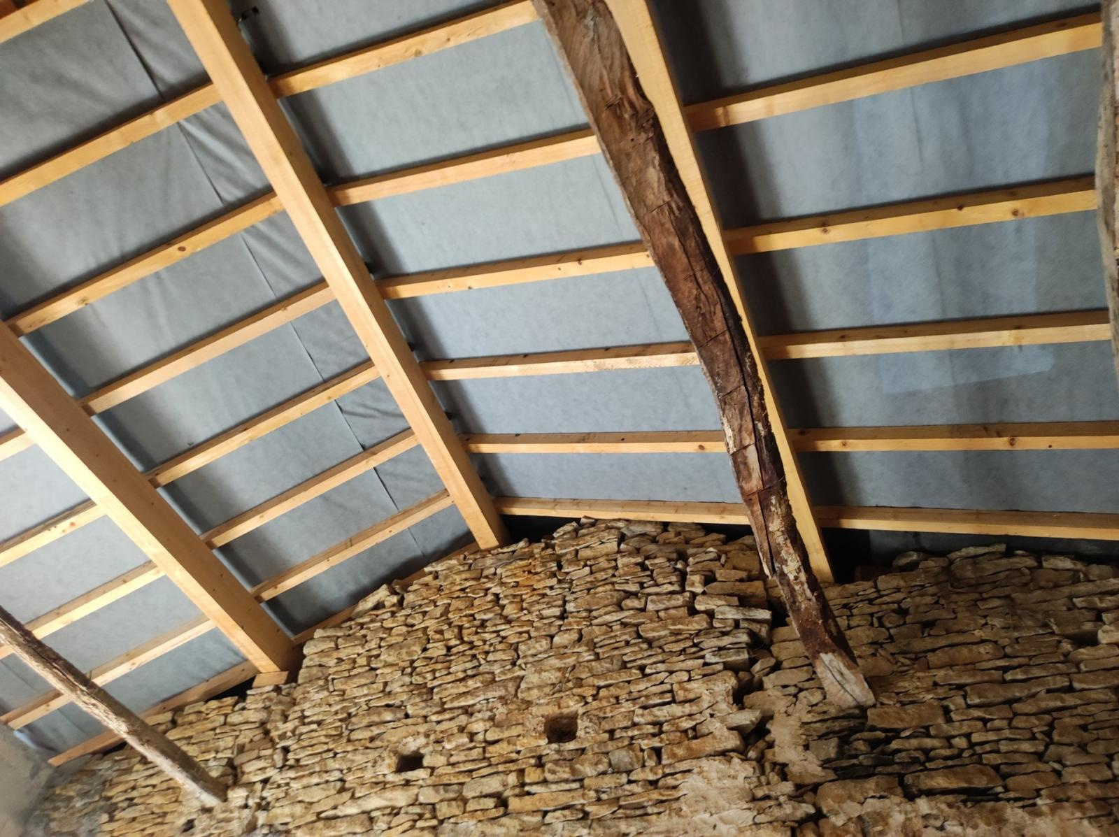 Grange en pierre à rénover d'une surface de 45 m² après rénovation, toiture neuve, petit terrain.