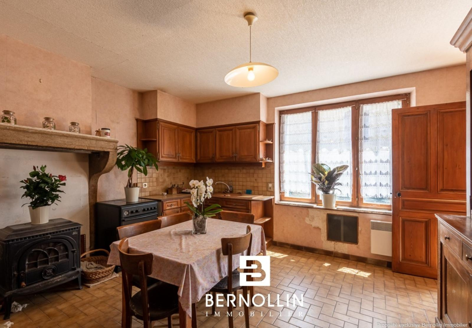 Maison de village à rénover composée au rez de chaussée d'une grande cuisine de 17.80 m², séjour de 50 m², salon, salle d'eau + toilette. A l'étage, un dégagement dessert 2 chambres, un toilette, une salle de bains, un grand grenier de 53 m². Au sous sol, une cave de 22 m². La maison possède un garage et une grande dépendance attenante en pierre de 105 m². Le tout sur un terrain de 293 m². Chauffage électrique, tout à l'égout. Les +++ : située au centre du hameau.