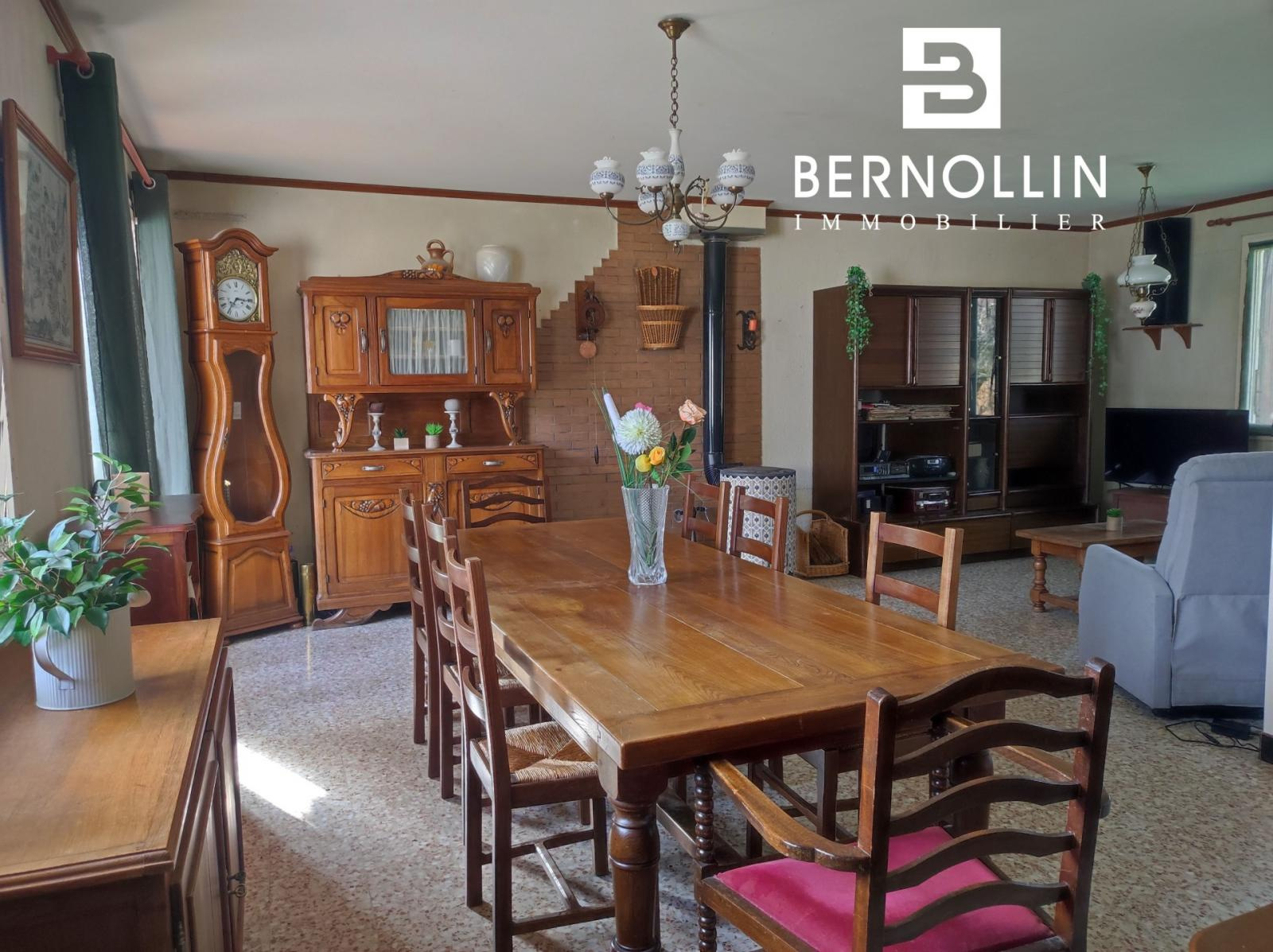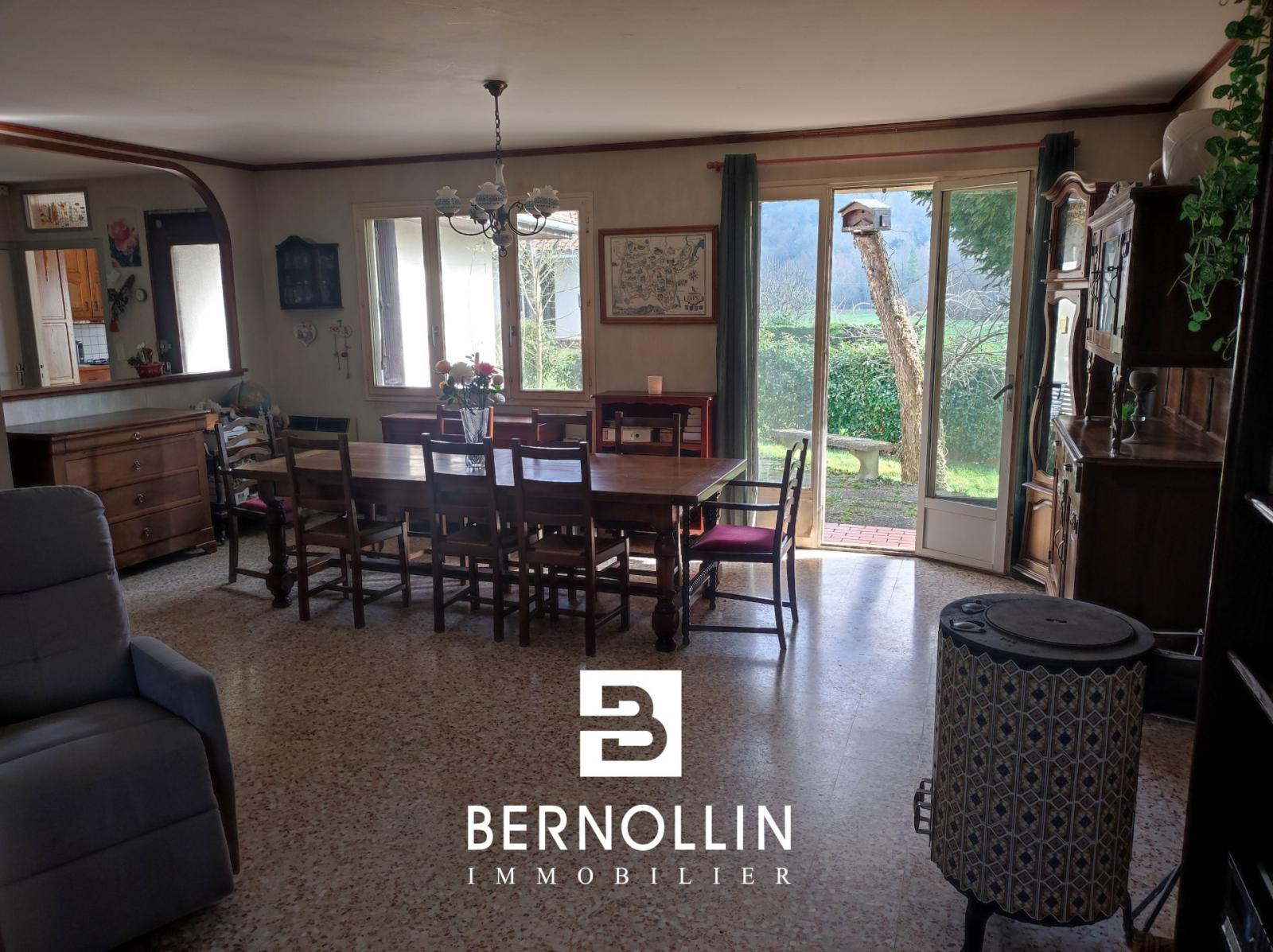 Située dans le paisible lotissement des Bourdonnières, à seulement 3 minutes en voiture du pittoresque village de Treffort, cette villa de 112 m² offre un cadre de vie idéal pour les amateurs de tranquillité et de nature. Construite dans le style des années 70, elle allie confort et fonctionnalité sur un beau terrain arboré de 999 m². La maison se compose comme suit : Un hall d?entrée accueillant, une salle à manger lumineuse, une cuisine équipée indépendante, 3 chambres spacieuses, une salle de bains, des toilettes séparées, un grand garage attenant et une cave de 10 m² pour un espace de rangement supplémentaire. Le terrain verdoyant offre de nombreuses possibilités d?aménagement : jardin, terrasse ou espace détente. À proximité immédiate des commodités de Treffort, cette villa est parfaite pour une famille ou toute personne recherchant une maison de plain-pied pratique et bien entretenue. Quelques travaux de rénovation et de rafraichissement sont à prévoir notamment le système de chauffage, le double vitrage et les tapisseries. Tout à l'égout, chauffage électrique et poêle à bois, double vitrage bois. DPE : F/406, GES : C/13, Diag établi le 17/02/2025. Montant estimé des dépenses annuelles d'énergie pour un usage standard : entre 2910 et 4000 ?. Pour plus d'informations, téléphoner à Franck GUY au 06 73 45 11 08. Agence Bernollin Immobilier Treffort. Prix : 210 000 ? / Référence annonce : GIN01370. Honoraires à la charge du vendeur.