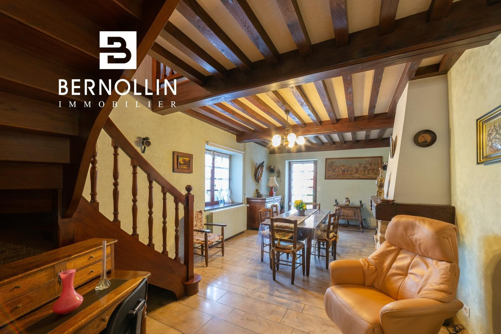Vous serez charmés par cette maison en pierre de 123 m² située en plein centre du joli village de Treffort. Elle se compose au rez de chaussée d'une cuisine indépendante équipée, une grande pièce à vivre avec cheminée, un toilette indépendant, un placard et un dégagement. A l'étage, vous accédez à une mezzanine, 2 chambres dont 1 avec placard, un bureau ou alcôve, une salle de bains et un toilette indépendant. L' ensemble édifié sur un terrain de 490 m² agrémenté d'un petit ruisseau et d'un garage. Chauffage au gaz citerne, double vitrage bois, tout à l'égout. Les +++ : cuisine et salon avec poutres apparentes, belle situation et joli terrain. Prix de vente : 231 000 ? (Honoraires d'agence inclus à la charge du vendeur) - DATE DU DPE : 16/09/2022, D/217, GES : D/47. Montant estimé des dépenses annuelles d'énergie pour un usage standard : entre 2060 et 2840 ? par an. Année de référence 2021. Pour plus d'informations, téléphonez à Franck GUY (Agent commercial RSAC 408 372 563), agence BERNOLLIN IMMOBILIER au 06 73 45 11 08 ou 04 69 19 45 69. Réf annonce : FAN013. Date de réalisation des diagnostics : 29/06/2022.