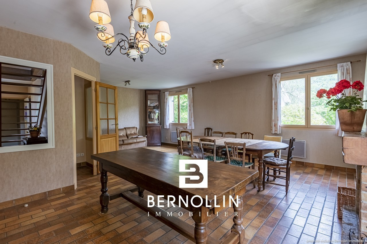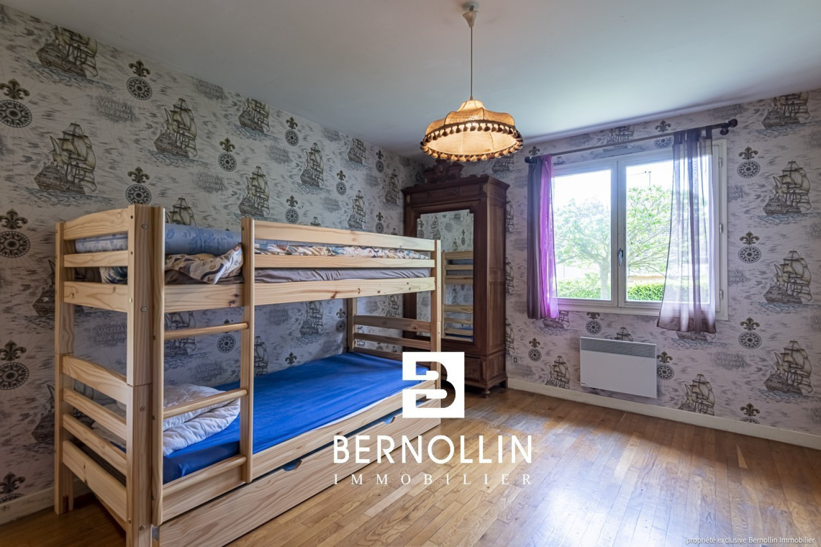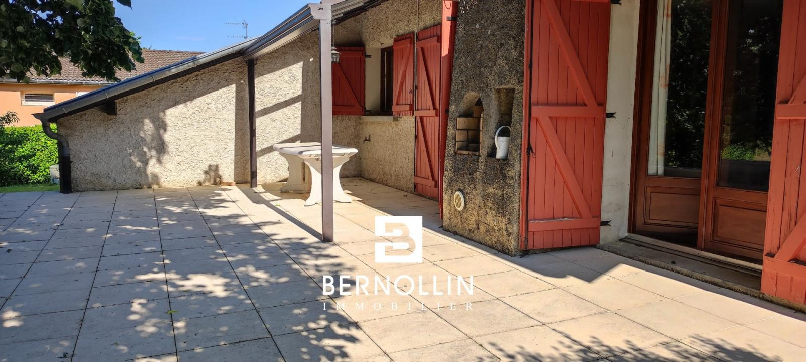 Agréable maison située à 3 minutes en voiture du centre de Treffort dans un lotissement calme ! Elle se compose au rez de chaussée d'une belle entrée qui dessert une cuisine équipée indépendante et son cellier/buanderie + placard, un séjour avec cheminée, un toilette, 4 chambres toutes équipées de placard et une salle de bains. A l'étage, vous accédez à une mezzanine qui fait office de bureau. Le double garage attenant vous permettra de garer 2 véhicules + une partie rangement, une salle d'eau et un toilette. L'ensemble édifié sur un terrain arboré et clos avec portail de 1004 m². Chauffage cheminée bois + électrique, tout à l'égout, double vitrage bois. Les +++ : Jolie véranda attenante à 1 des chambres qui donne sur une grande terrasse à l'arrière de la maison pour profiter des beaux jours en toute tranquillité ! DPE : D/228, GES: B/7, Diag établi le 16/03/2023. Montant estimé des dépenses annuelles d'énergie pour un usage standard : entre 1760 et 2440 ?. Pour plus d'informations, téléphoner à Franck GUY au 06 73 45 11 08. Agence Bernollin Immobilier Treffort. Prix : 265 000 ? / Référence annonce : GENIER01370. Honoraires à la charge du vendeur.