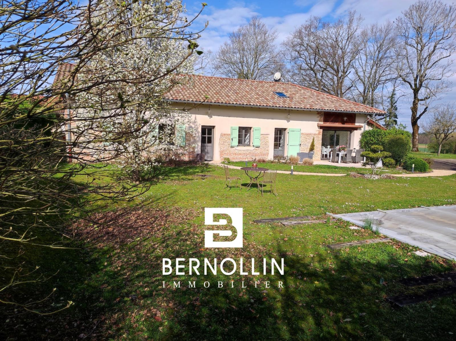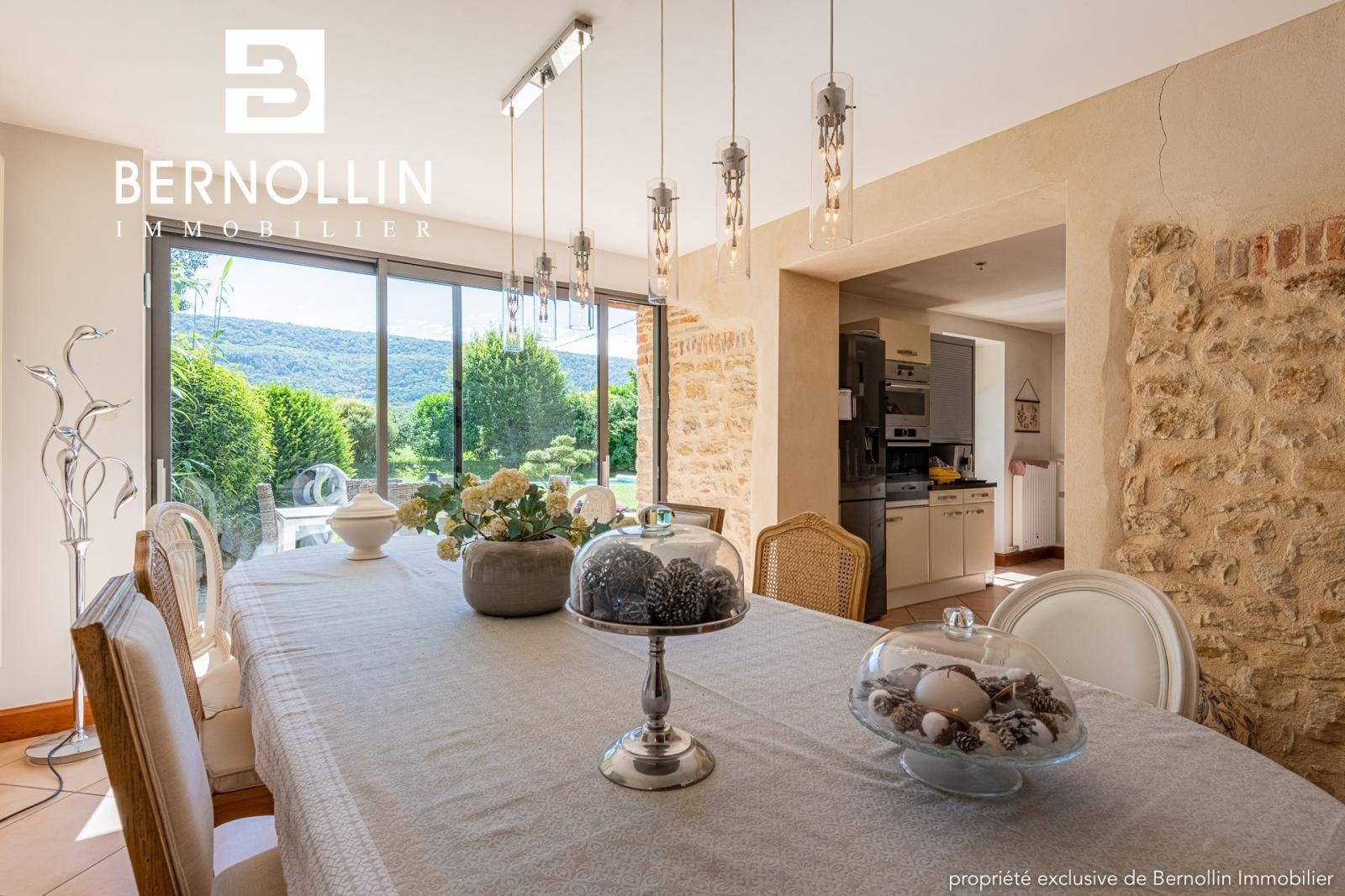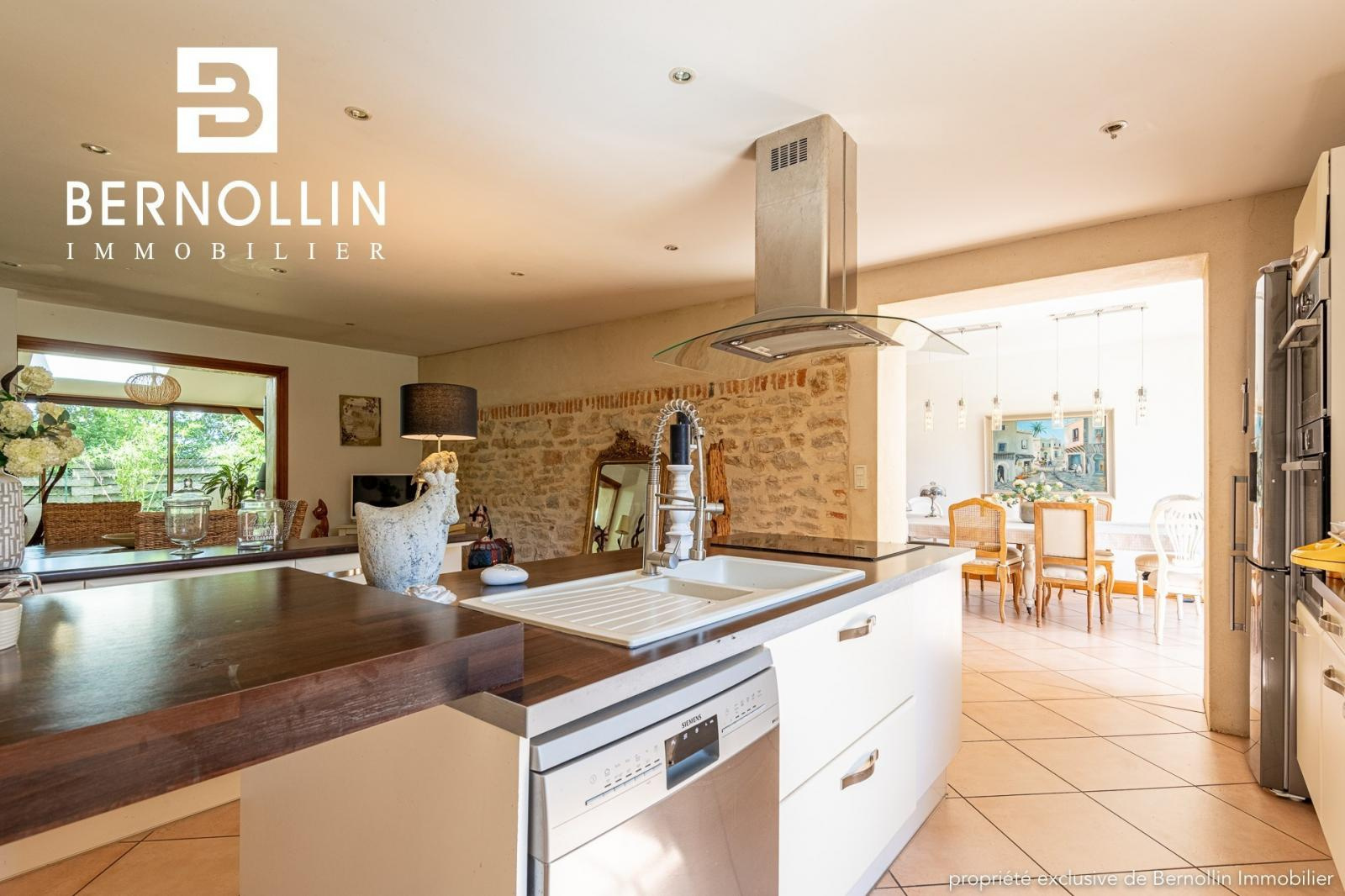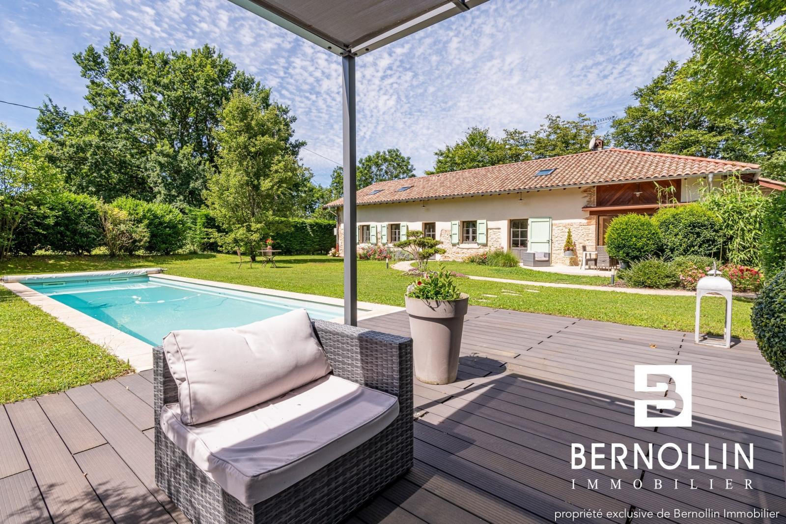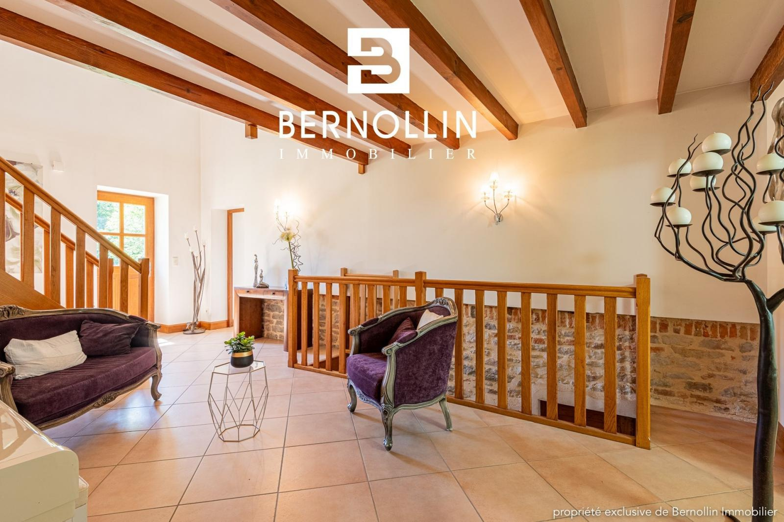 Ferme entièrement rénovée, offrant un logement spacieux de 220 m² à 10 minutes à pied de l'espace naturel La Grange du Pain à Cuisiat. Idéalement située au calme et sans vis à vis à 10 minutes de Saint Etienne du bois, 31 minutes de Bourg en Bresse, 1h13 de Lyon et 1h27 de Genève. La propriété bénéficie d'un joli terrain clos et arboré de 1794 m² avec piscine et belle véranda chauffée et un terrain boisé non attenant de 3190 m² . Cette fabuleuse propriété bénéficie du chauffage bois et fuel grâce à une chaudière mixte (5 moules de bois et 1000 litres de fuel), capacité citerne de 3000 litres + cheminée au bois. Rez de chaussée composé d'une belle cuisine équipée donnant à droite sur la salle à manger décorée avec goût avec grande baies vitrées, à gauche un salon indépendant avec accès à la mezzanine et à une cave traditionnelle enterrée et en face une magnifique véranda avec cheminée bois, deux chambres, une salle de bains avec baignoire et un toilette indépendant, une buanderie avec placard, point d'eau et accès au grenier aménagé, la chaufferie. En outre, la ferme est équipée d'un garage attenant avec atelier et d'une belle terrasse. Vous accédez à l'étage par un bel escalier en bois qui vous dirige vers une mezzanine, 2 belles chambres, un dressing, une salle de jeux, une salle de bains avec douche et baignoire et un toilette. A l'extérieur, vous profiterez d'un beau terrain arboré de 1794 m² avec une piscine de 30 m², une cour bitumée clos par un portail électrique en fer beige. L'ensemble disponible début 2025. Les +++ : Belle rénovation pour cette propriété rare, charme et authenticité avec une décoration soignée et entretenue. DPE : E/258, GES: B/7, Diag établi le 28/06/2024. Montant estimé des dépenses annuelles d'énergie pour un usage standard : entre 1920 et 2670 ?. Pour plus d'informations, téléphoner à Franck GUY au 06 73 45 11 08. Agence Bernollin Immobilier Treffort. Prix : 430 000 ? / Référence annonce : REHMA01370. Honoraires à la charge du vendeur.
